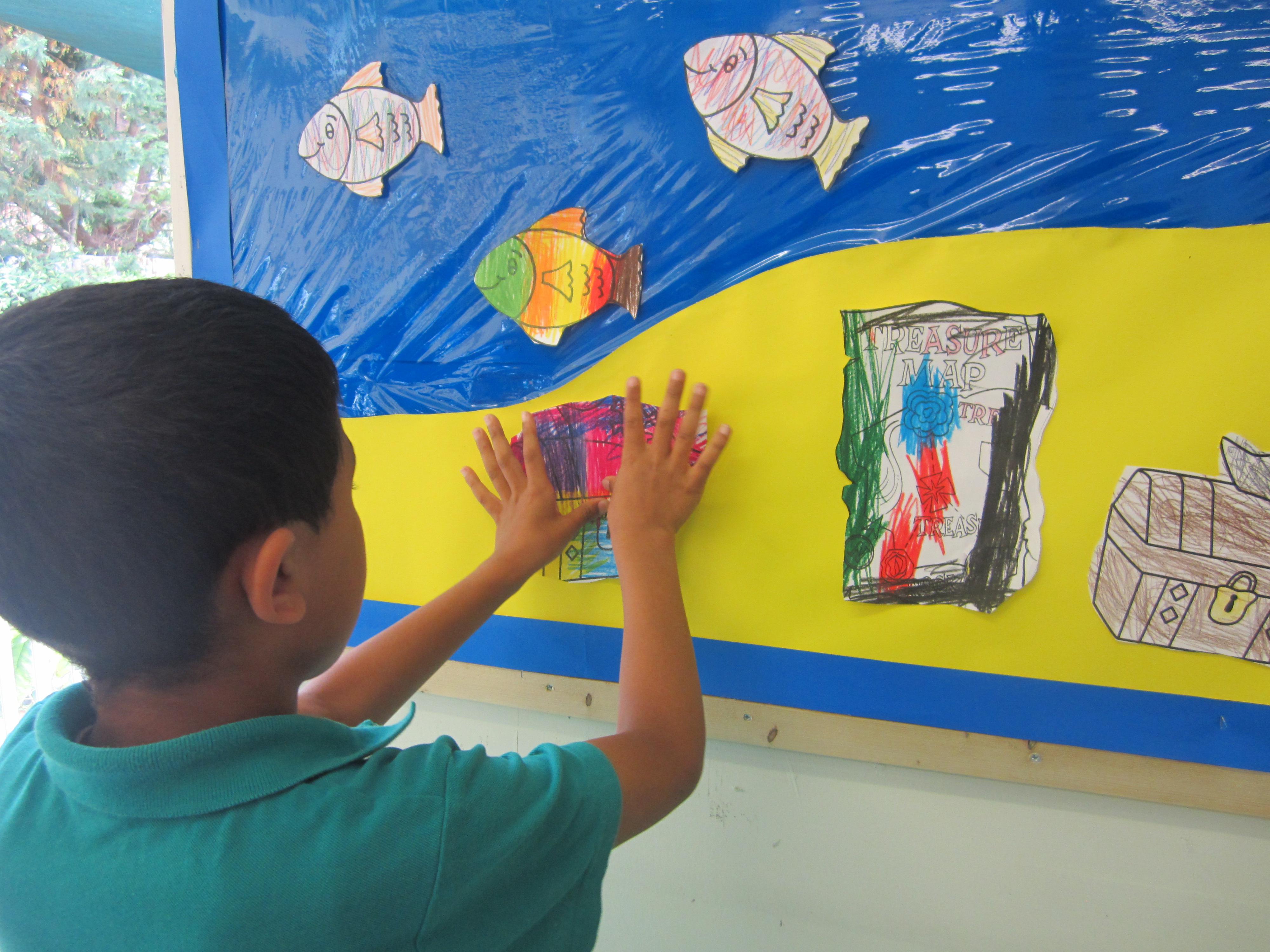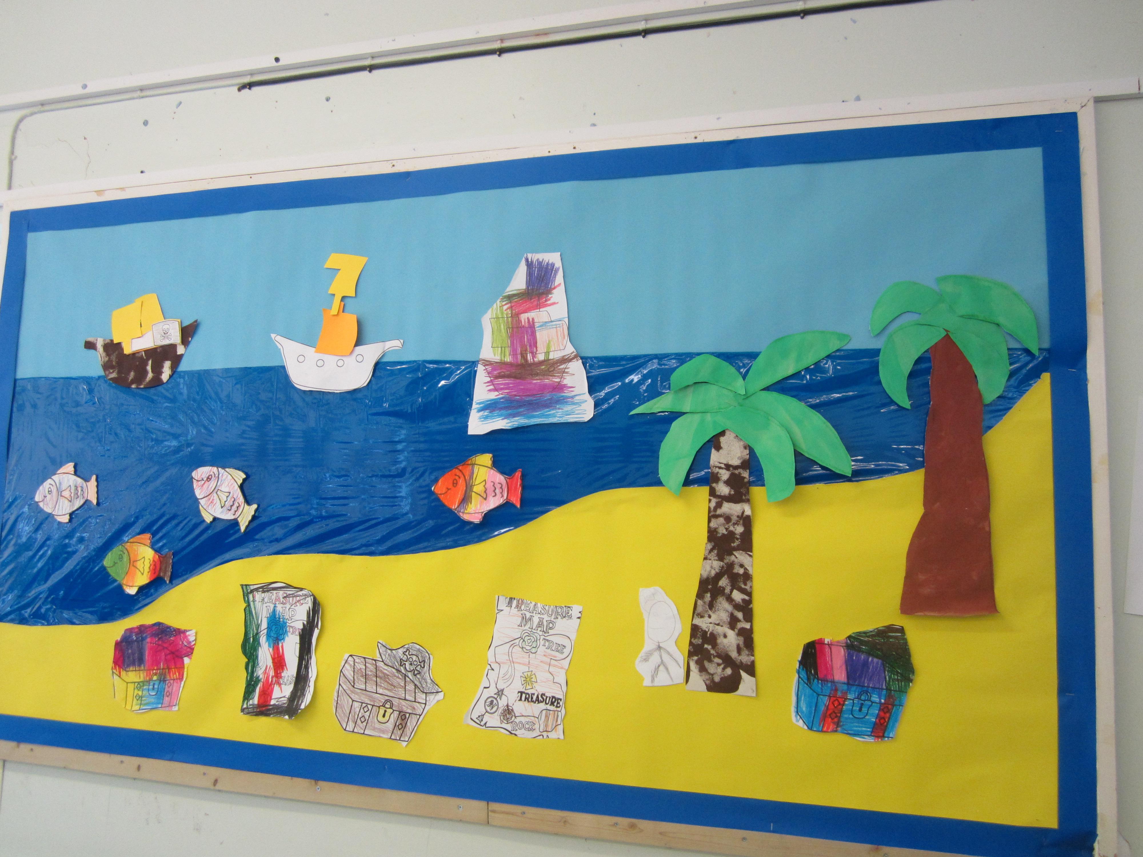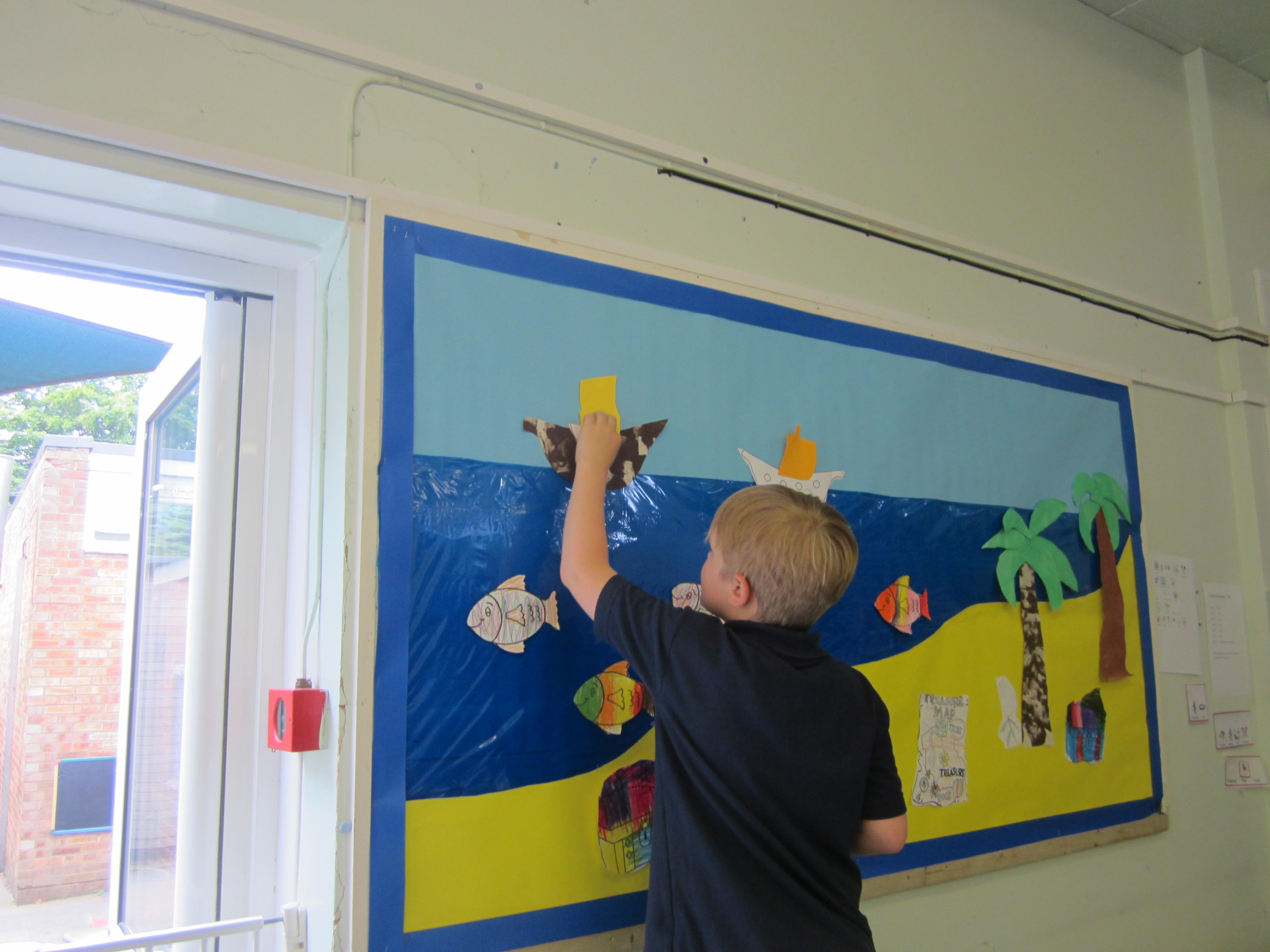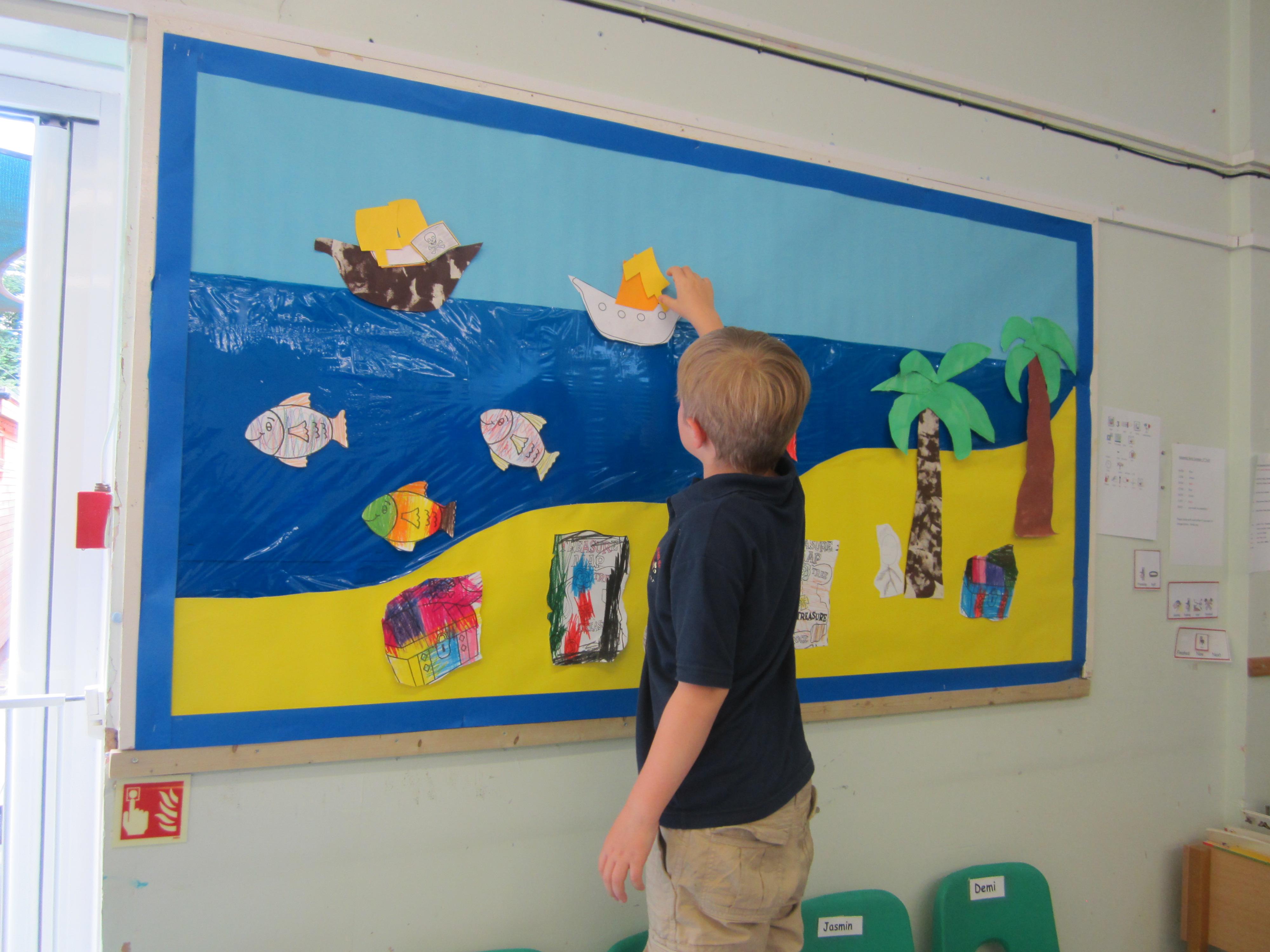 I seem to have a couple of new assistants. The children have been taking a lot of notice when we put up displays in the classroom or corridor. While we were drawing and colouring some pirate related things the other day, two of them decided to complete our treasure island display themselves. We left them to it, and they put lots of thought into how they arranged things. They didn't need us at all!