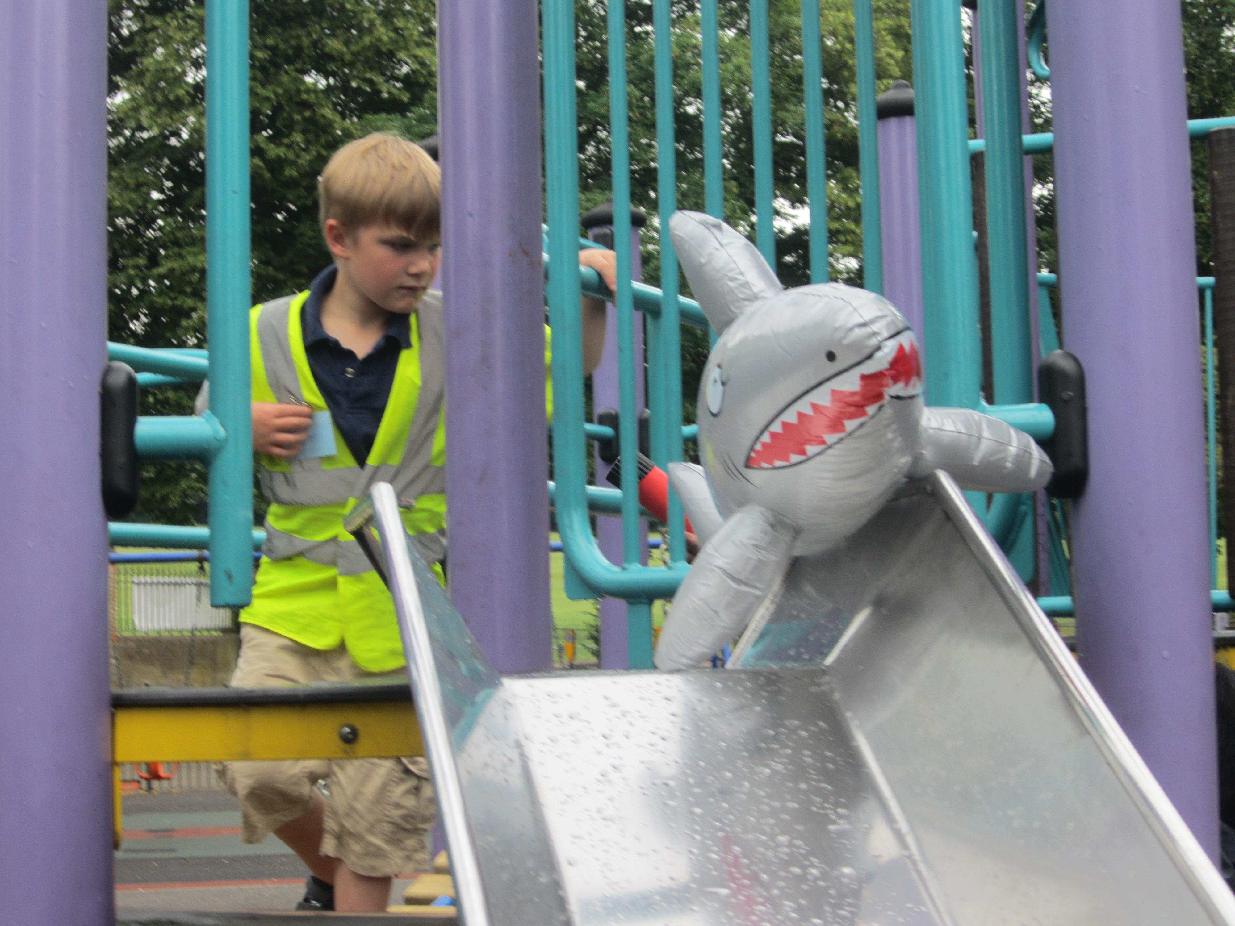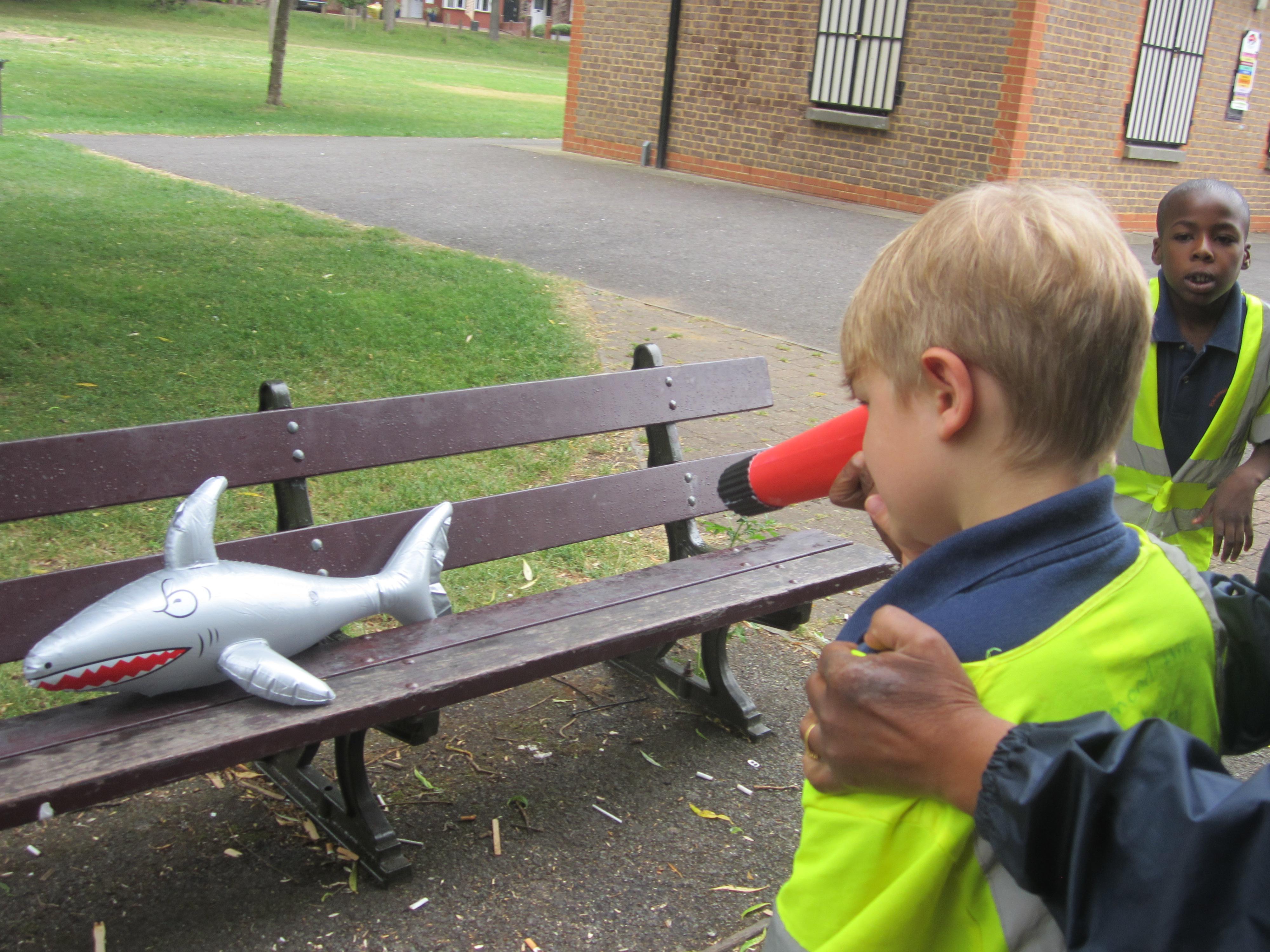 We are making our own telescopes like Timothy Pope's, and will be taking them to the park so that the children can look for sharks. Little do they know it yet, but they might well find an inflatable one in all sorts of strange places!