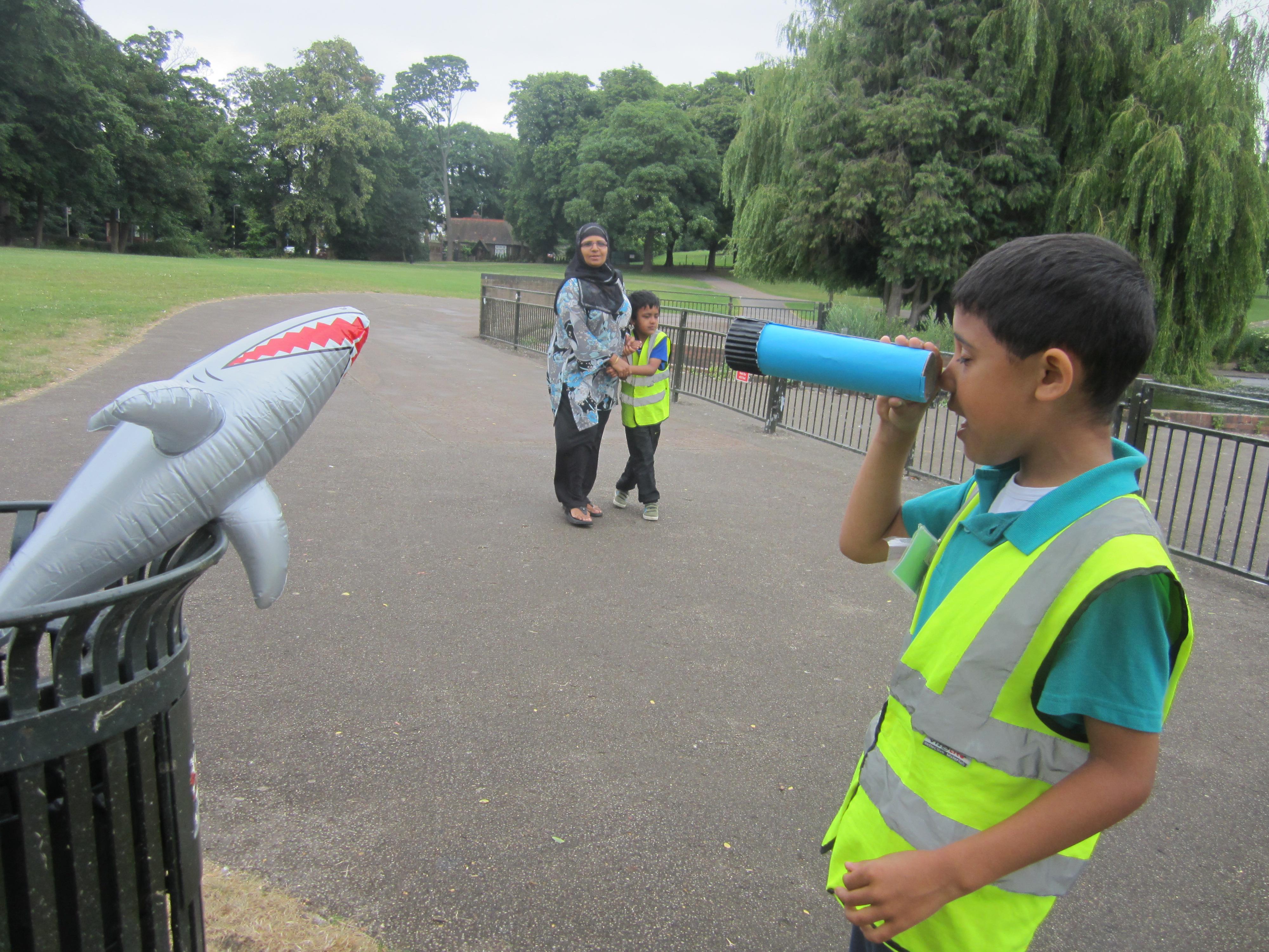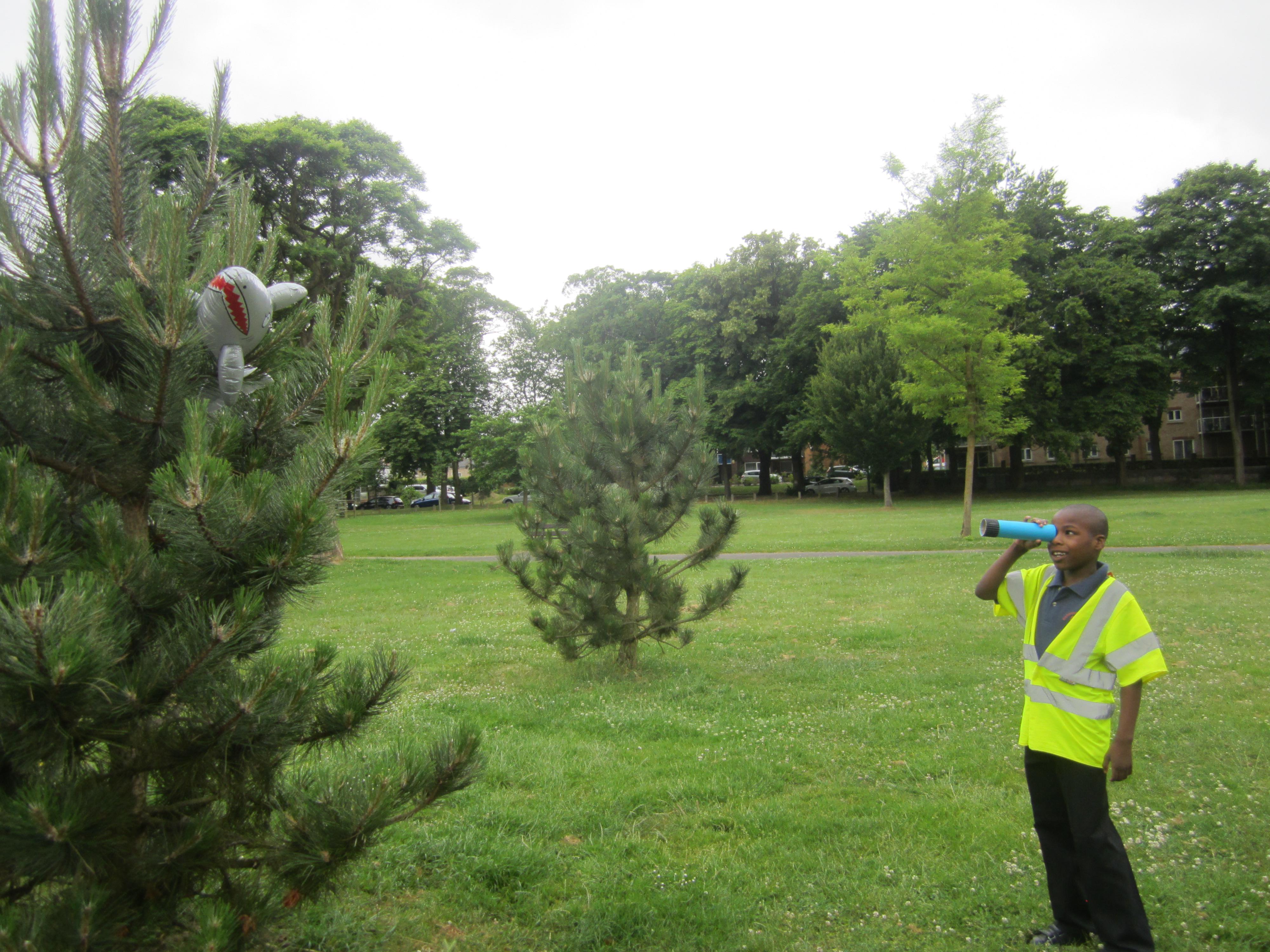 Today we went to Wardown Park with our home made telescopes, and just like Timothy Pope, we discovered that there was a shark in the park!