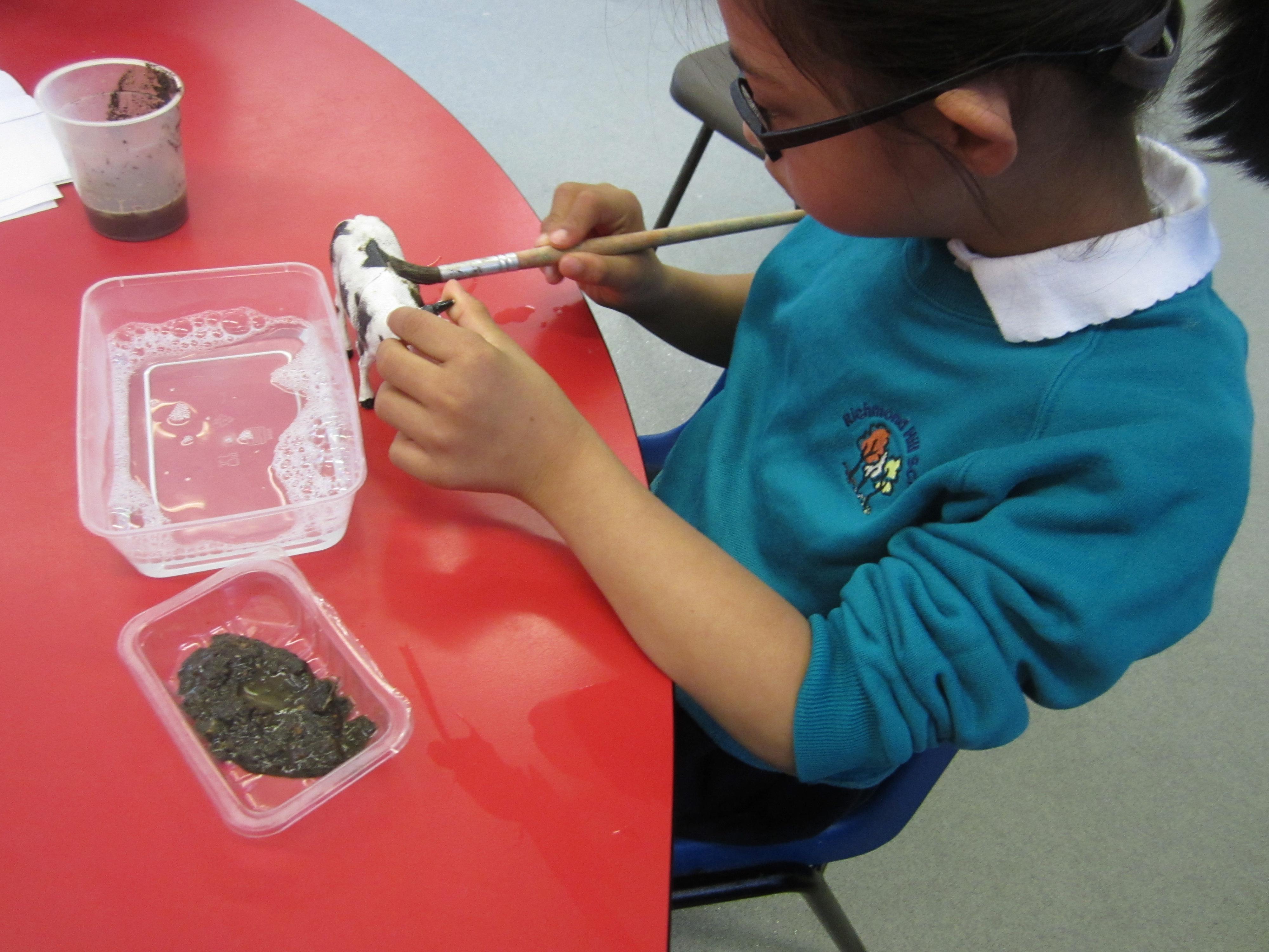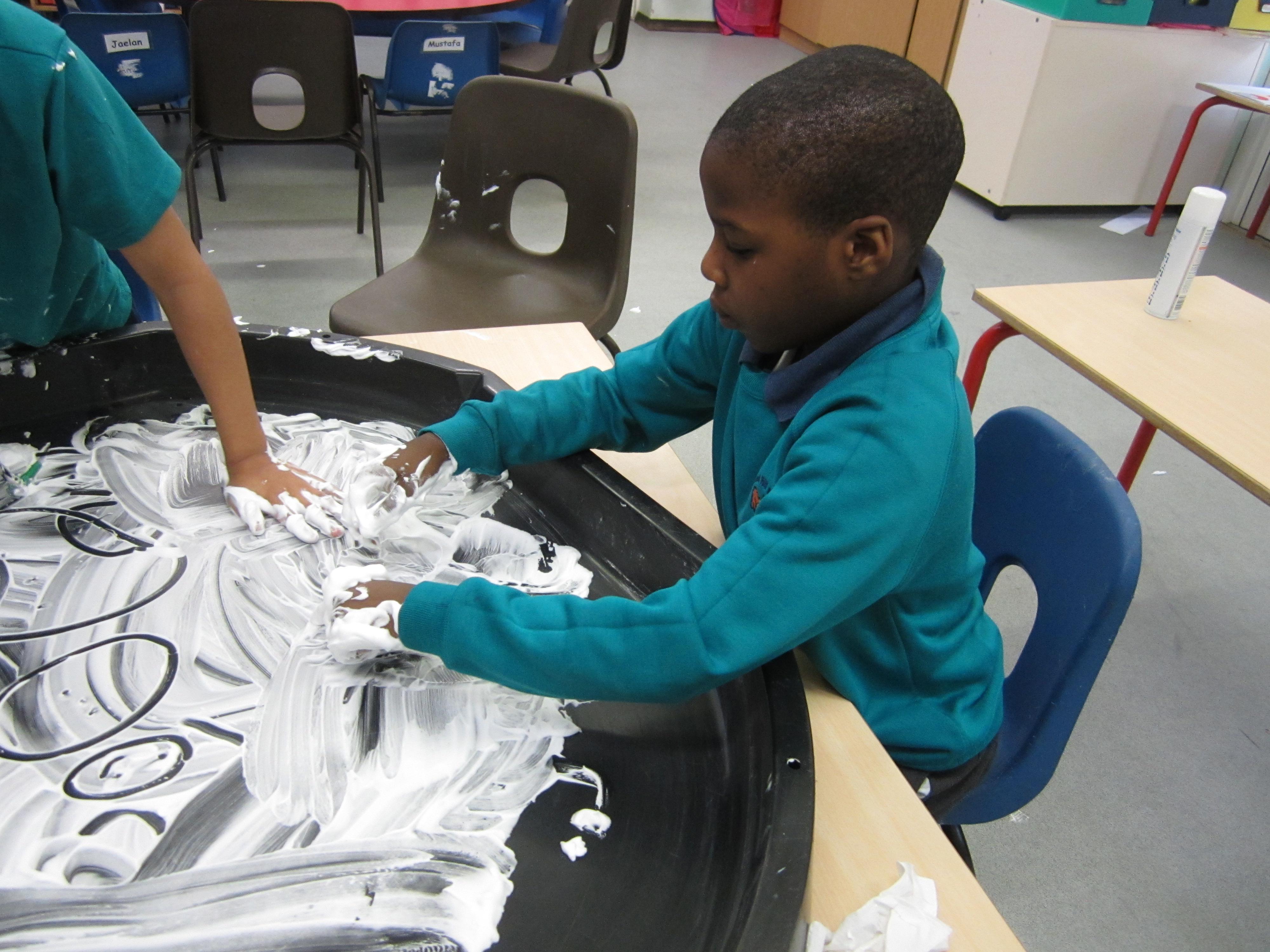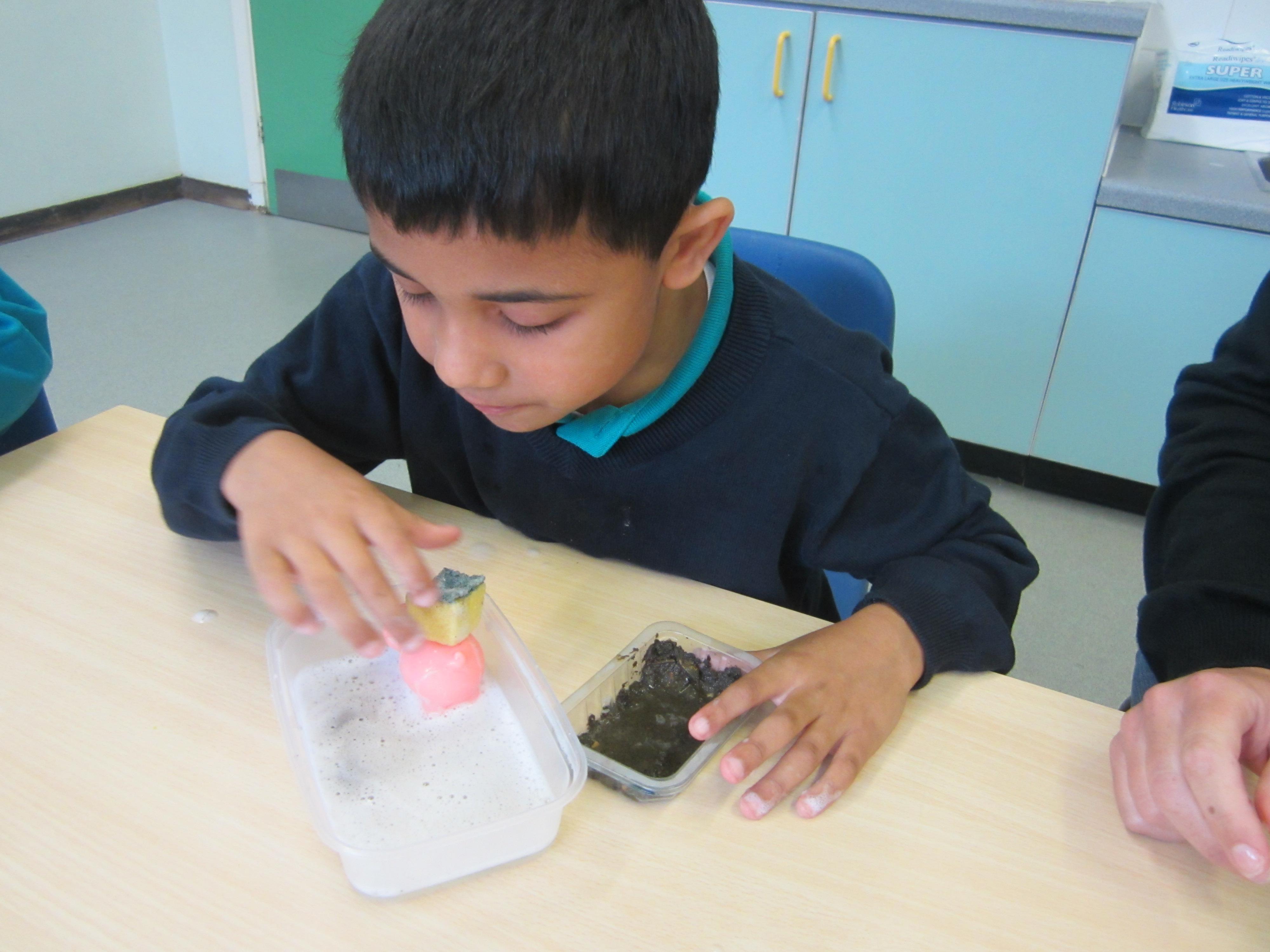 The children are really enjoying our story about Mrs Wishy Washy. Today they made their toy animals roll, jump or paddle in the mud. They then put them into their tubs of soapy water and washed them clean... before muddying them up again!