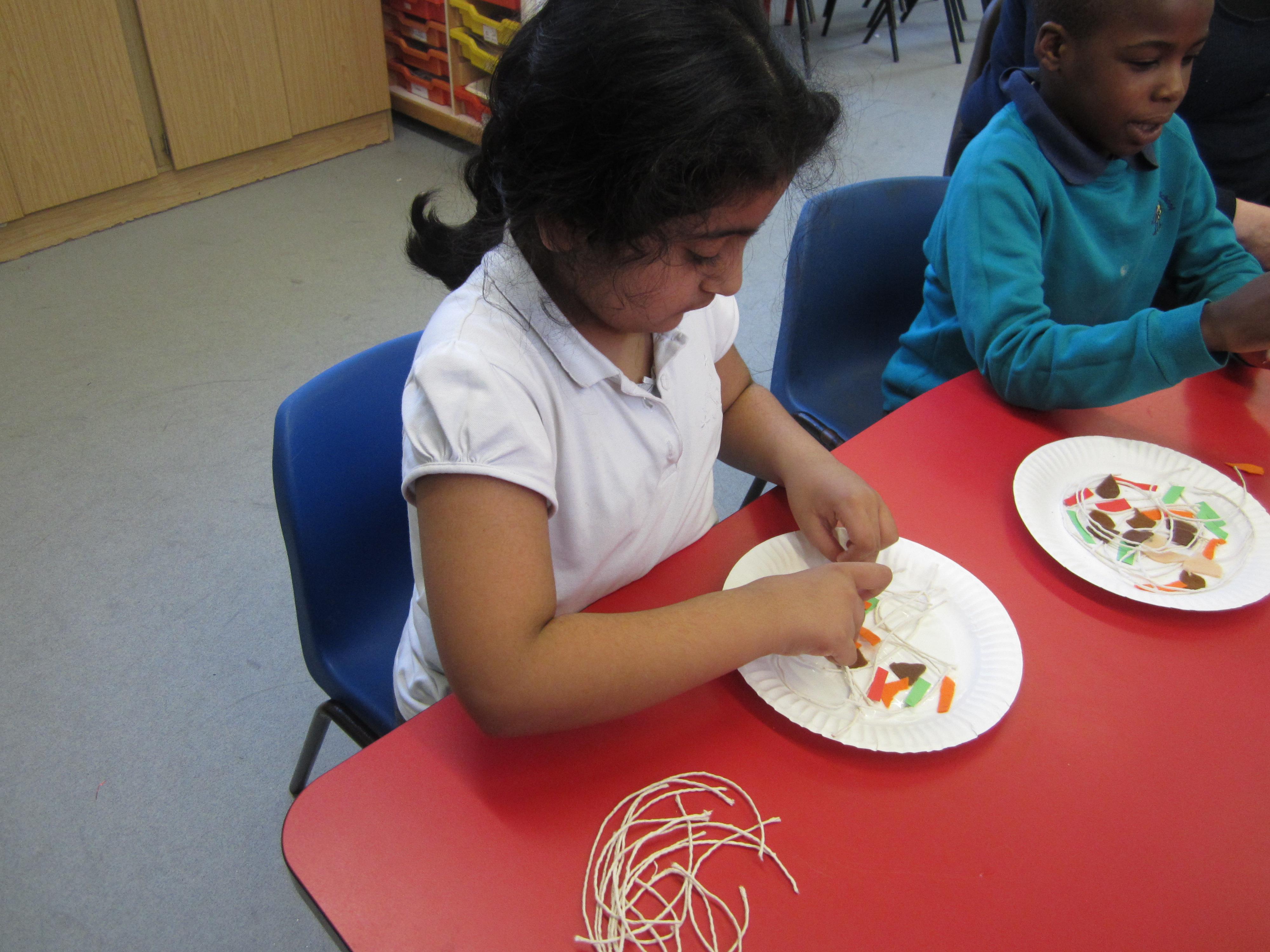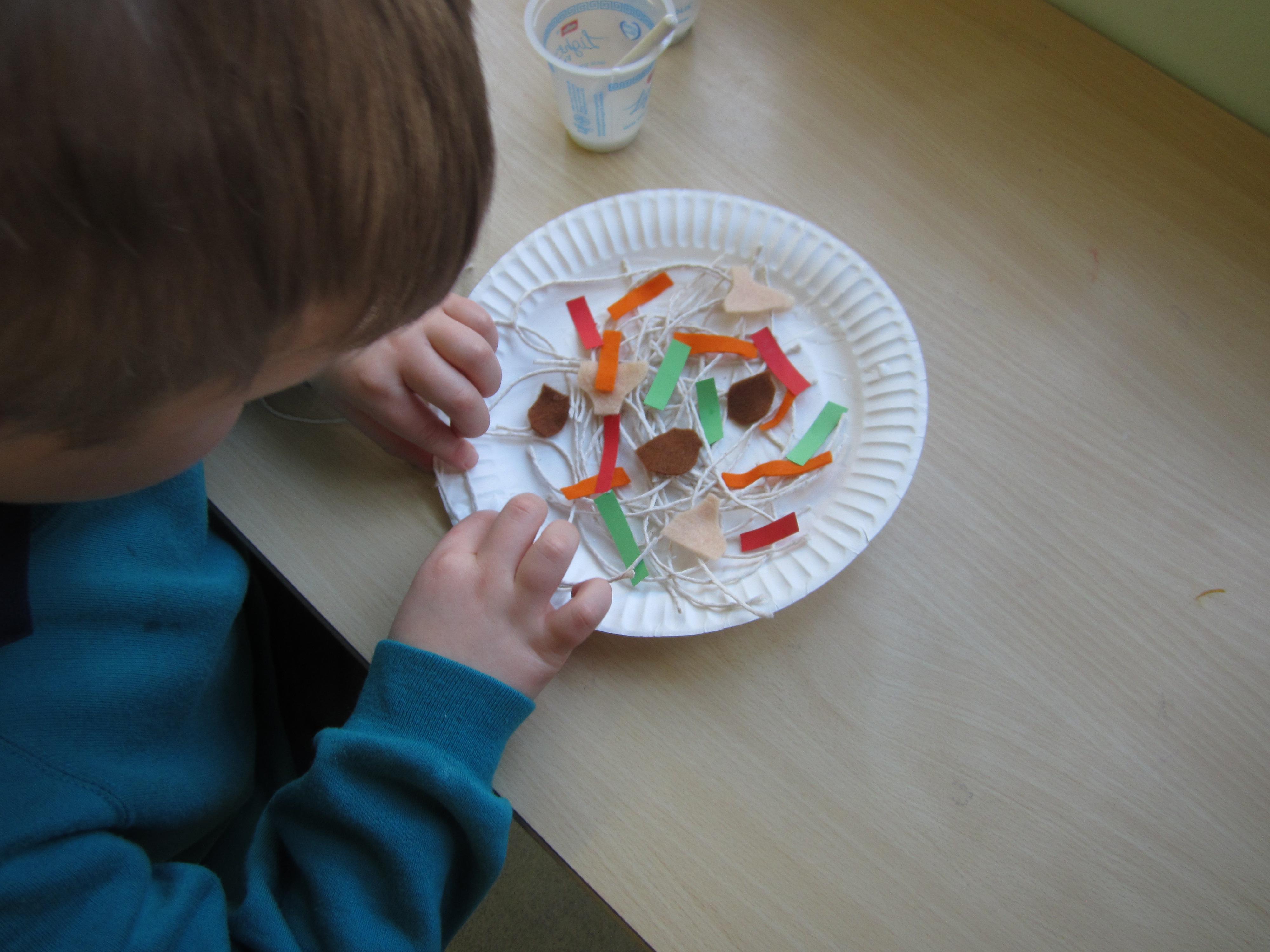 In DT, he children also made a plate of 'chow mein' using string for noodles, and felt and card for the vegetables. They really enjoyed arranging and sticking it all onto their paper plates.