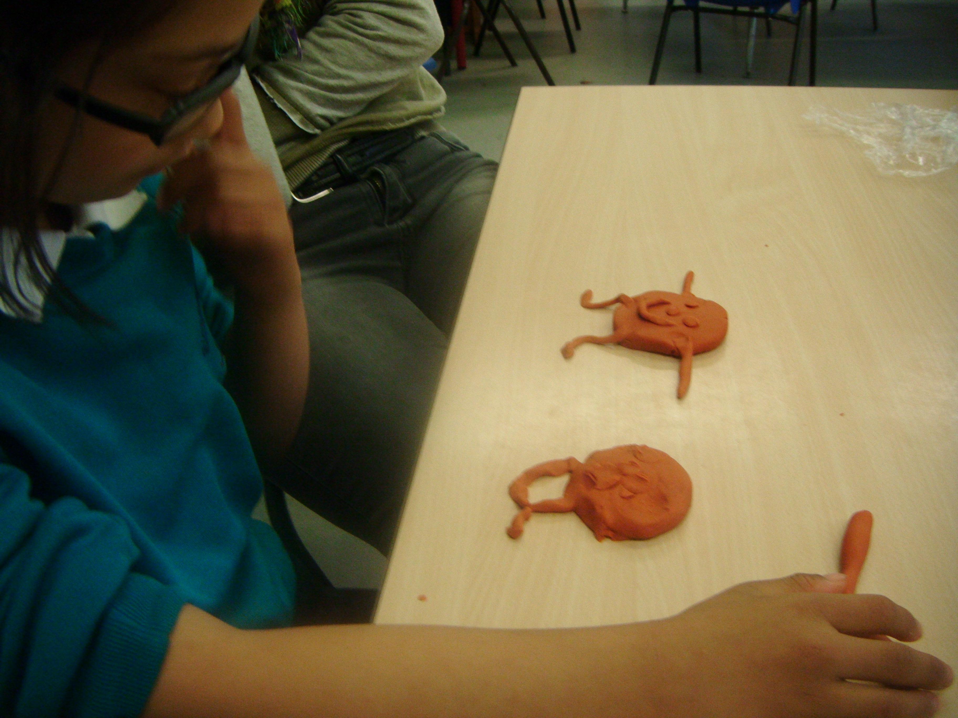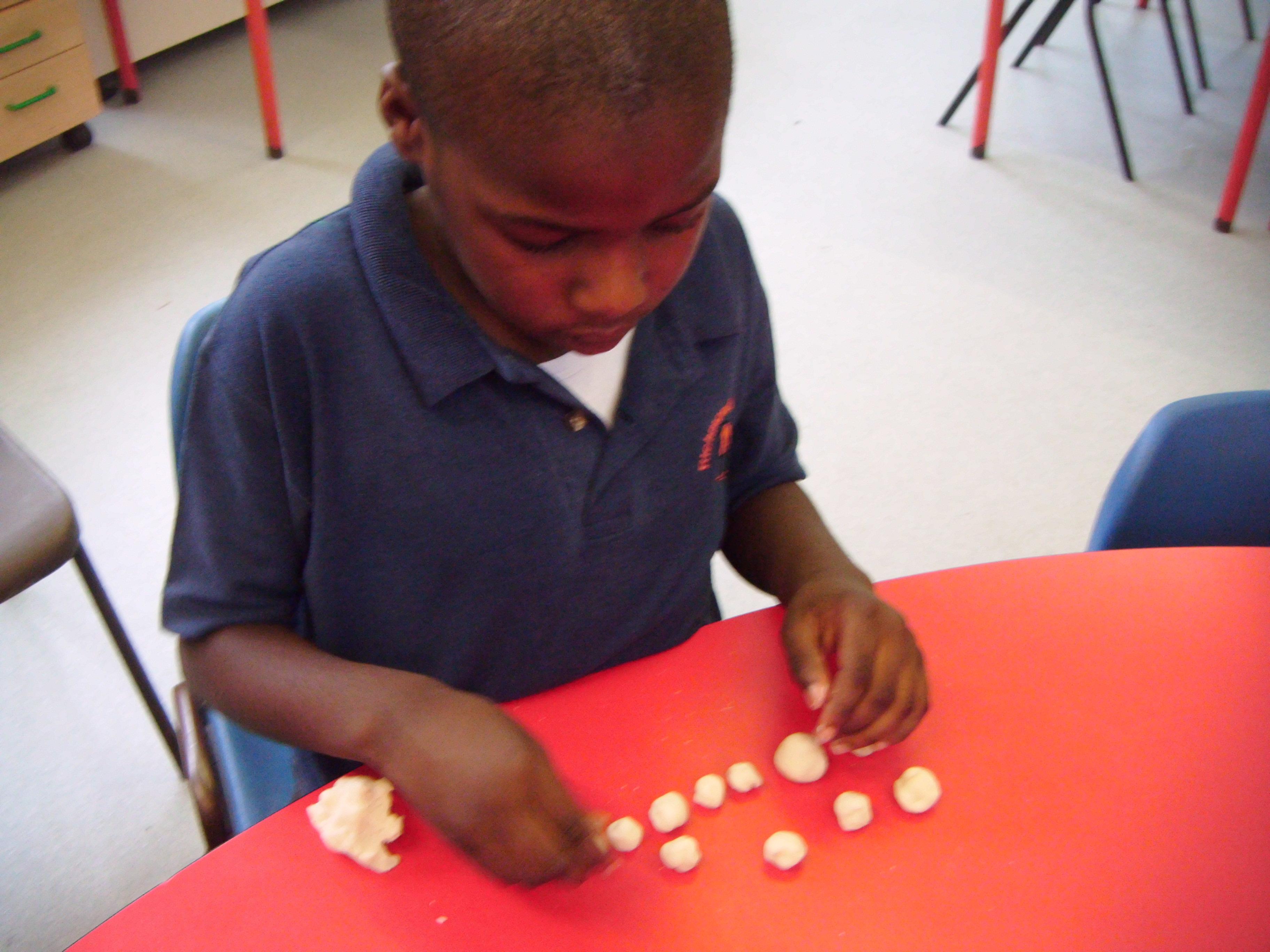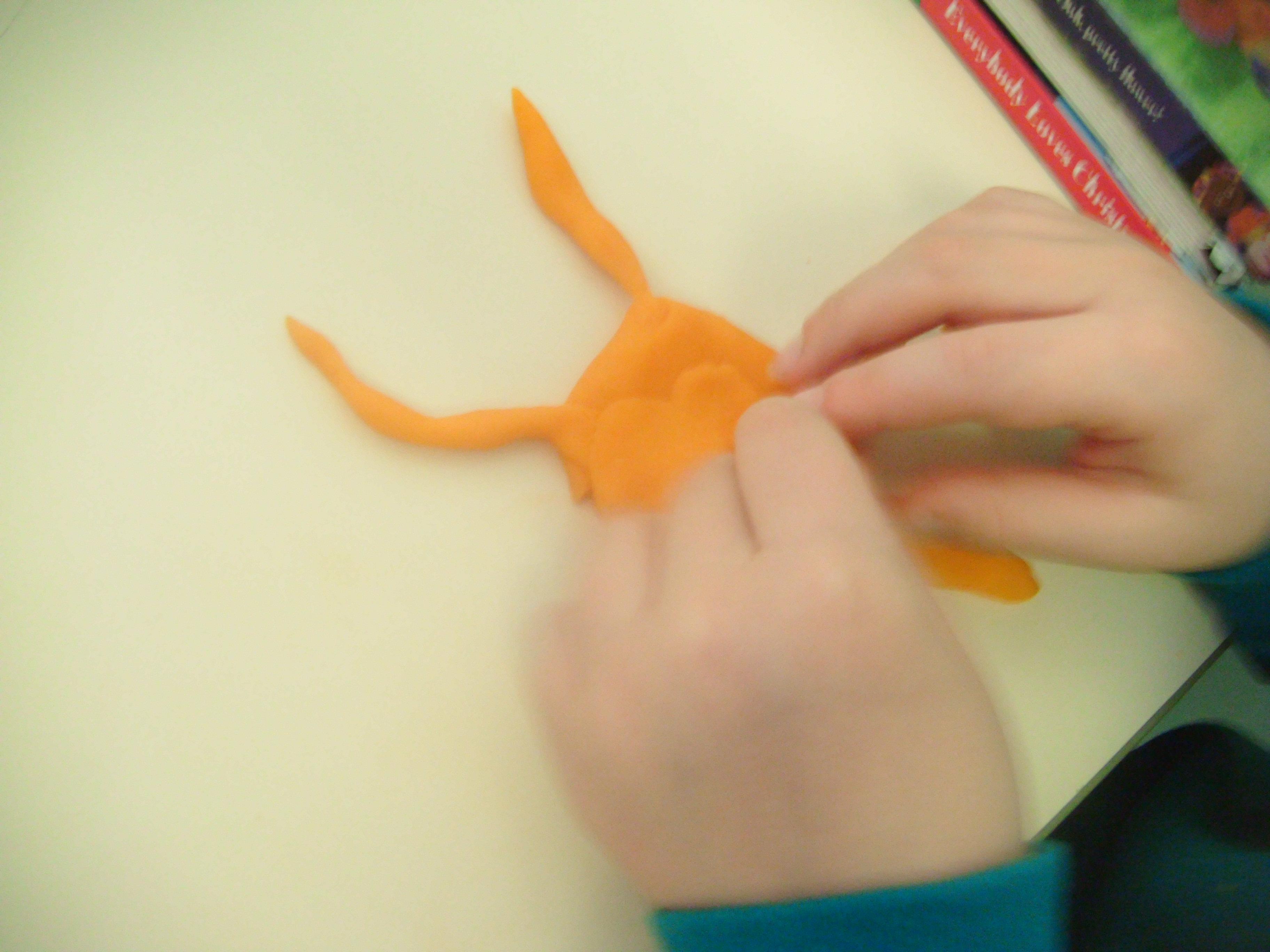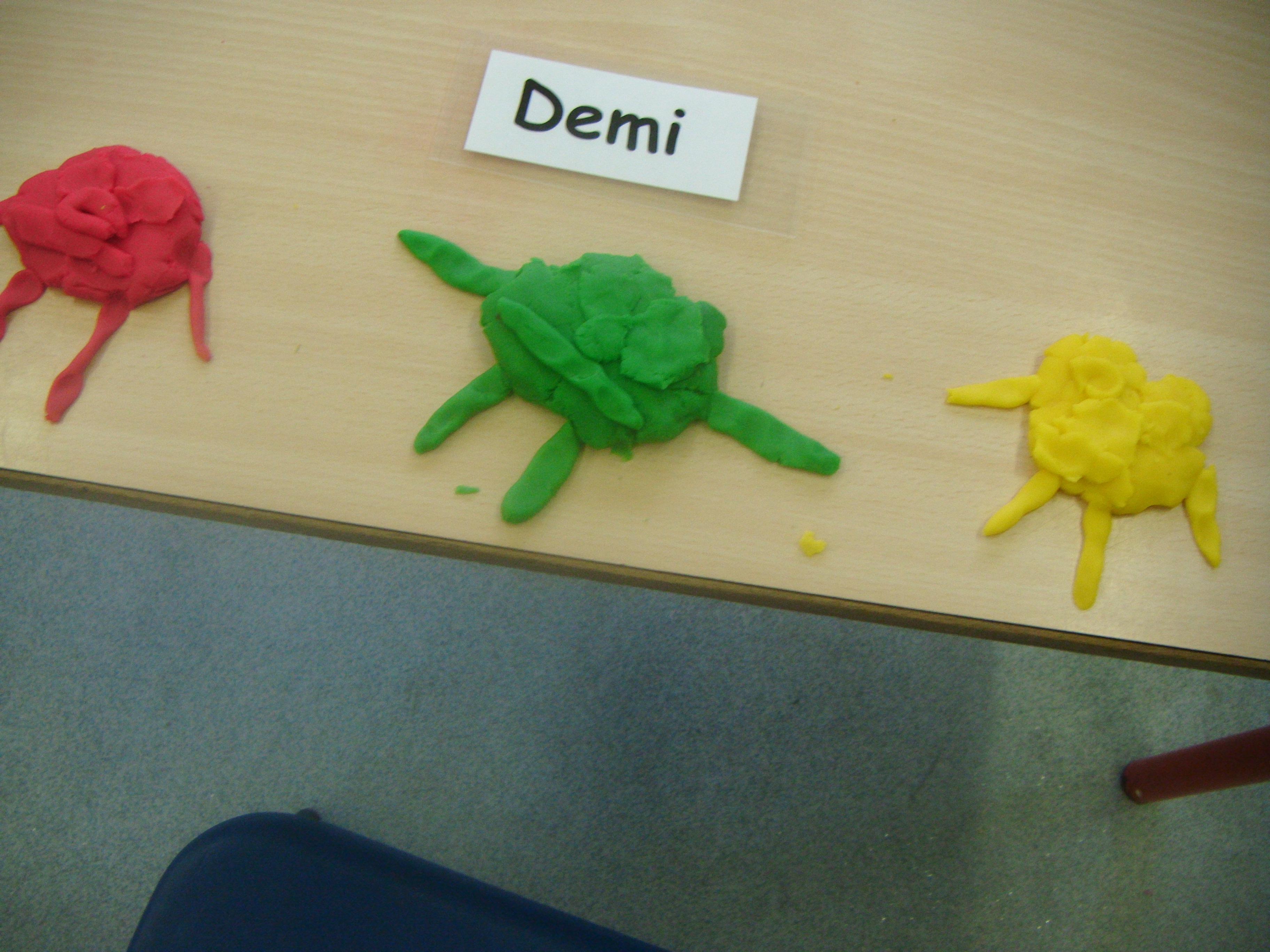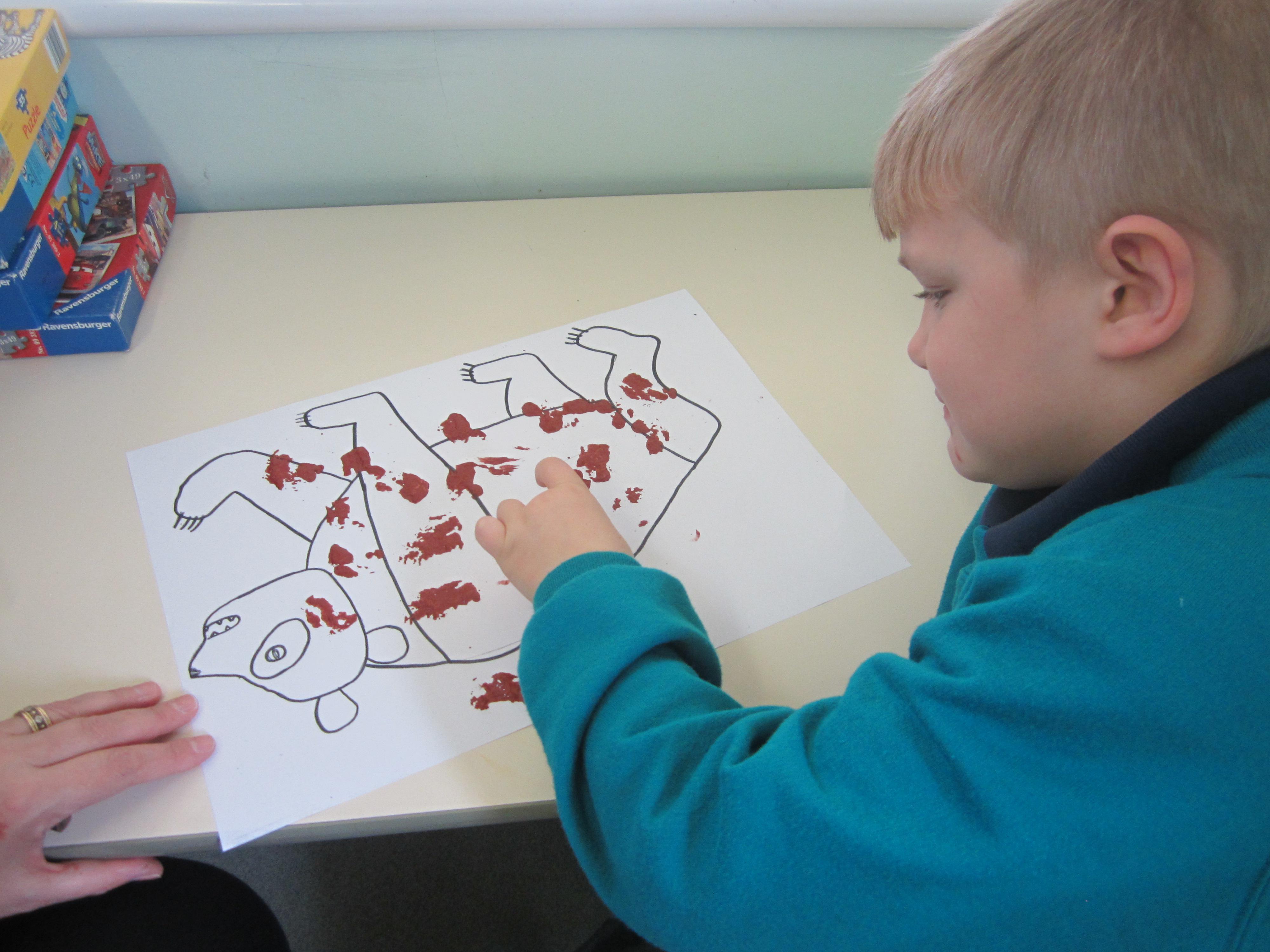 Handling playdough is really valuable activity, increasing the children's hand and finger control, and also having quite a calming and therapeutic effect. They rolled spheres and squashed them to make the body, then rolled thin 'sausages' for the arms and legs. Some of the children then became very focused about adding detail such as facial features, and all were able to identify the colours. It was a lovely session.