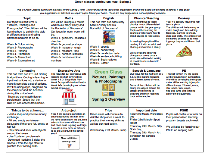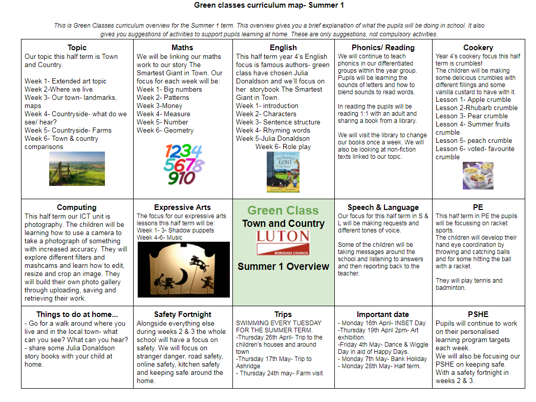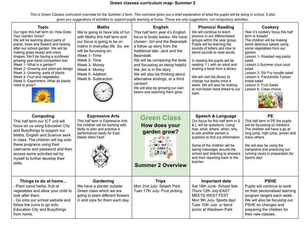 Below is Green Classes curriculum overview for this half term. You can click to view to document or download the PDF on the link below.