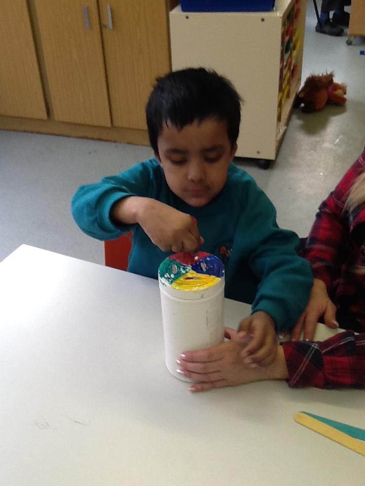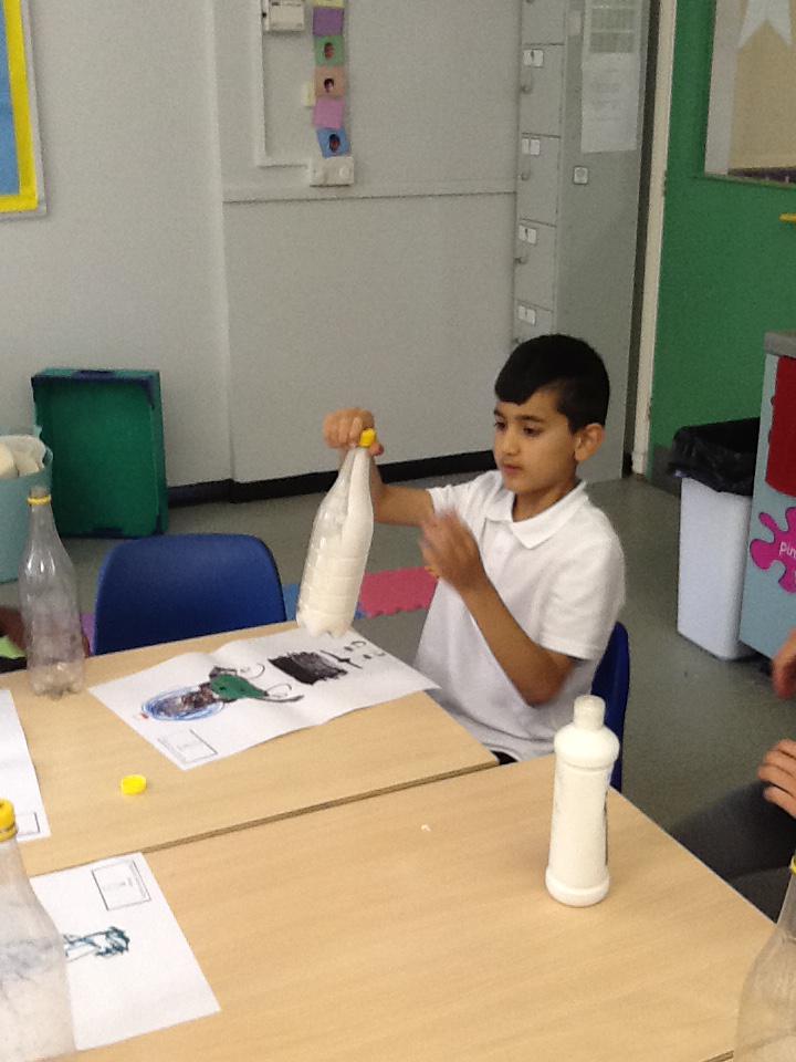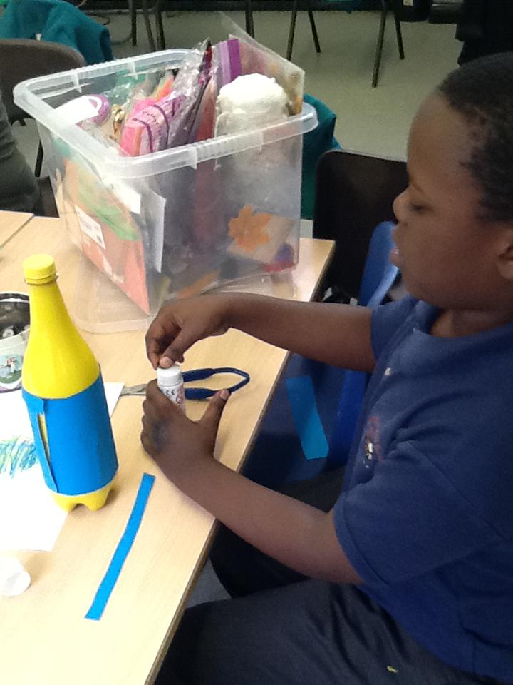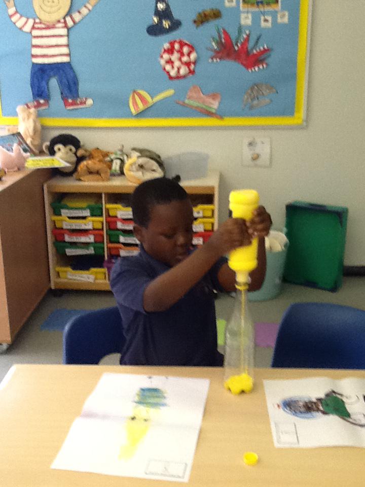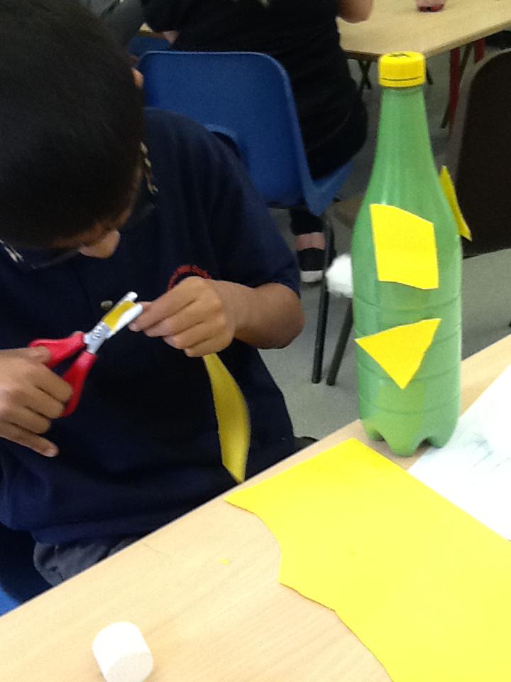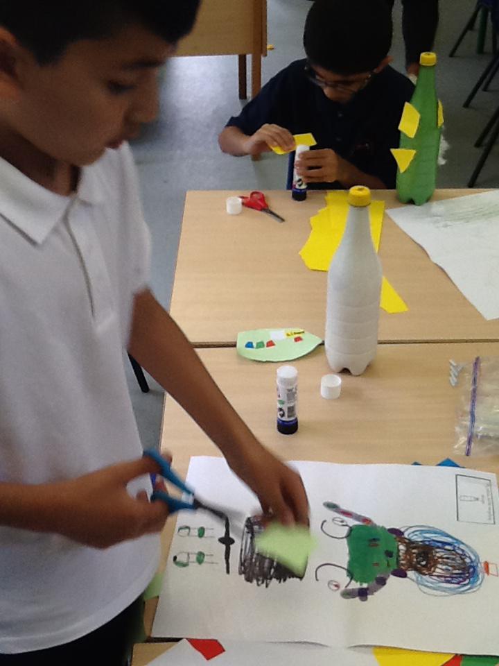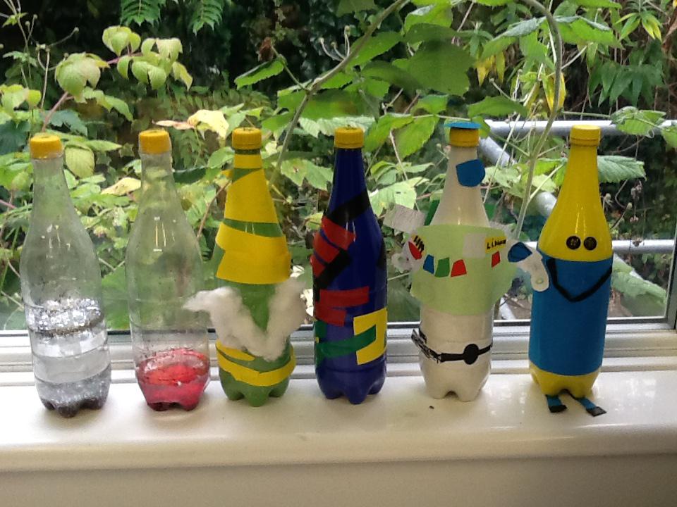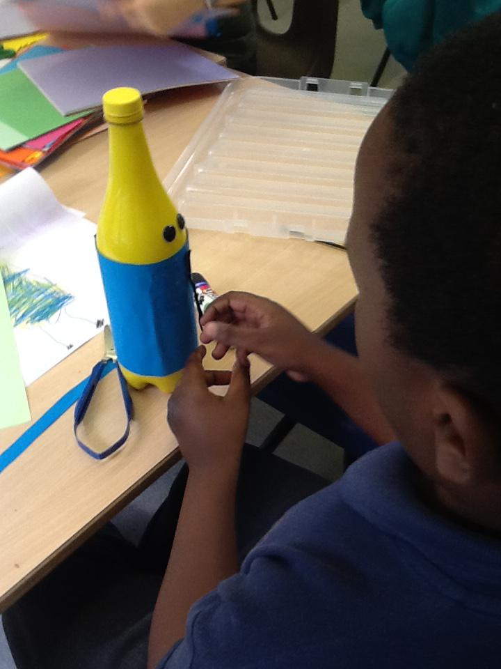 In topic this week we have been exploring plastic and learning about its properties. We designed our bottle on paper and then created our design by adding paint, drawings, tape and paper to our bottles! Ayaan made a colourful bottle, Zeeshan made a green and yellow monster, Mickey made Buzz, Andrew made a Minion and Mustafa and Rashdan made a sensory bottle. Have a look at the photos below.