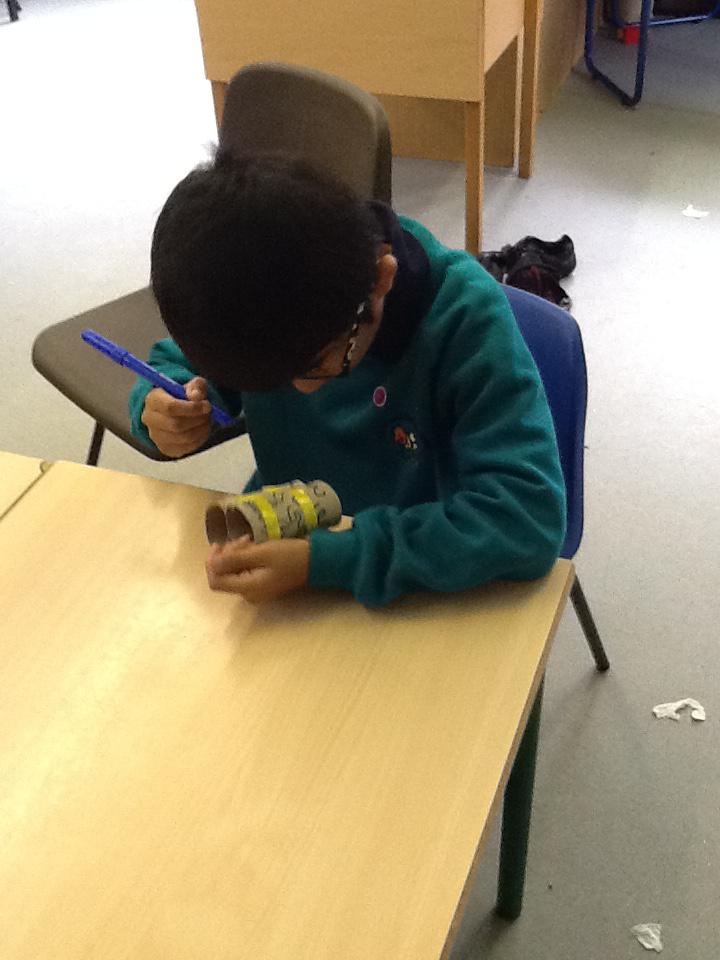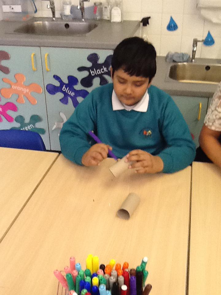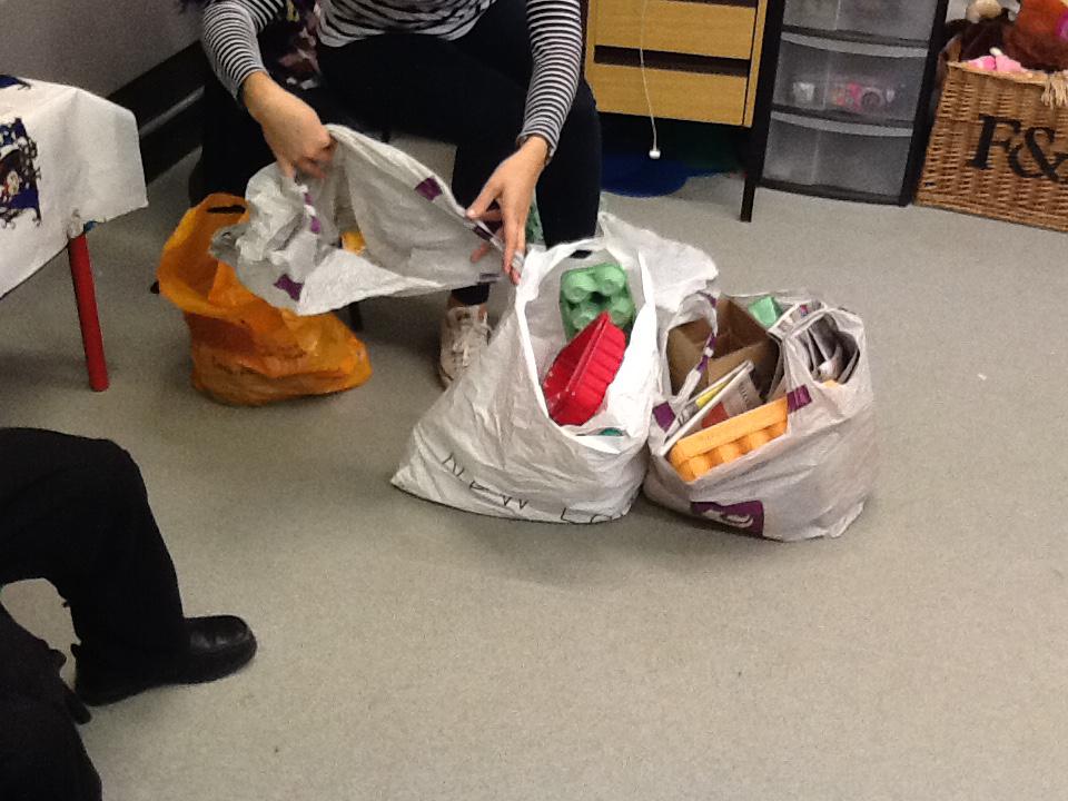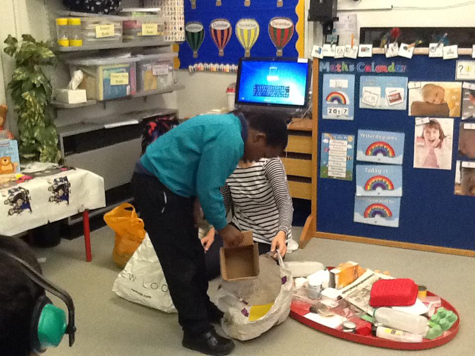 During each week we will become detectives- going out and about identifying different items made of specific materials.We'll also be making different crafts using recycled materials. We're planning a trip to the recycling bank and are going to collect clothes to donate to charity. We'll also be creating some music using different materials to create different sounds. Below are some photos of us making our binoculars and going on a junk hunt!