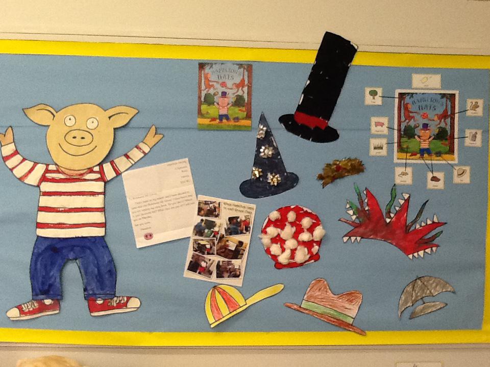 In English we are reading the story 'Hamilton's Hat's. Using the story the children will be working on further developing their fine and gross motor skills, reading, writing and speaking and listening.