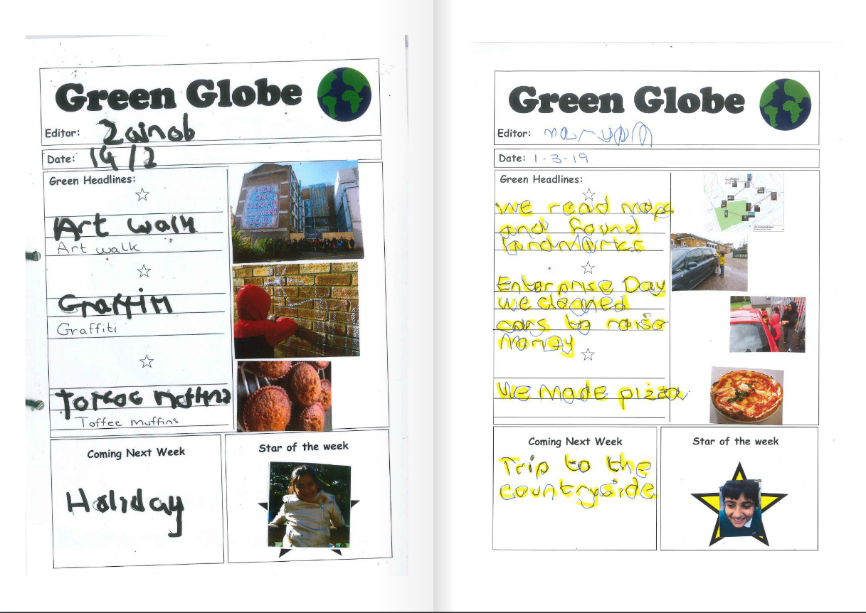 Every week we will be working with the children to create their own newspaper. This will be edited by the children with our support. The Green Globe can be accessed every week here on our class page. This is your chance to share and enjoy with your children their snapshot from every week in class.