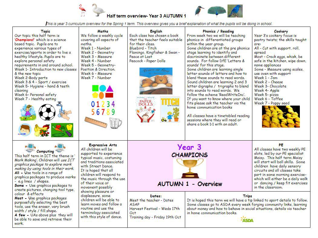 Our Topic this half term is Champions and we will be learning a new skill each week for example ball skills, bean bag, dance skills etc. We have a trip planned to St Albans Park to use the exercise equipment and our weekly Assemblies will be linked to the Topic.