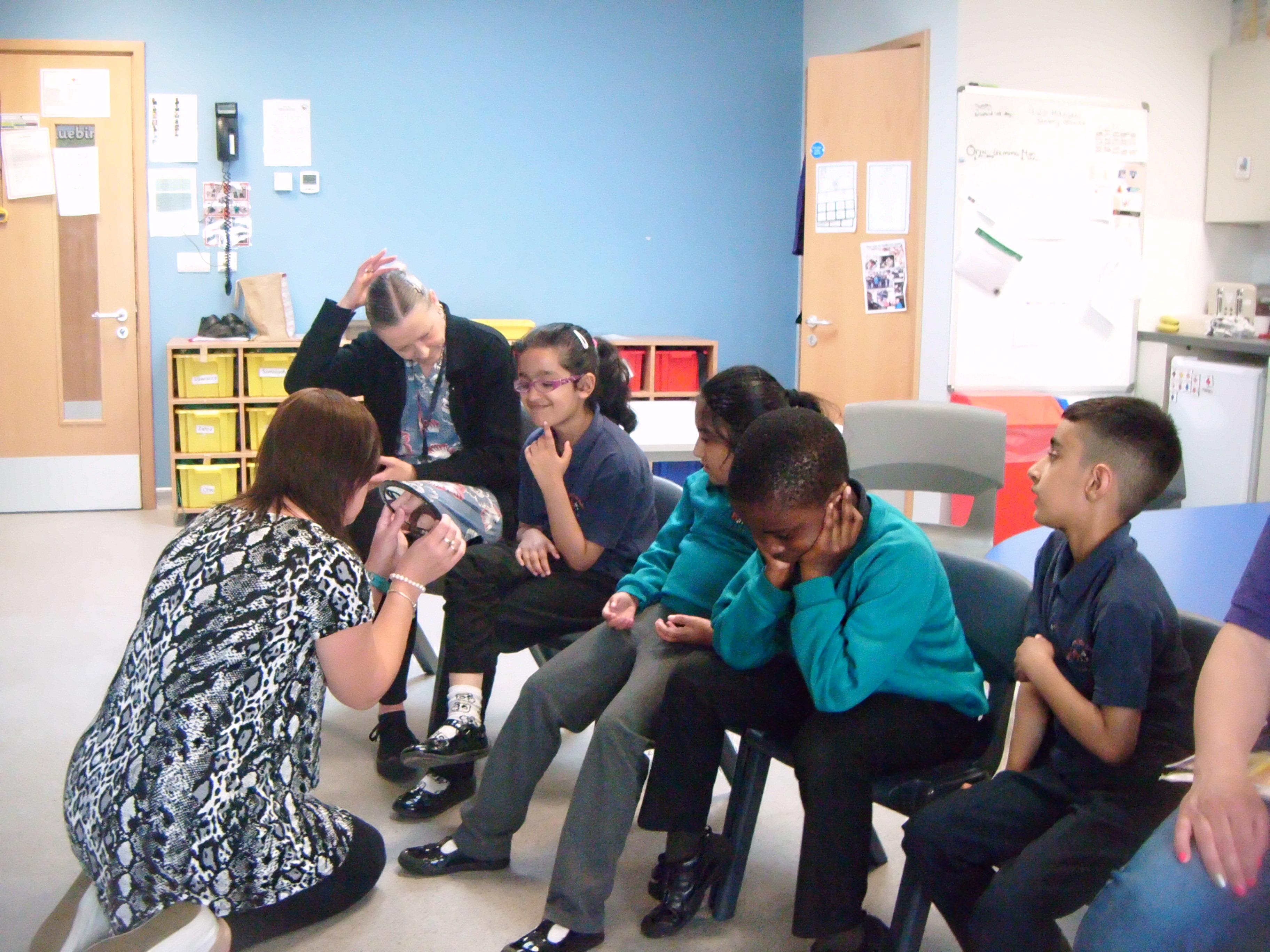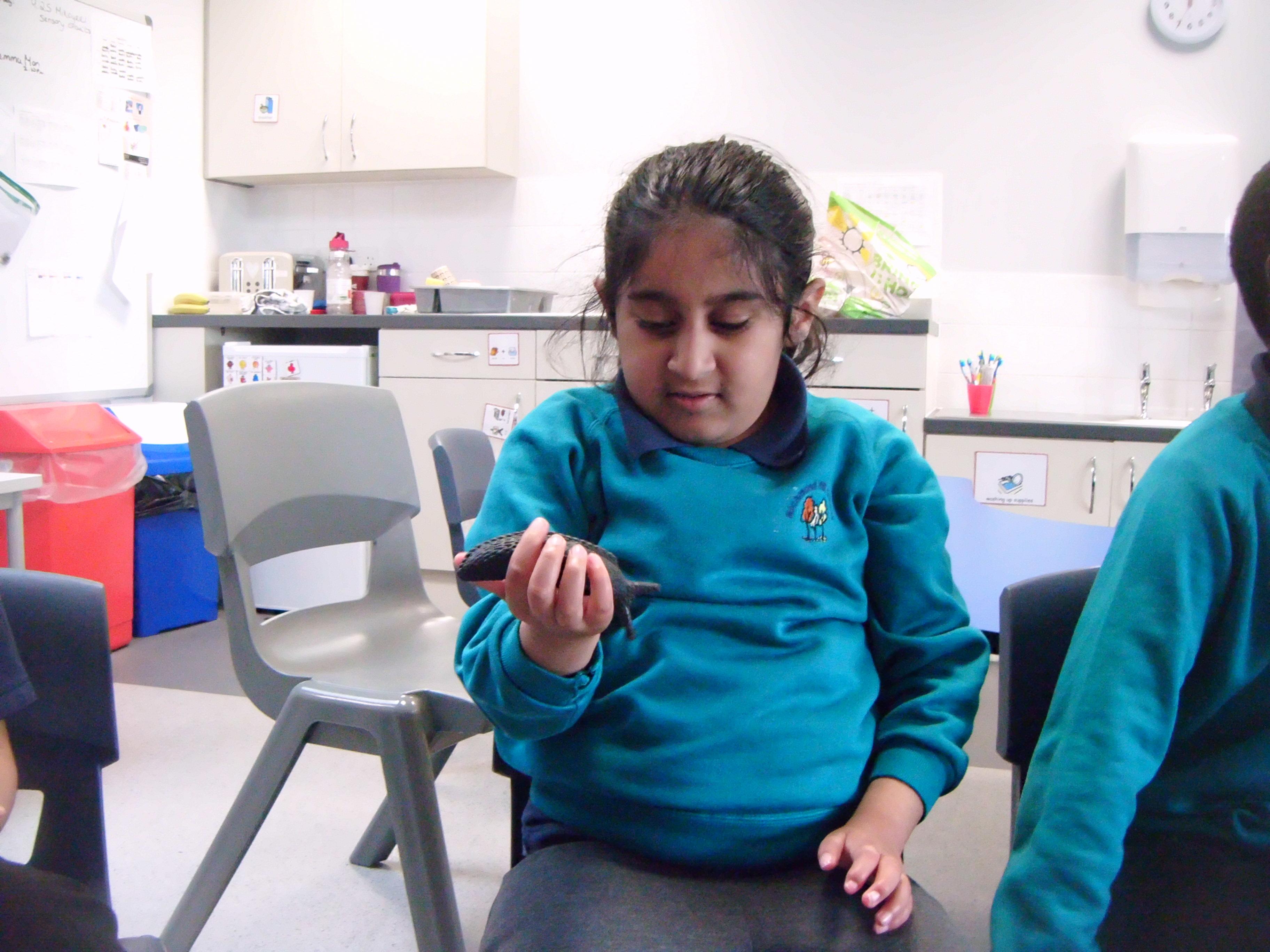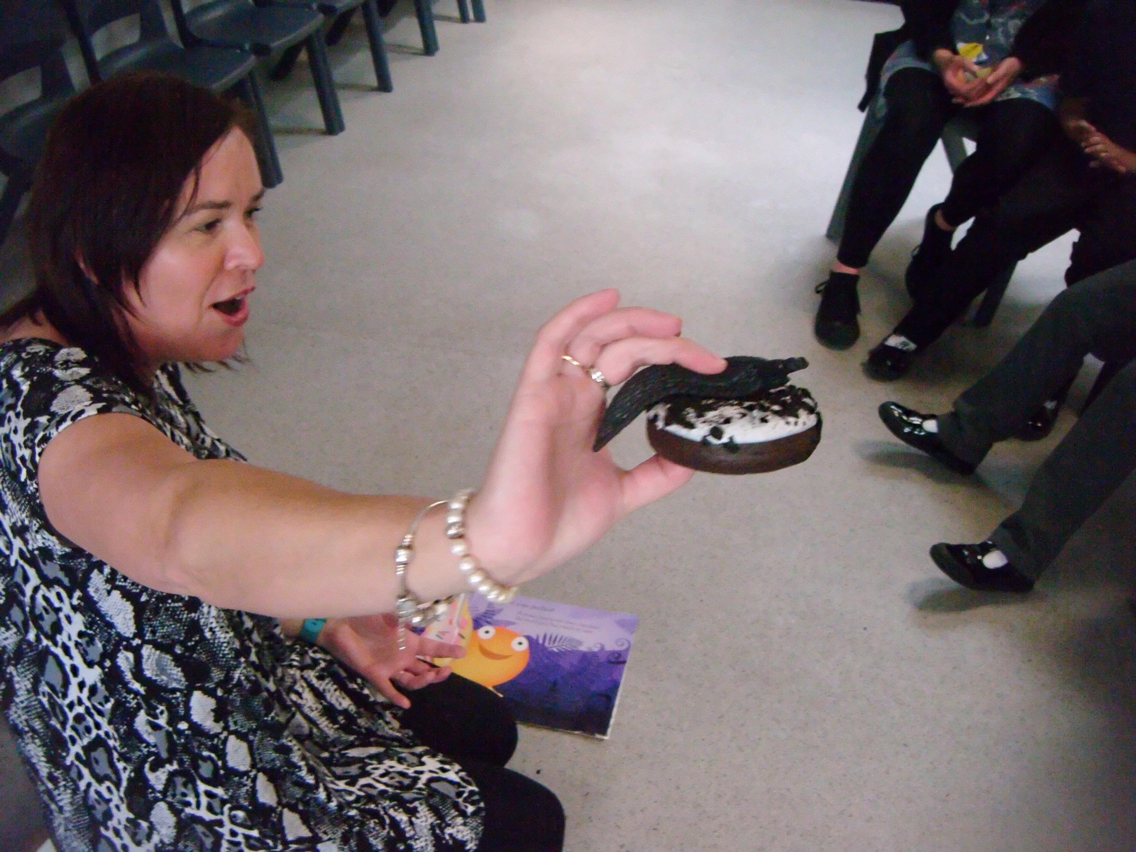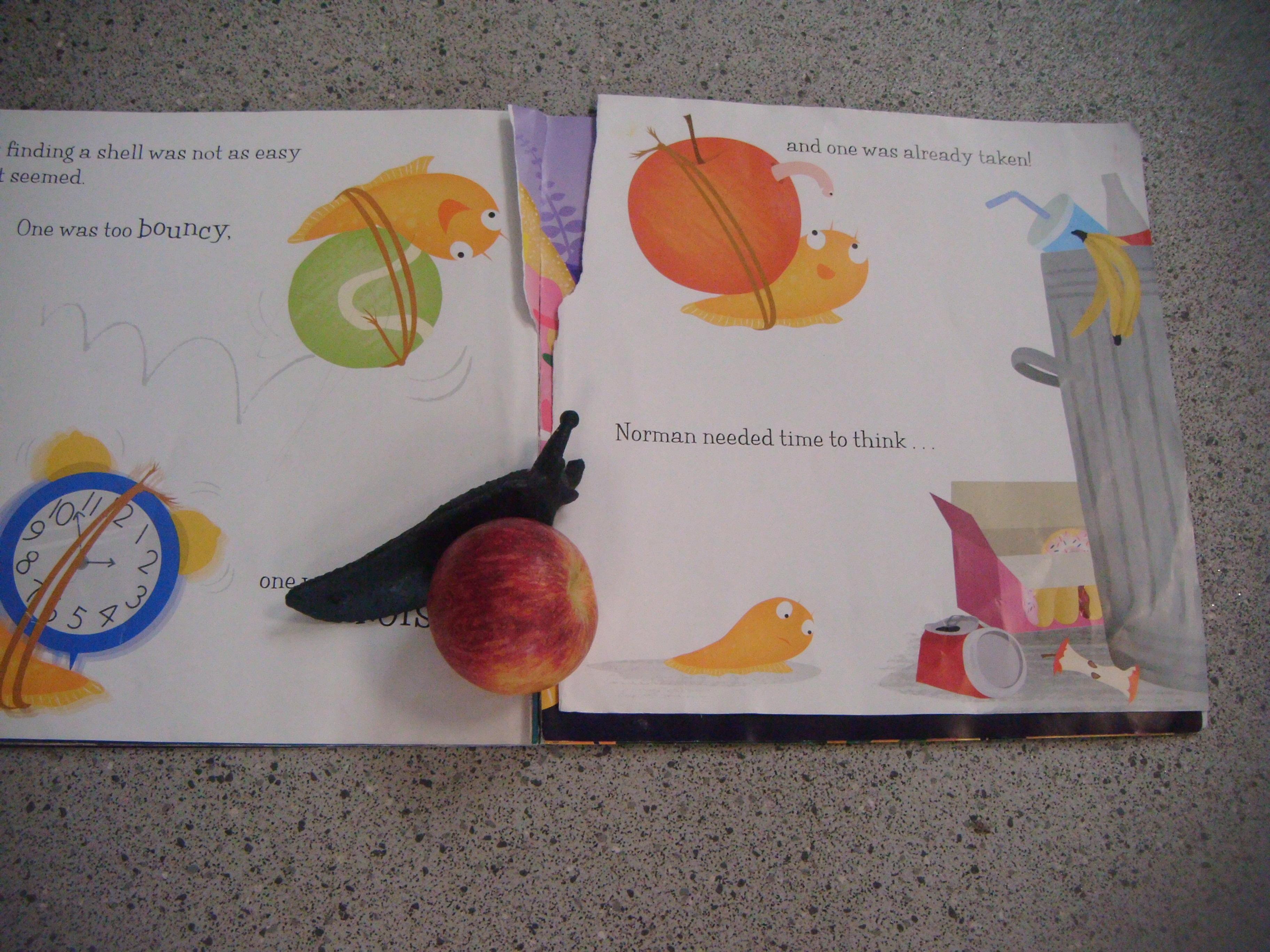 Kingfisher class enjoying the story of Norman the slug with the silly shell and props.