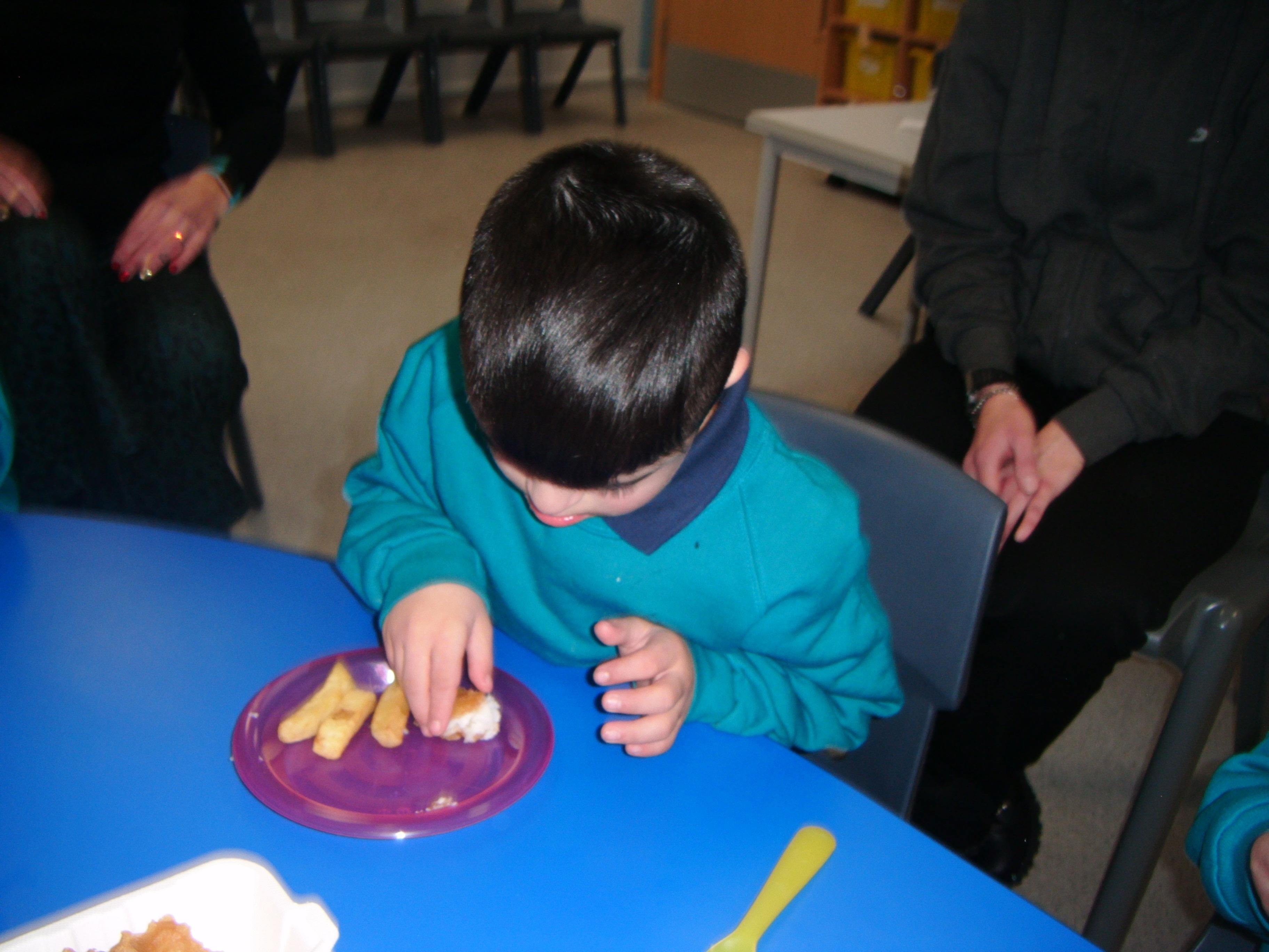 Kingfisher class visited the Wigmore fish and chips shop and purchased fish and chips to try back at school as part of their Topic Come dine with me.
