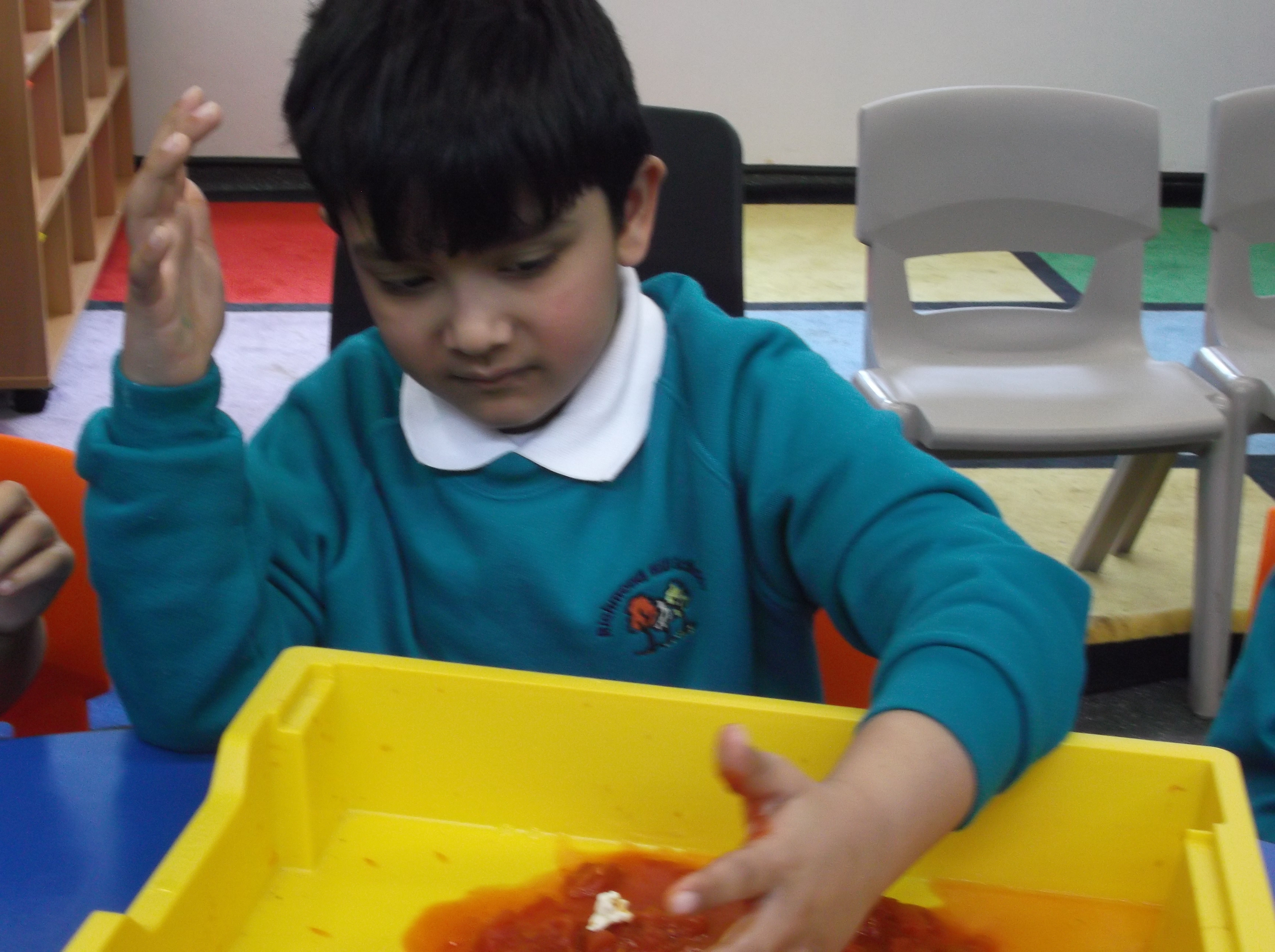 The children have found the mud outside on the field very interesting to be the, all of the children have loved splashing around on the field and getting mucky in the mud!
