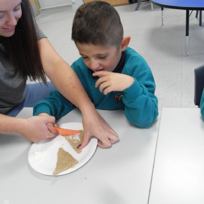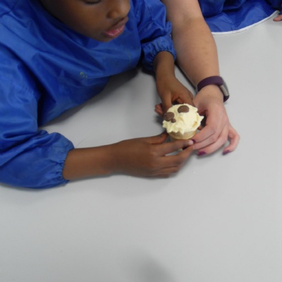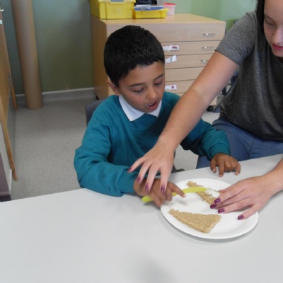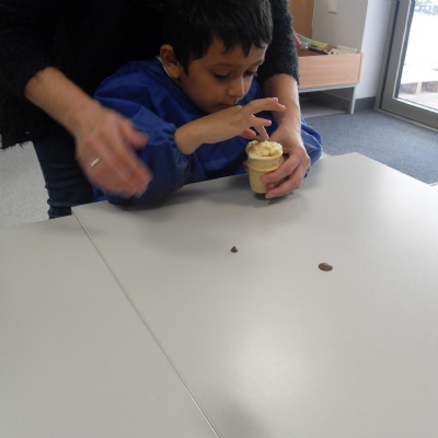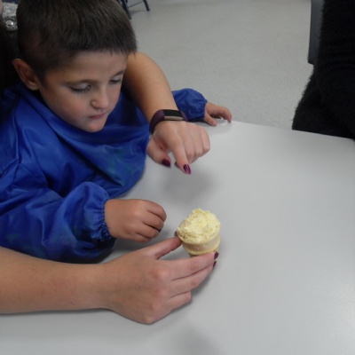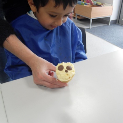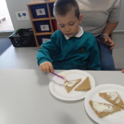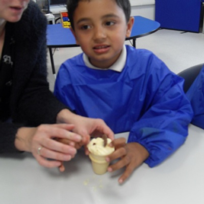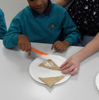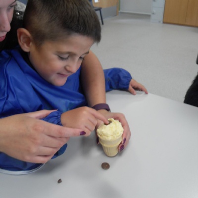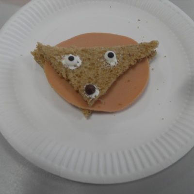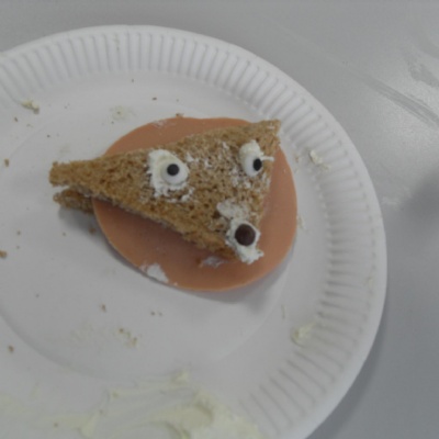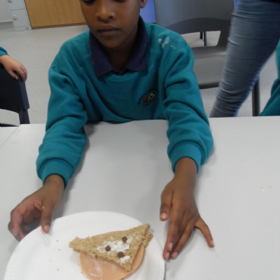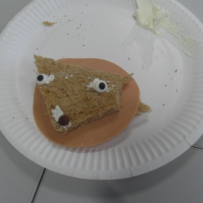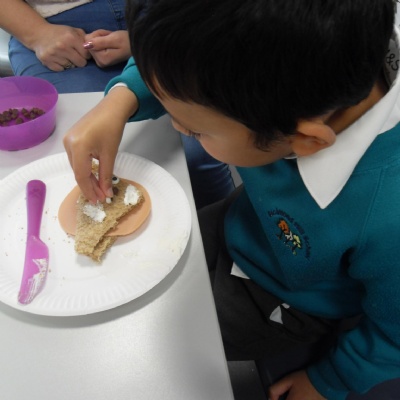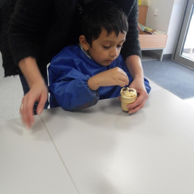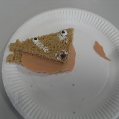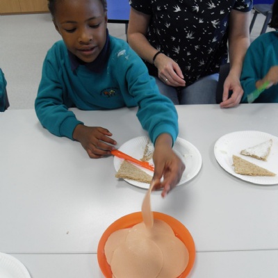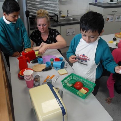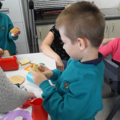 The children making their own roasted fox sandwiches and owl ice cream from The Gruffalo story.