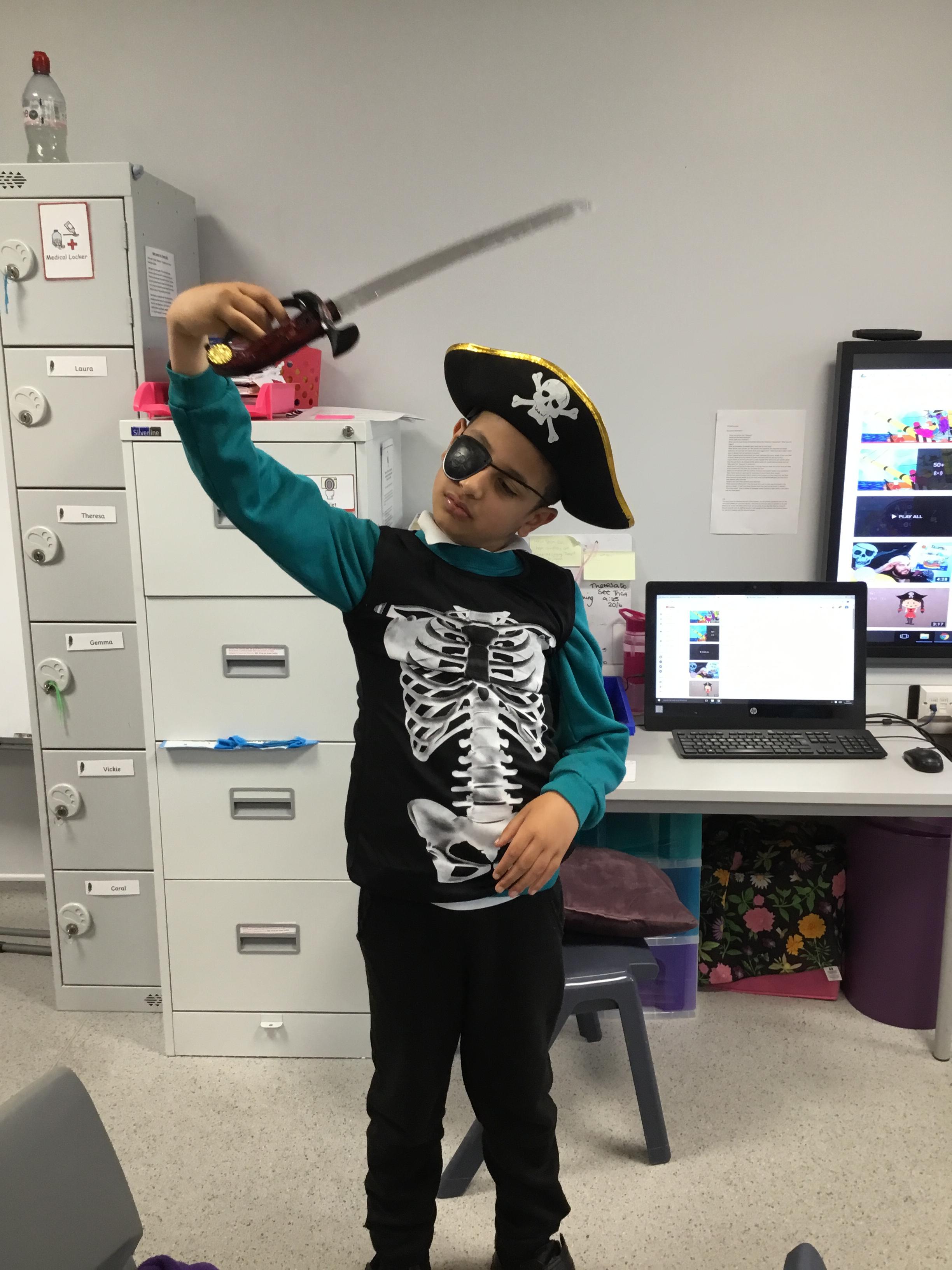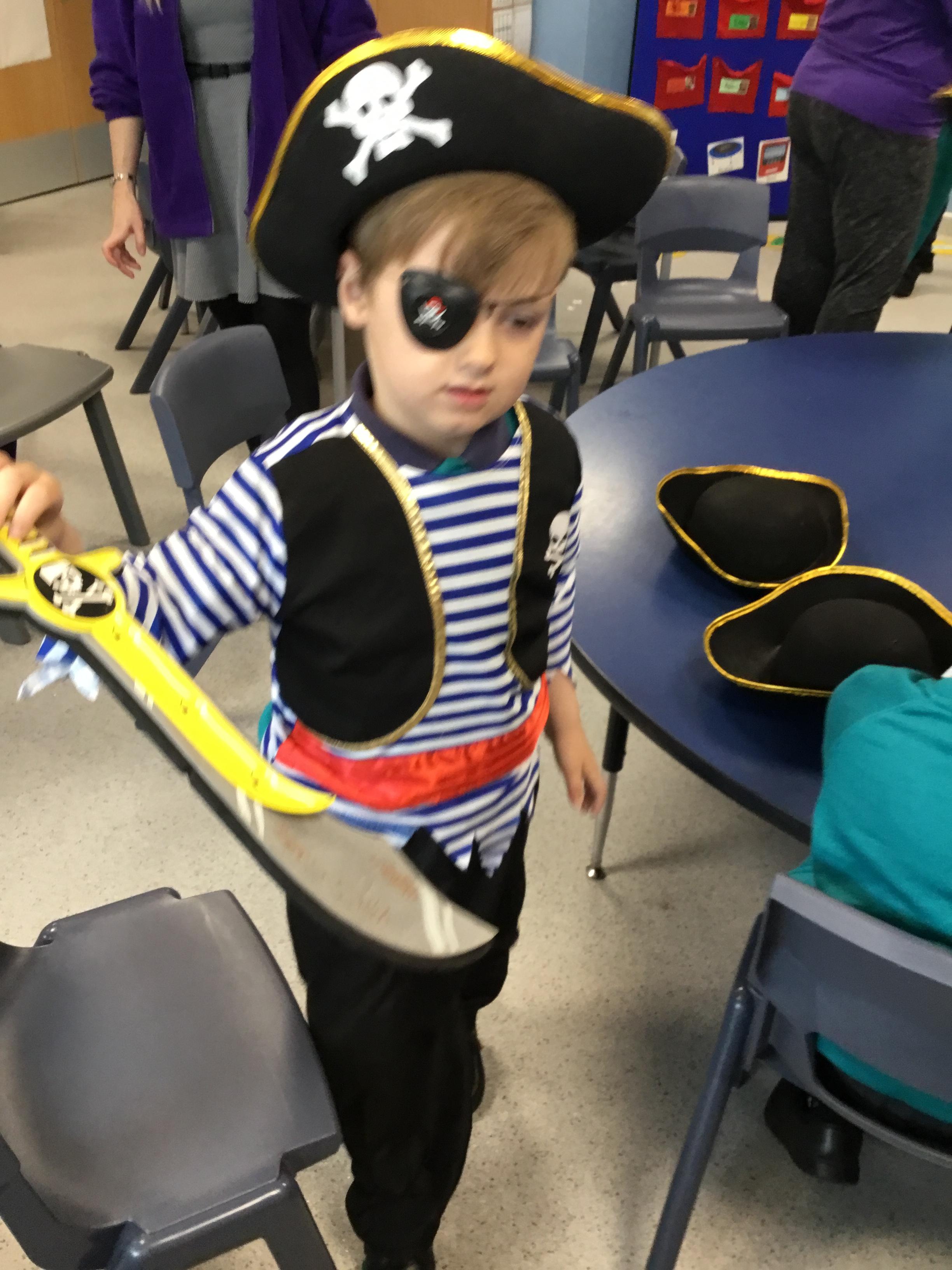 During topic lessons,- Treasure Island Summer 2, we have been dressing up as Pirates and dancing/singing along to one of our favourite songs 'Portside Pirates'.