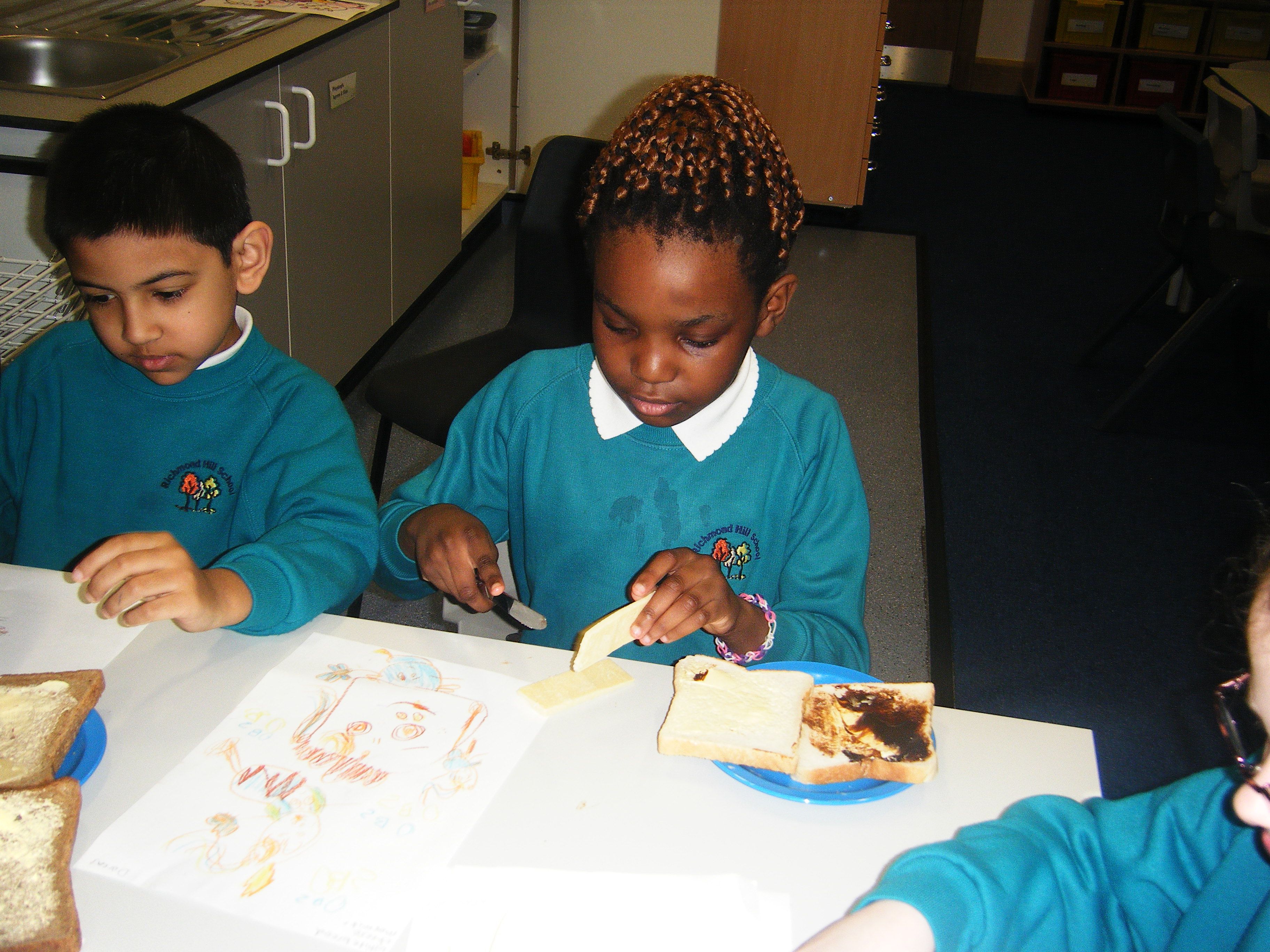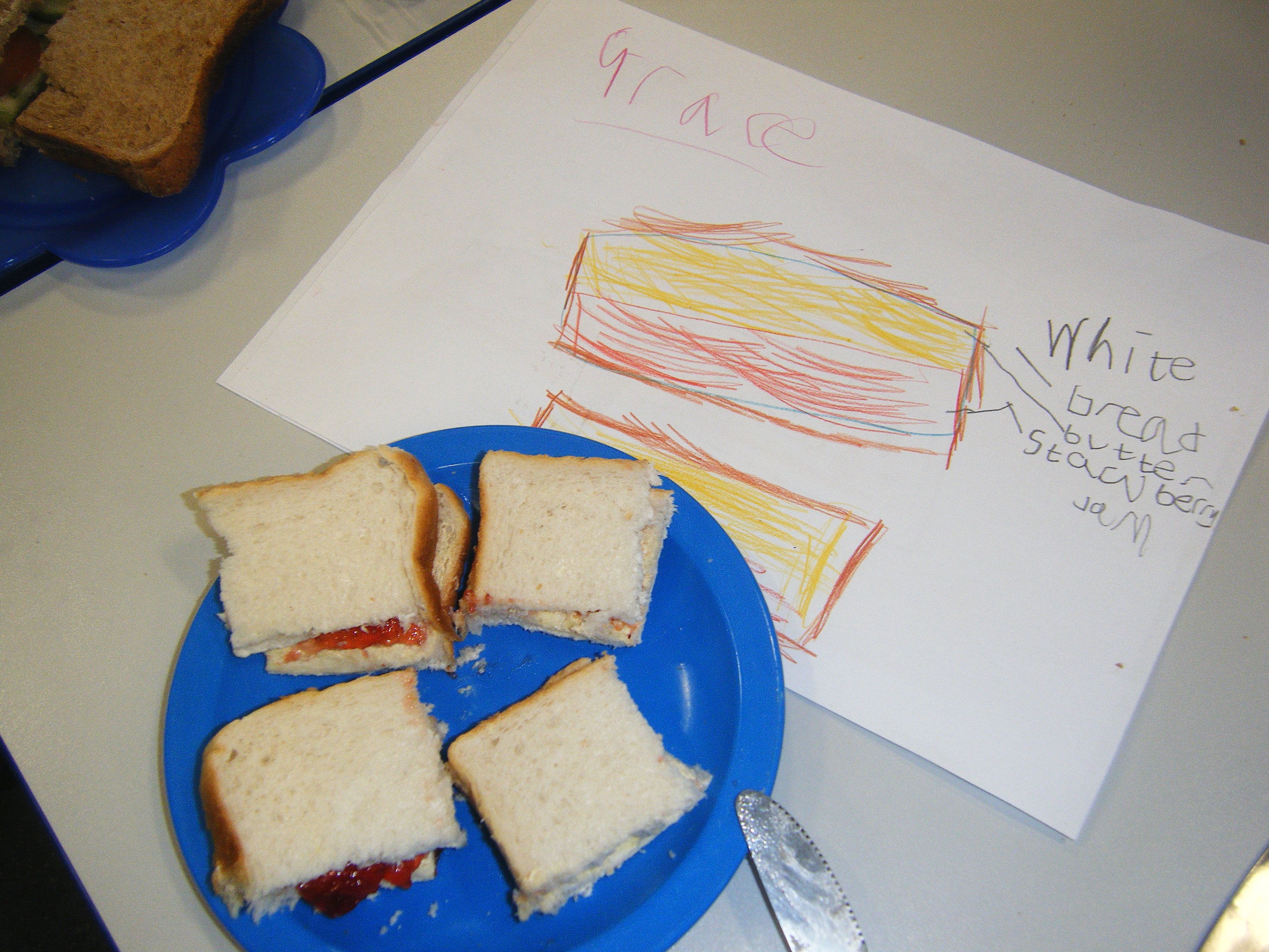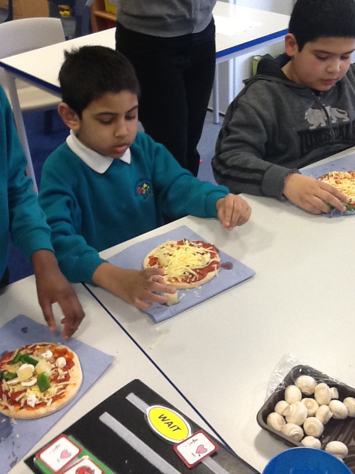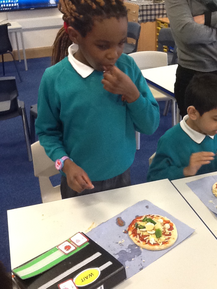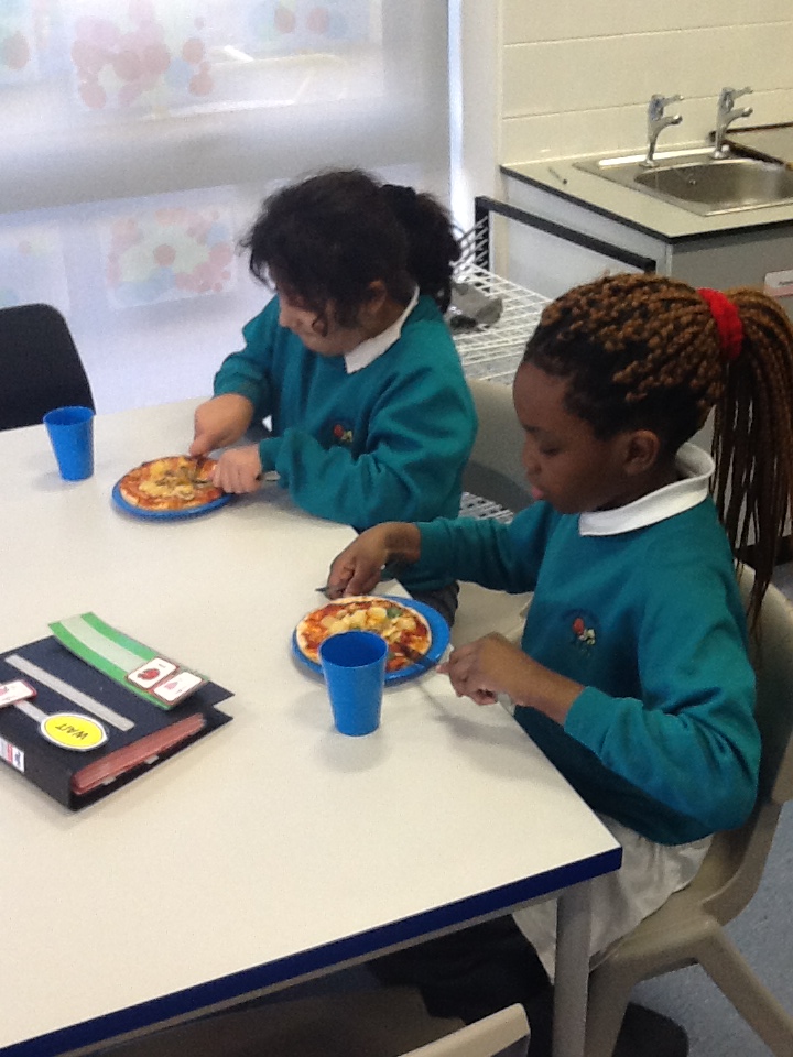 We have also designed, made and eaten sandwiches and pizzas in class and enjoyed using our role play area which has been set up as a 'Vintage Cafe' and Indian restaurant and an Italian restaurant!