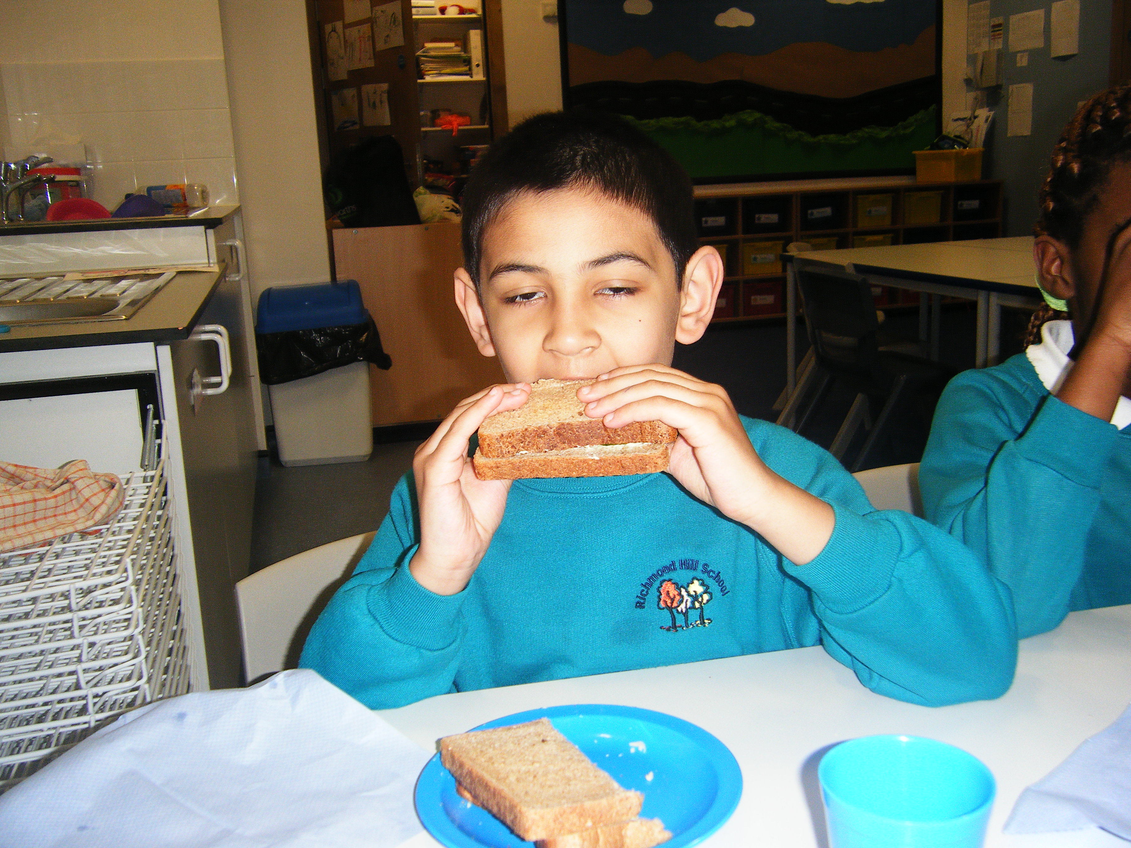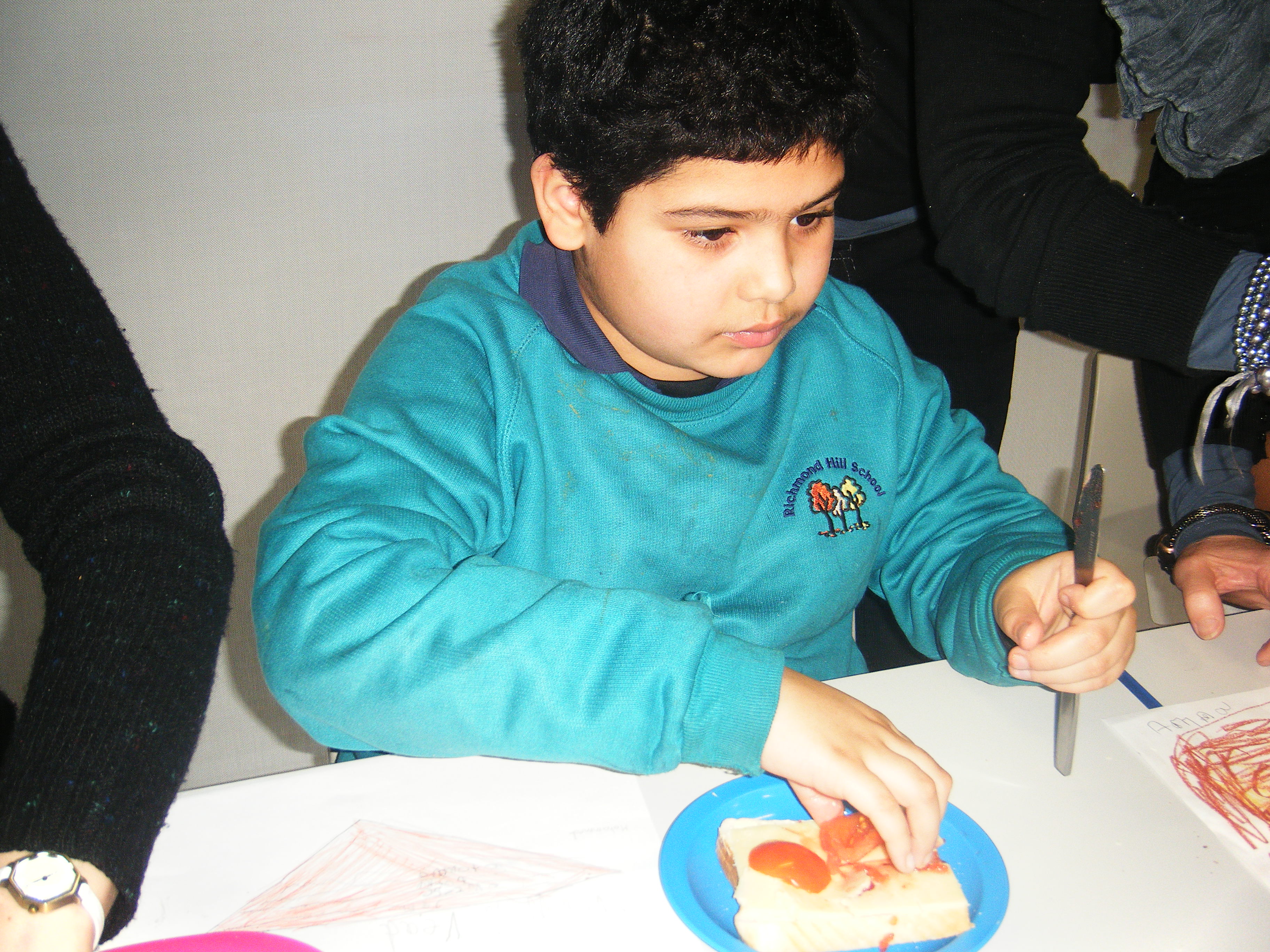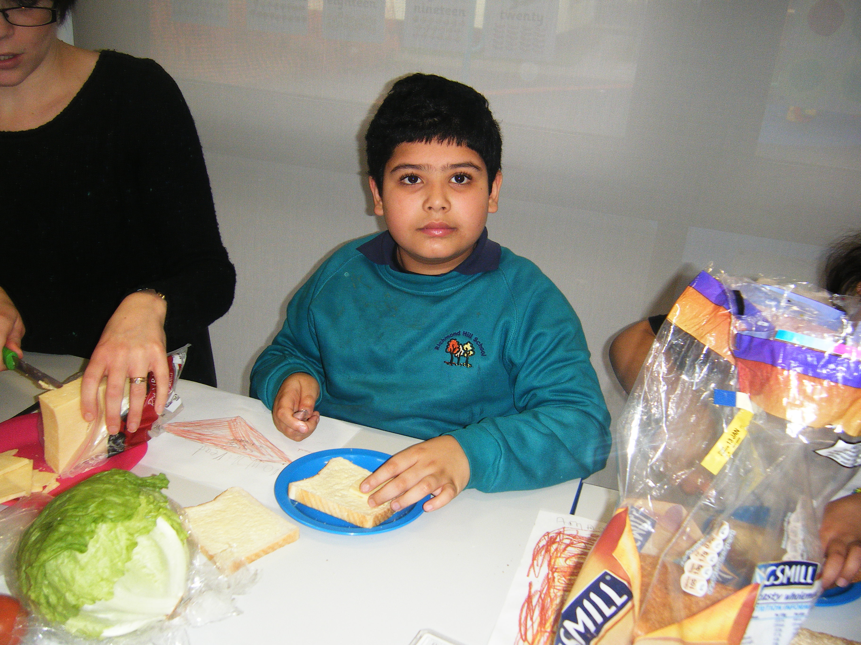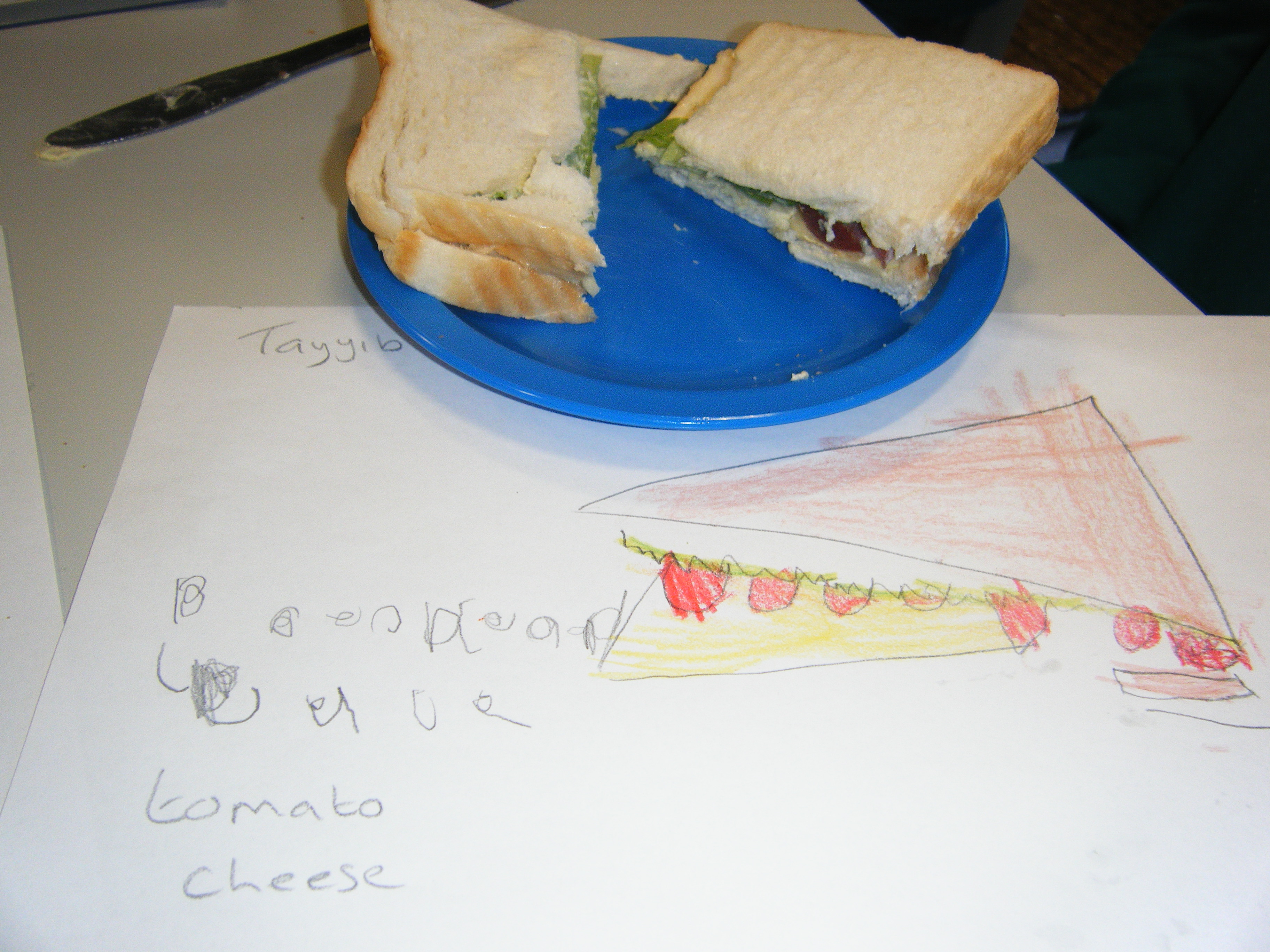 We have also designed, made and eaten sandwiches and pizzas in class and enjoyed using our role play area which has been set up as a 'Vintage Cafe' and Indian restaurant and an Italian restaurant!
