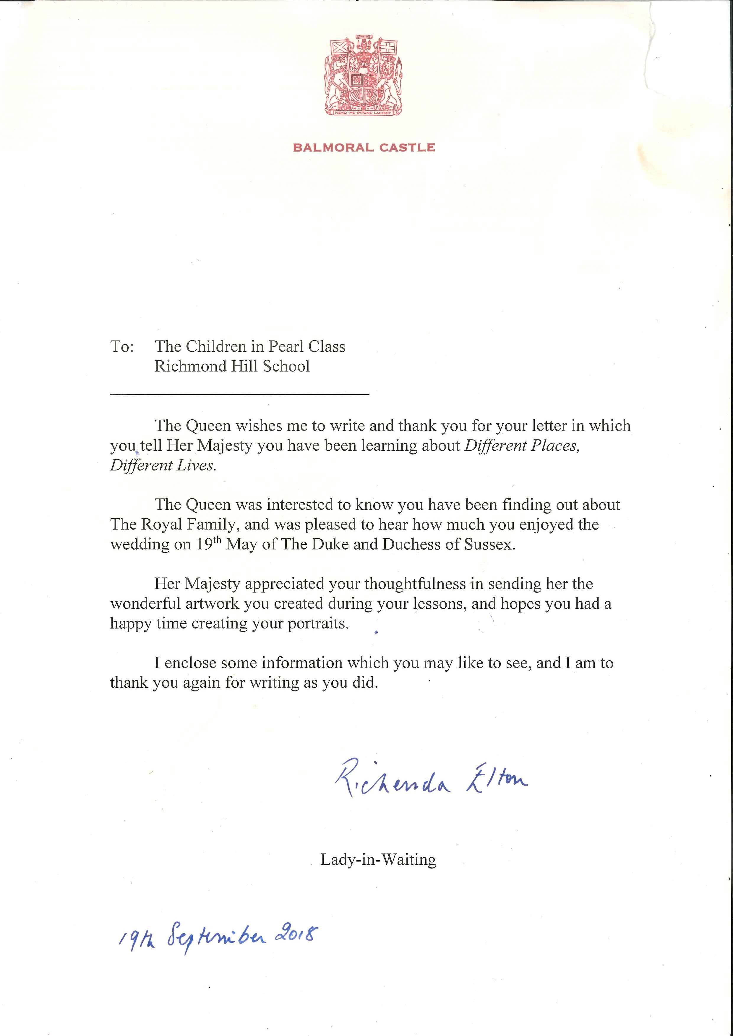 A REAL LETTER FROM HRH QUEEN ELIZABETH II. WOW!