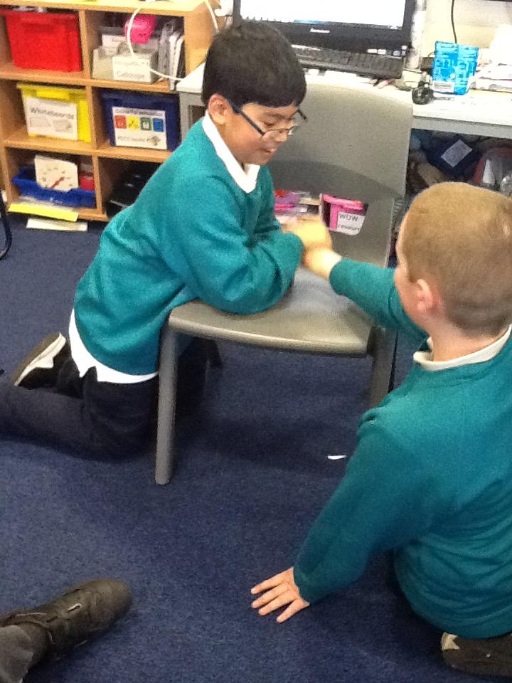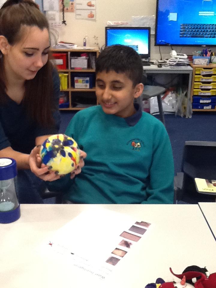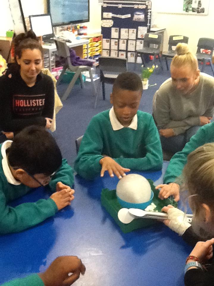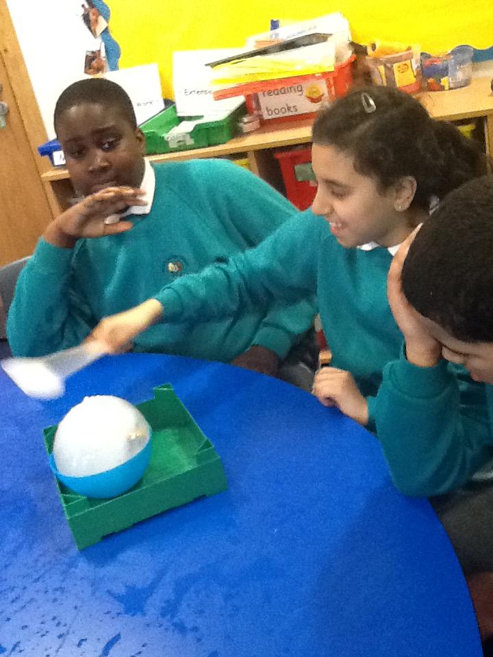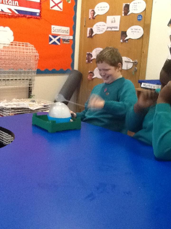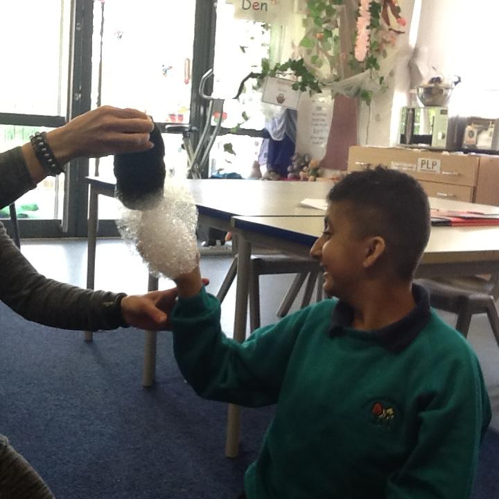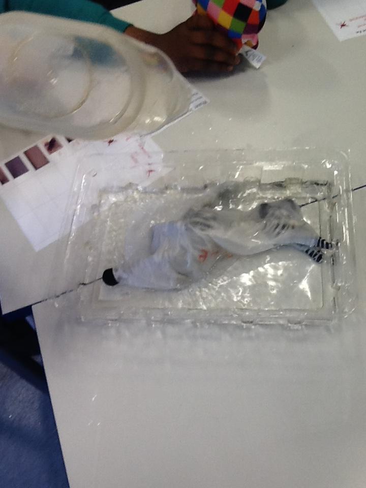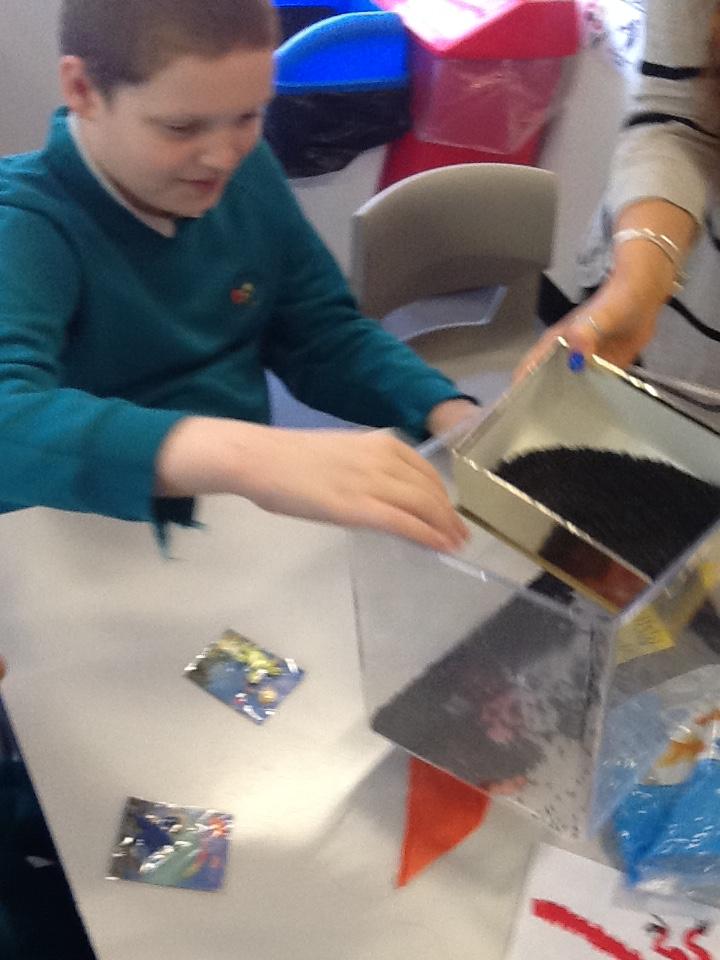 We have been investigating chocolate and what happens to it when put in cold and hot water, under a hot hair-dryer and wrapped inside warm hands! Lots of melted chocolate and sticky hands!