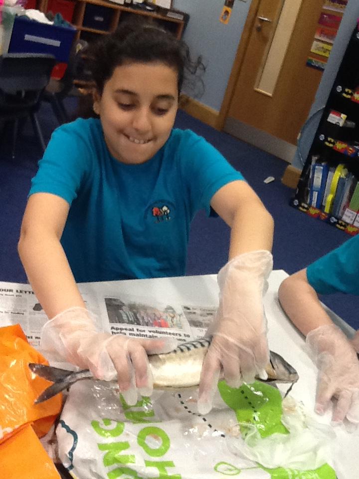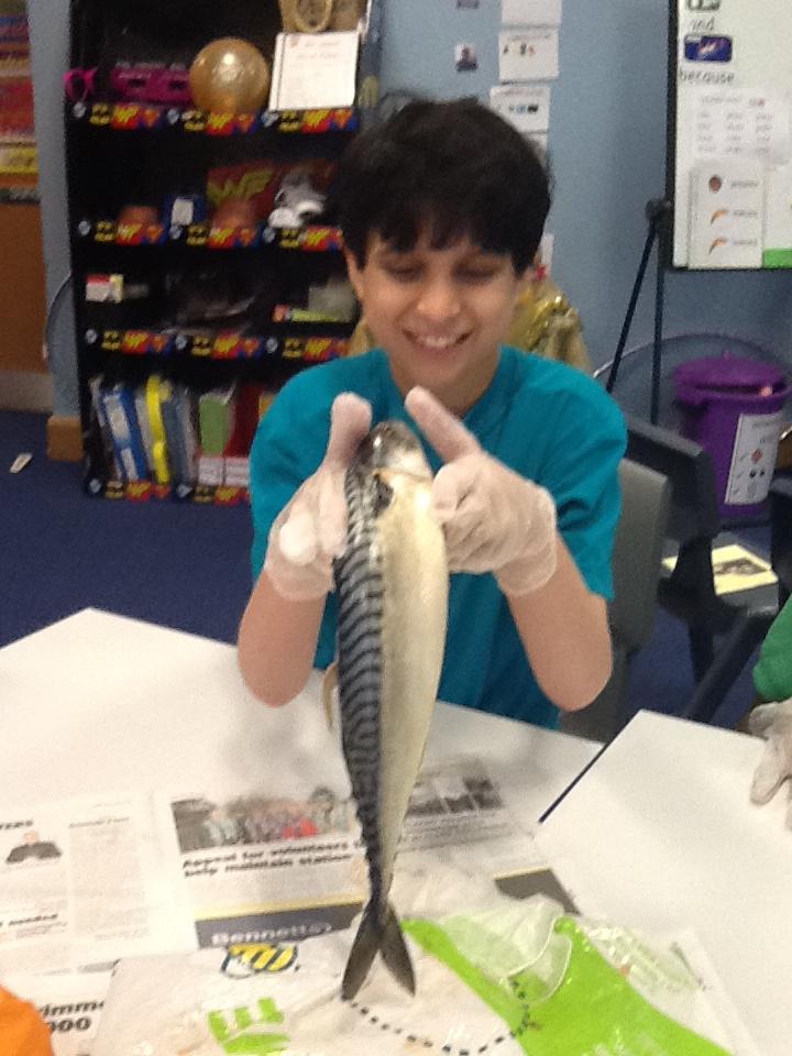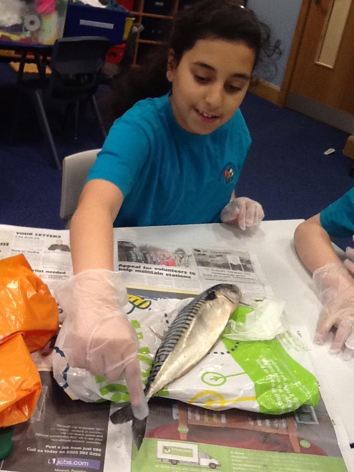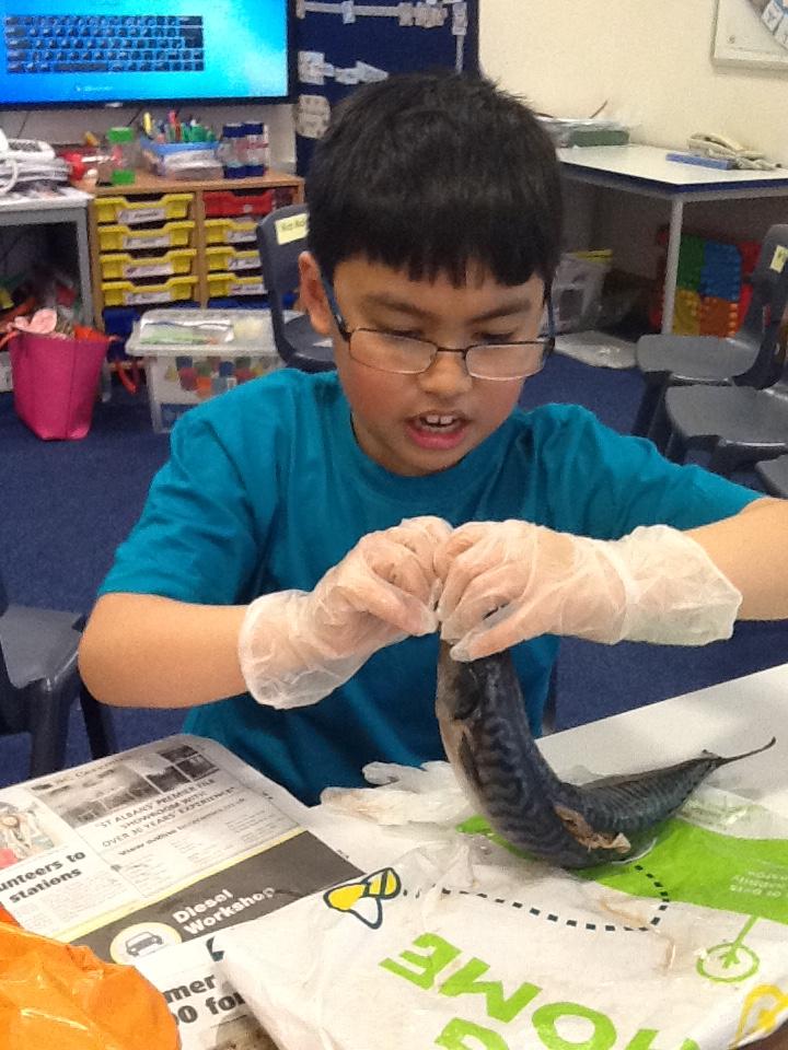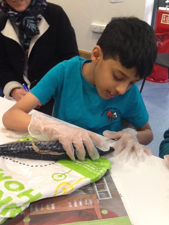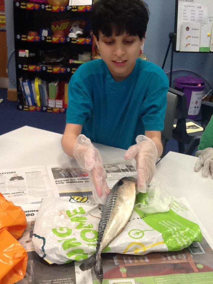 We put on our gloves and investigated the fish which we bought from Sainsbury's on our trip.