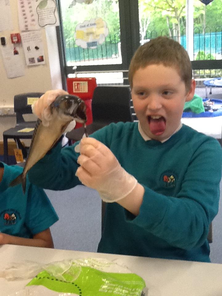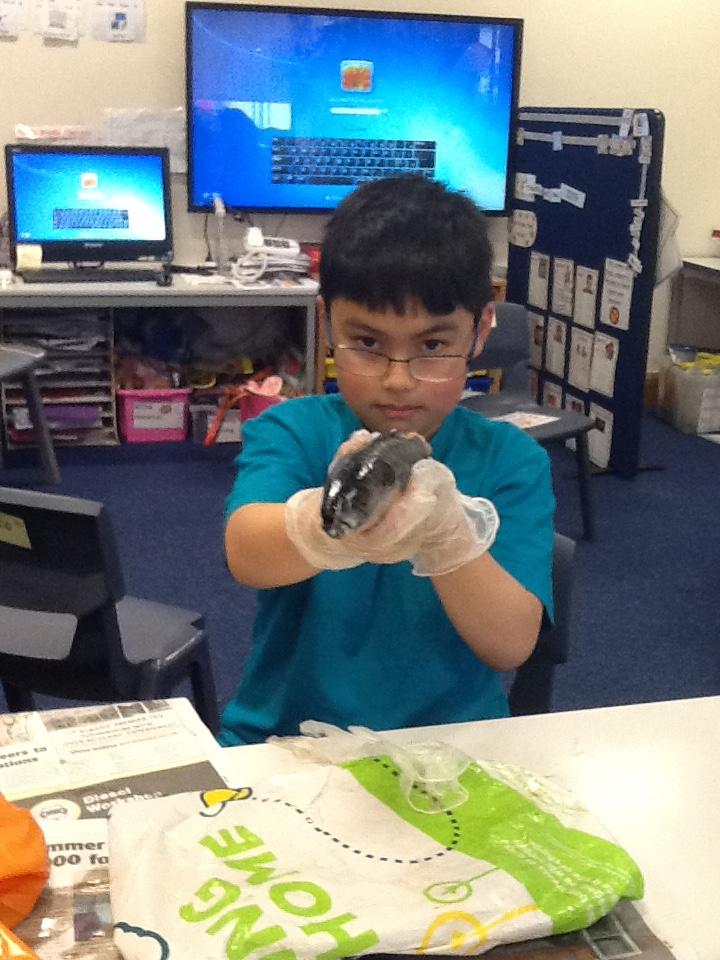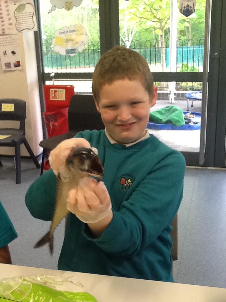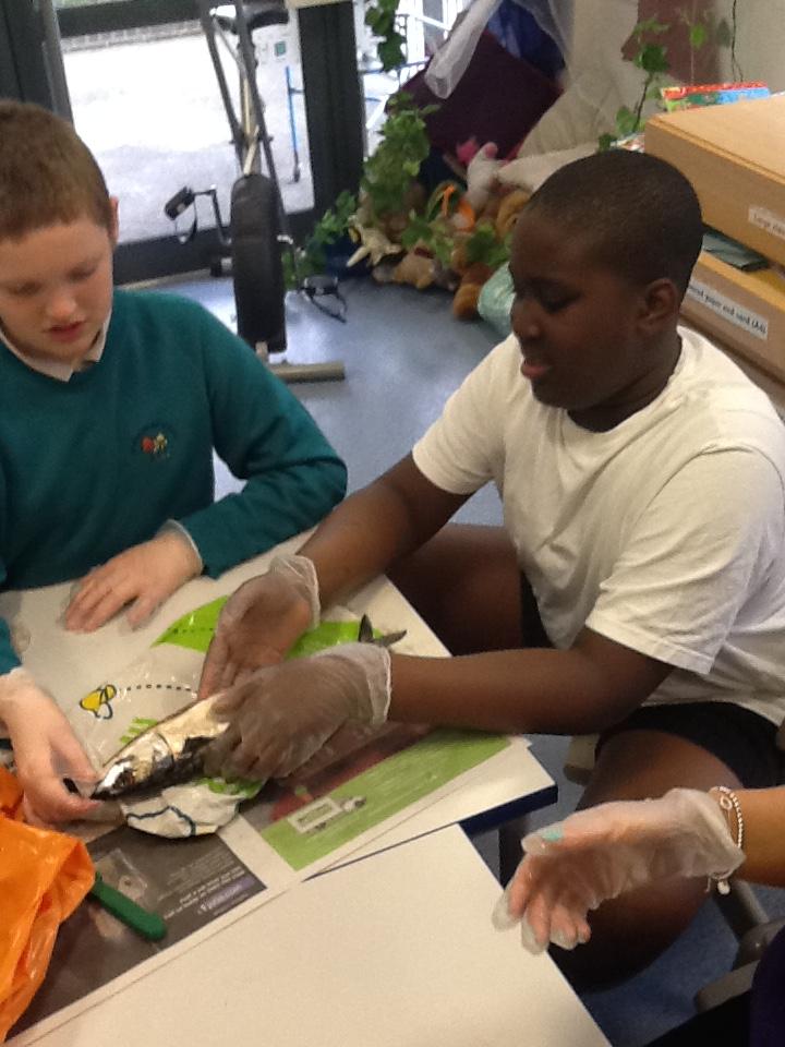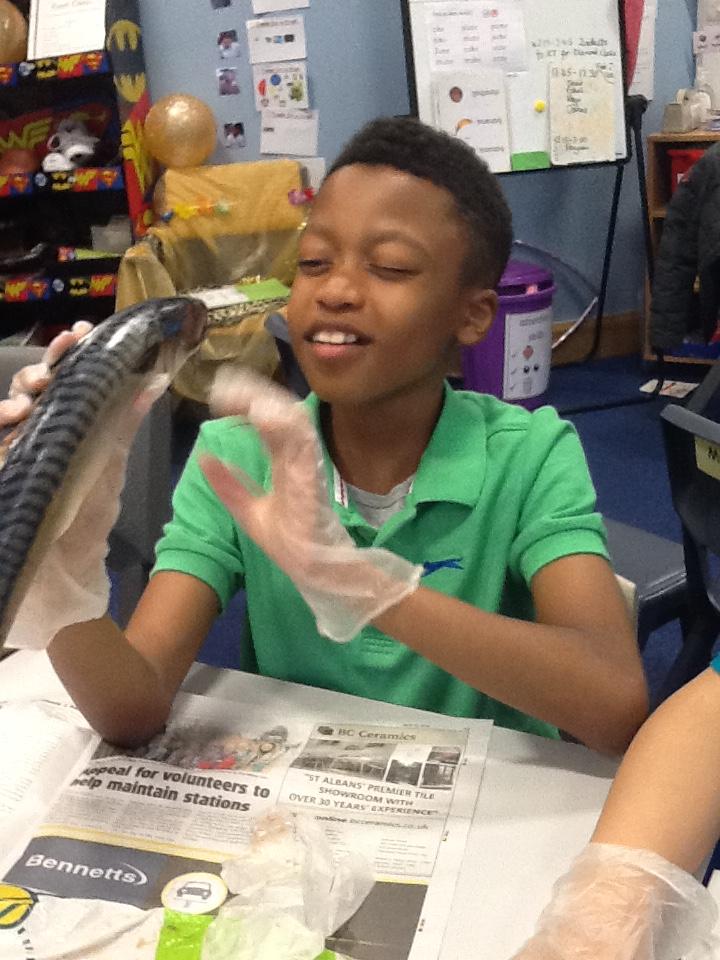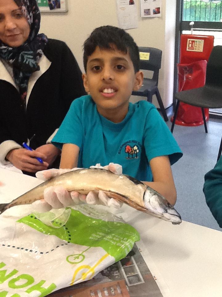 We put on our gloves and investigated the fish which we bought from Sainsbury's on our trip.