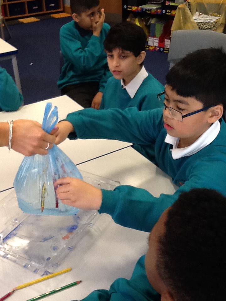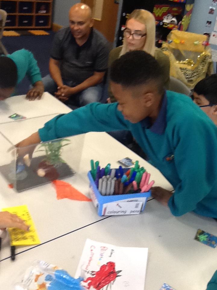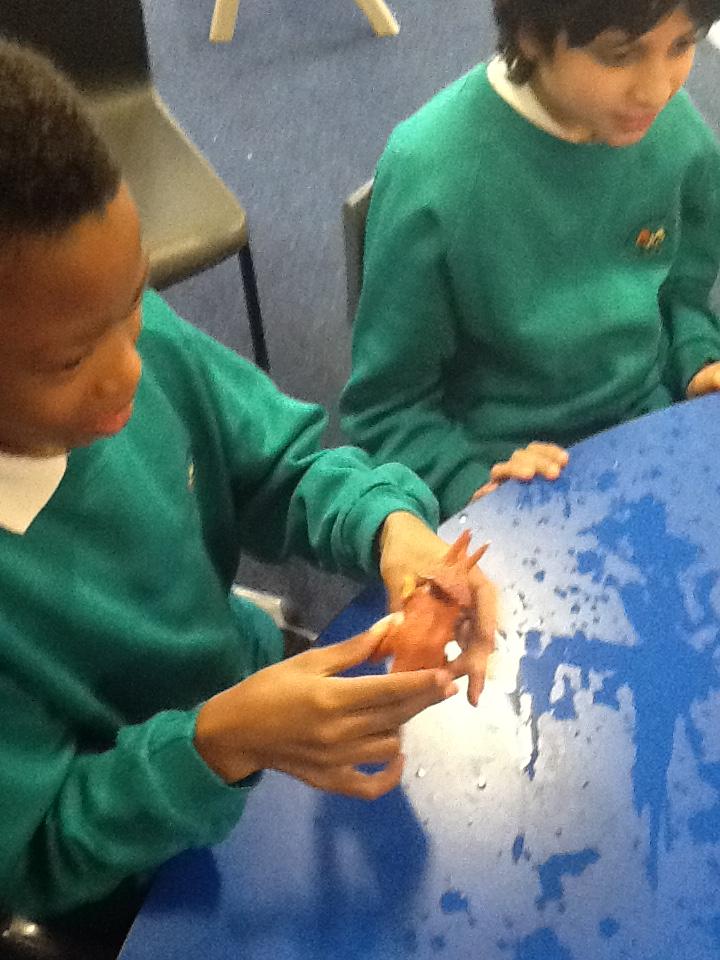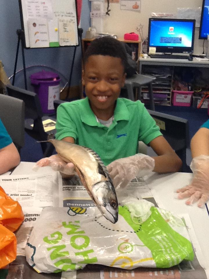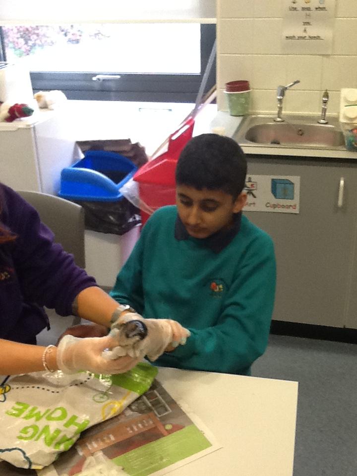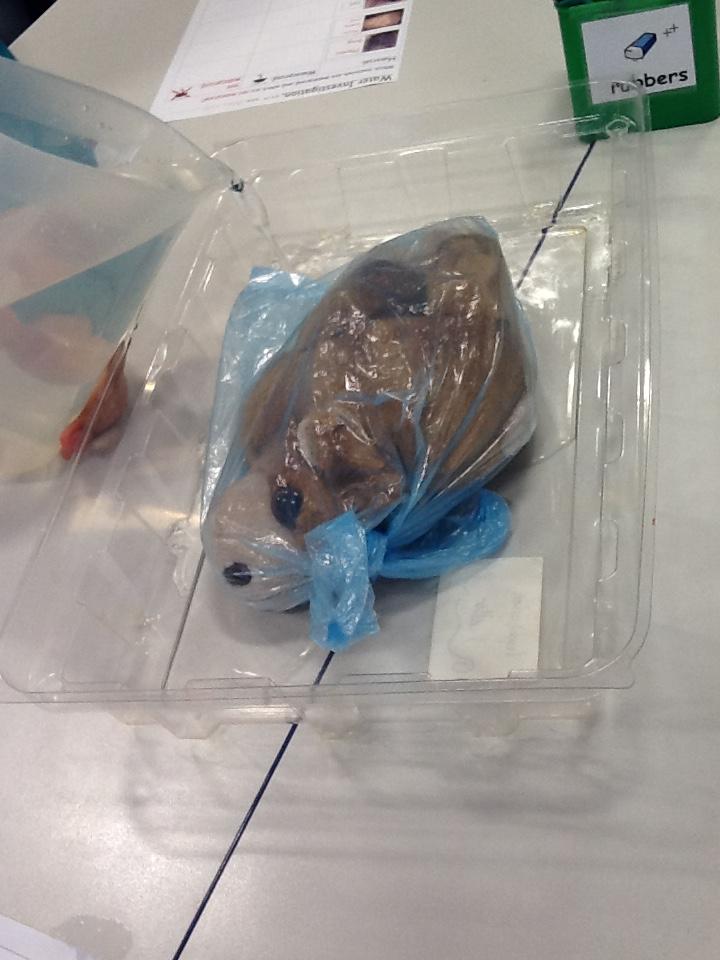 We put on our gloves and investigated the fish which we bought from Sainsbury's on our trip.