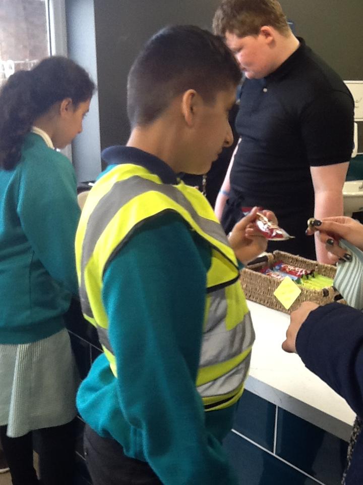 Pearl class have been busy getting ready for the opening of their PEARL-FECT tuck shop this week. The children researched different healthy snacks on the Asda website, compared the best prices and made a list. Pearl class then visited Asda and bought everything ready for the tuck shop. They took their own plastic carrier bags with them to save on money and to save plastic.
