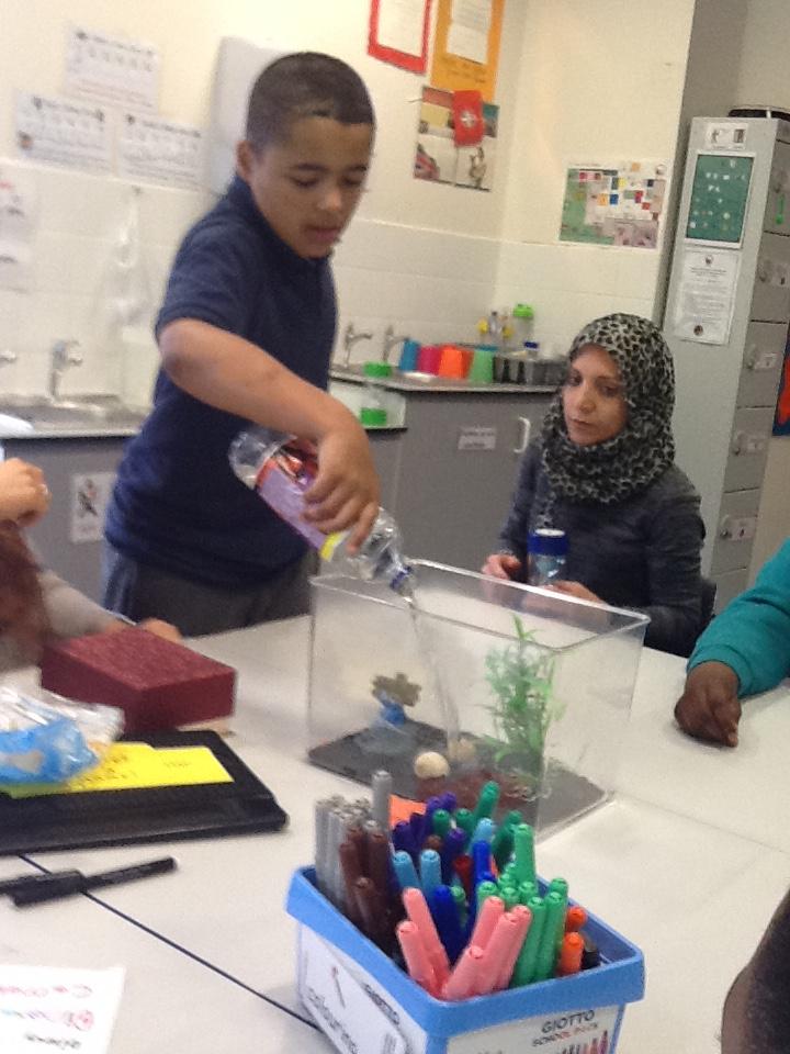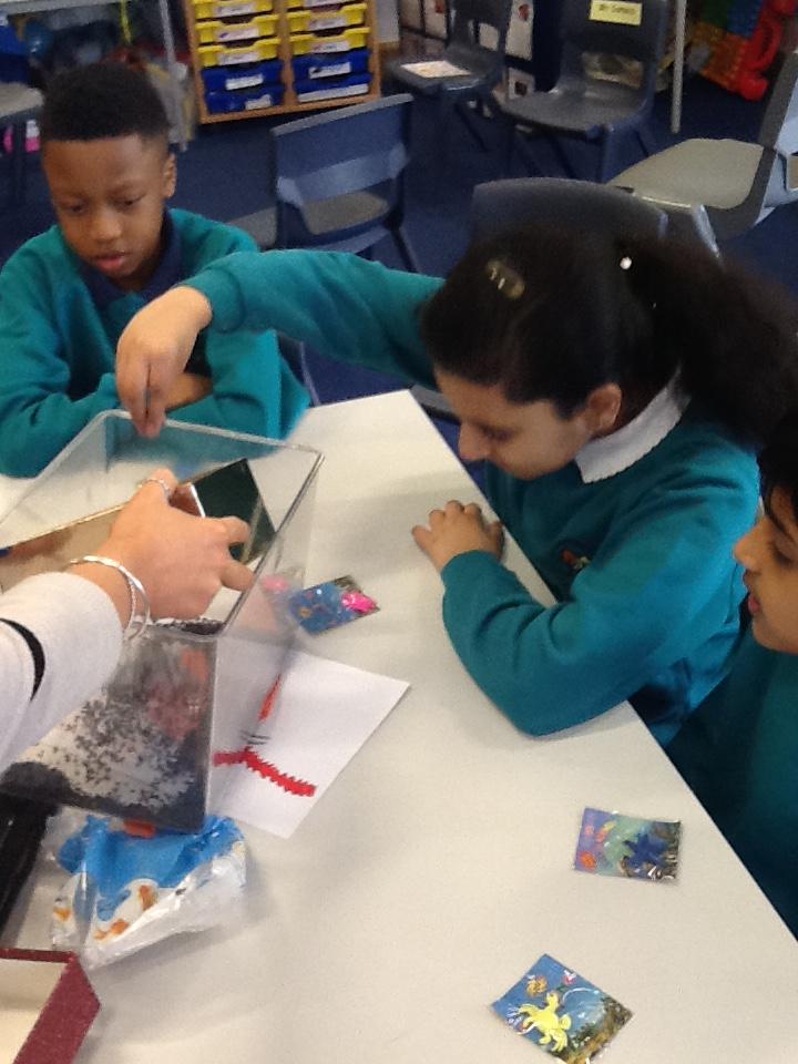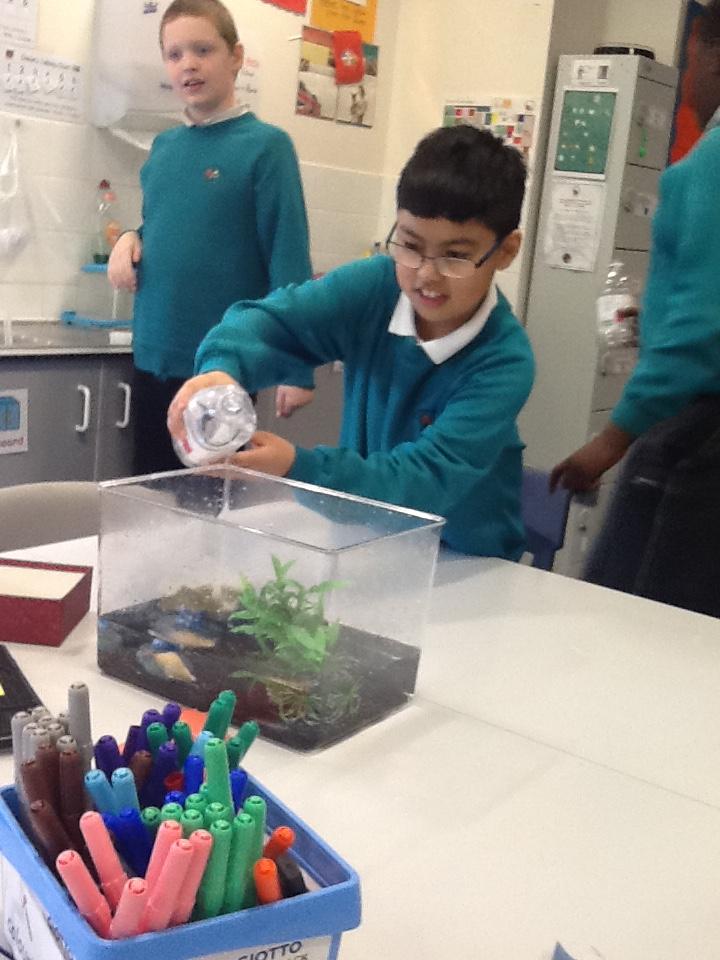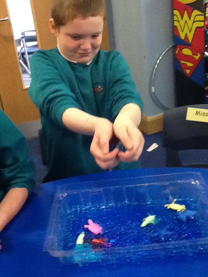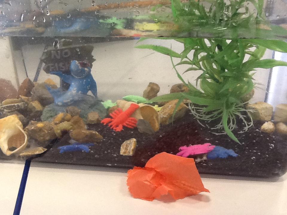 We have had an awesome start to our topic of 'Water, Water Everywhere'. The children followed clues to find their surprise - a fish tank! Each child then received their own sea creature - they gave them names and described them. Together the children added gravel, bushes, pebbles and water to the fish tank before putting their own sea creature in. Everyday they will watch their creature grow, will feed them and check the temperature of the water. They have also been sorting animals which live on land, sea and both.