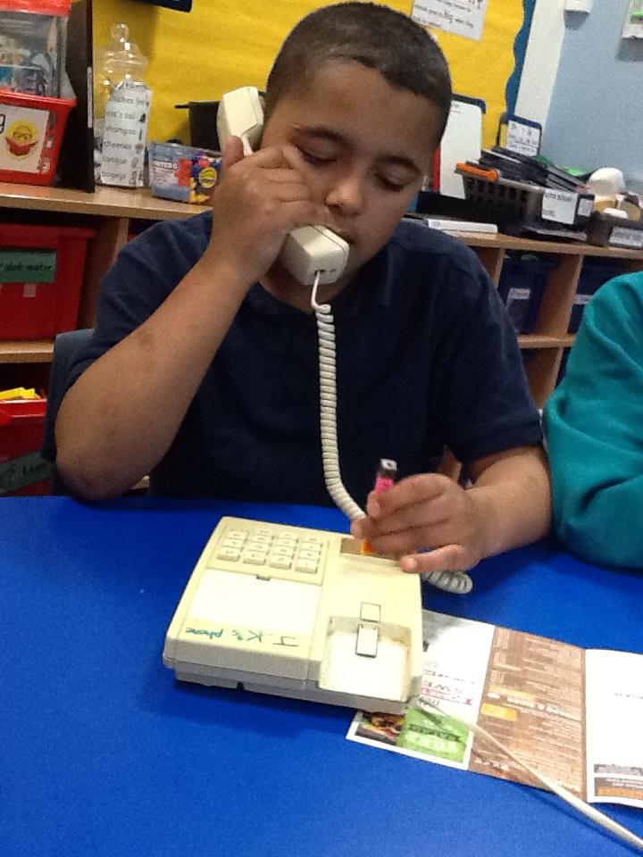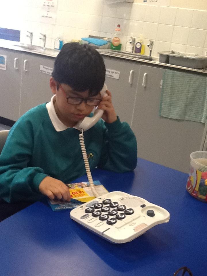 Pearl class do amazing speaking and listening sessions. Using the telephones they make quality phone calls to different people e.g. doctor, dentist, vet, painter and decorator, taxi service, food takeaways.