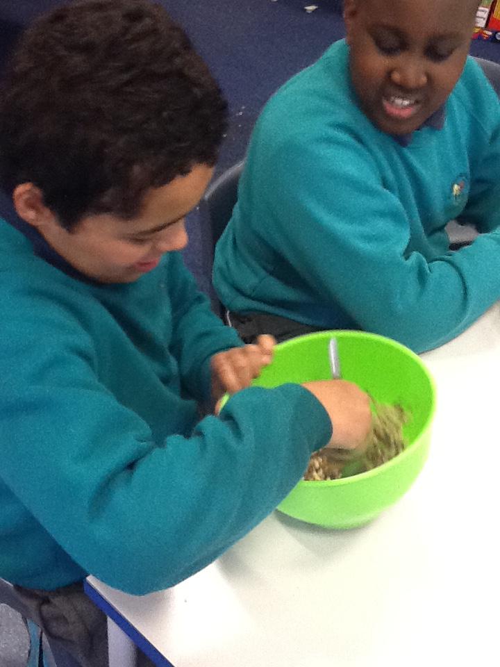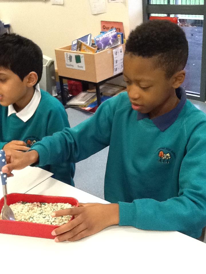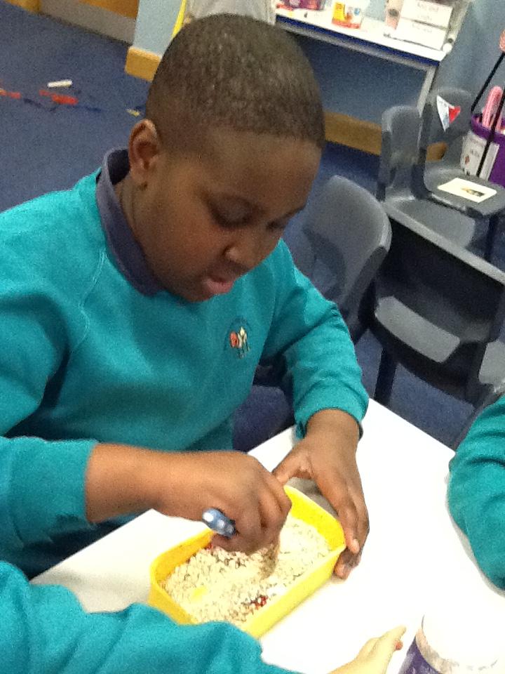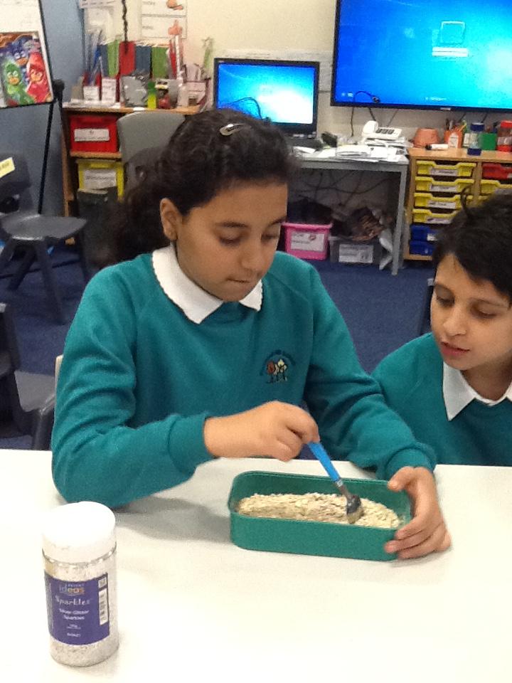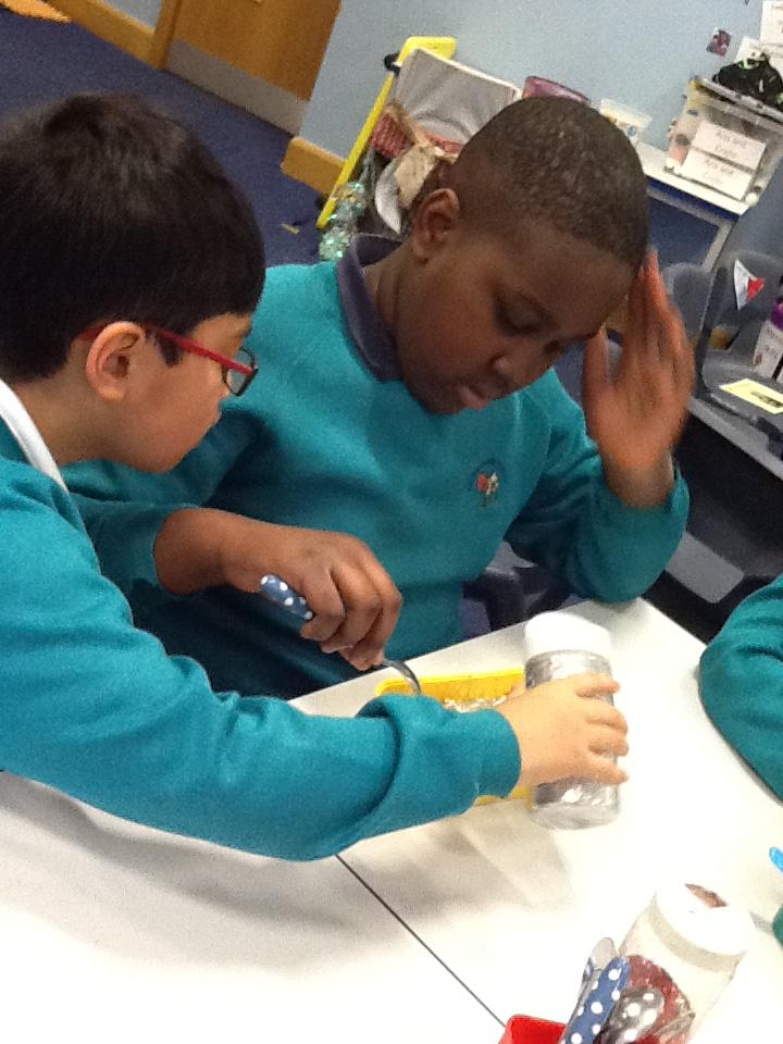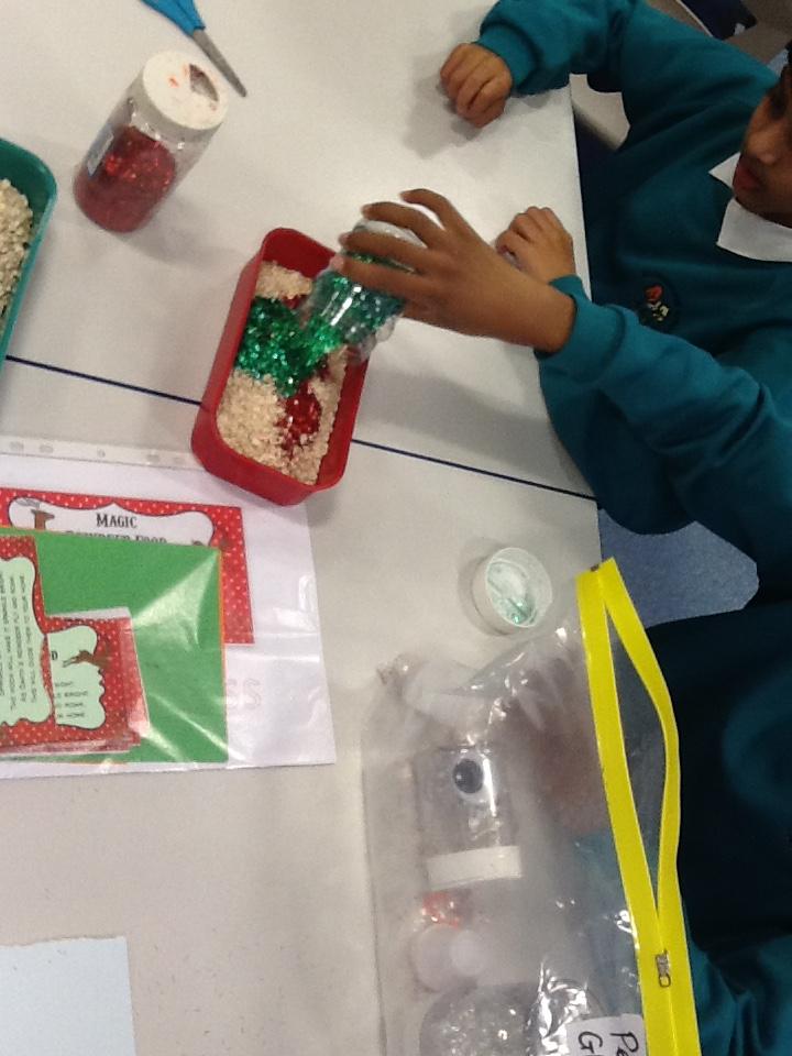 We worked in pairs with brilliant teamwork to make 'magic reindeer food'.