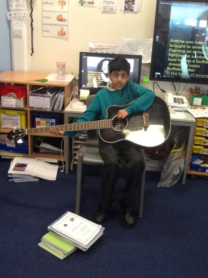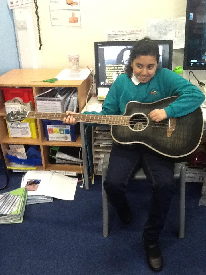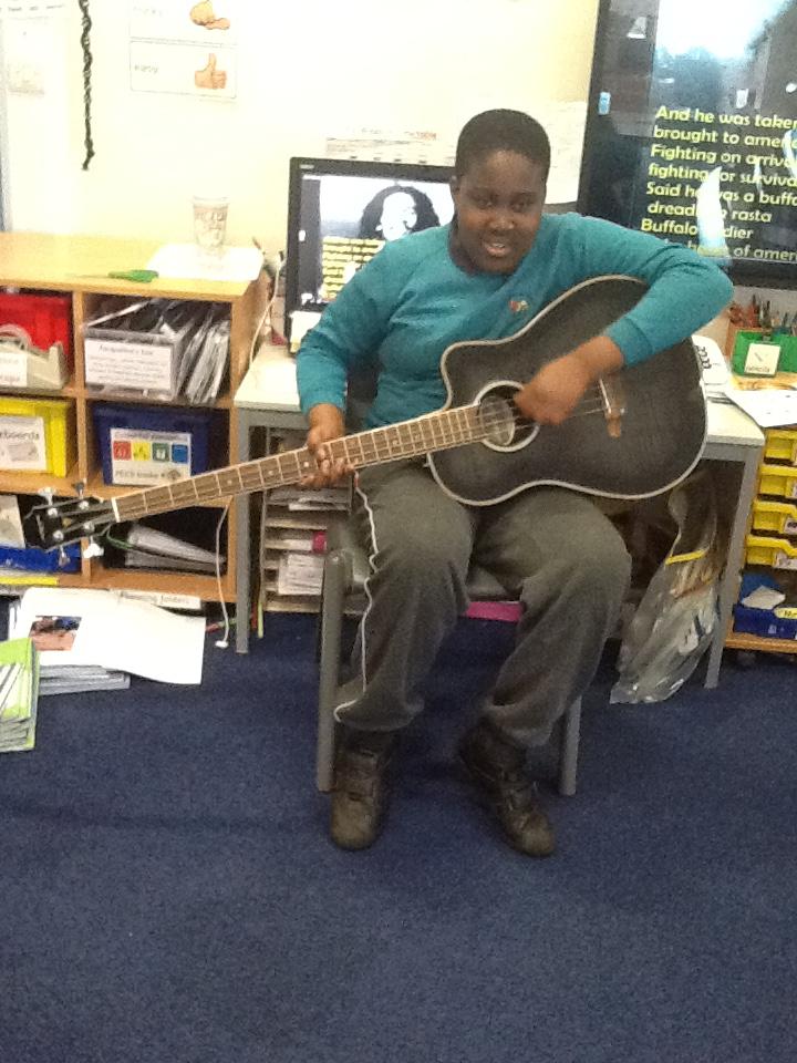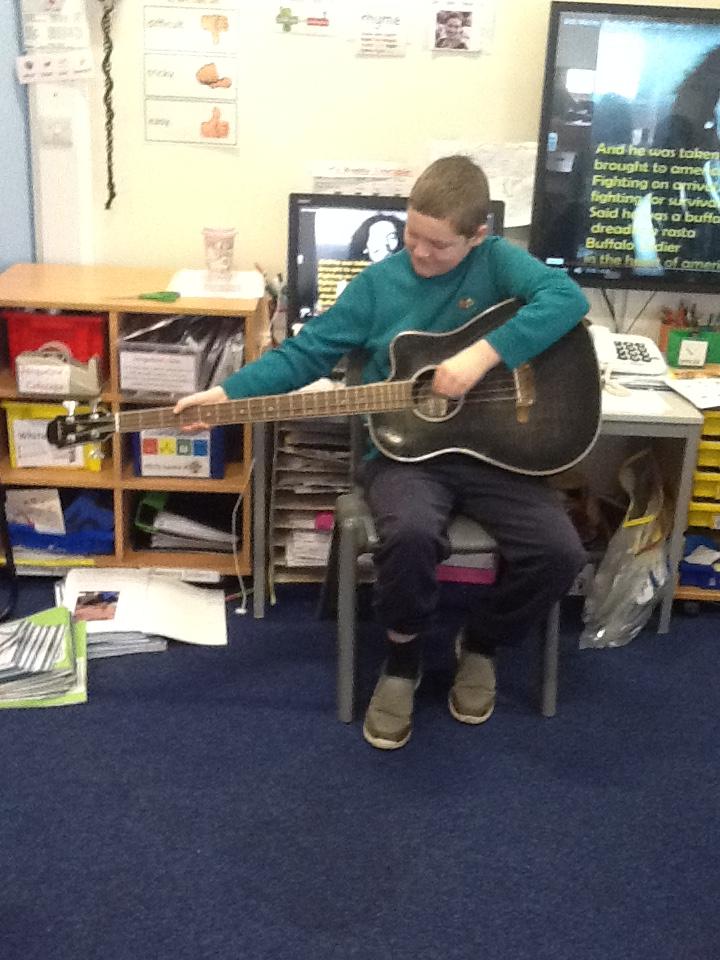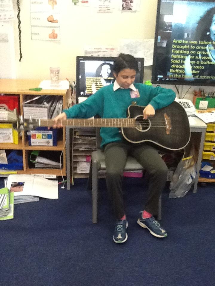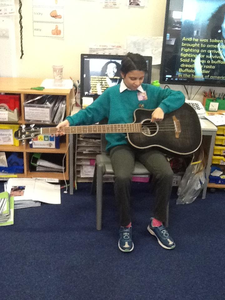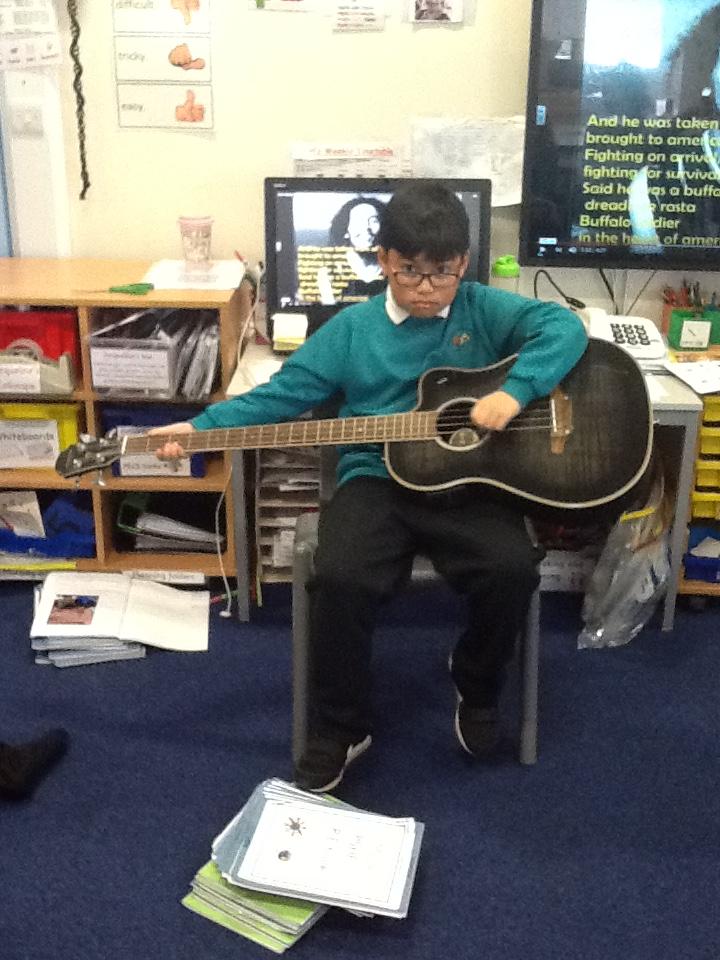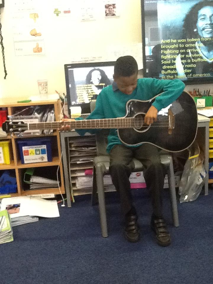 Pearl Class have been learning about Bob Marley and 'jammin' (making music) on Sharon's guitar!