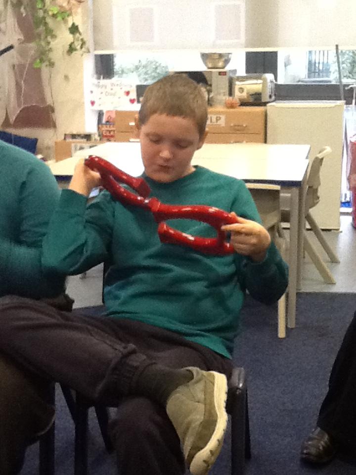 We used our senses to describe the fish. Everyone held the fish and looked closely at its scales, eyeball, mouth, teeth, tail, fin, body and gills. We even made it 'talk' by moving its mouth...Pearl class LOVED it!