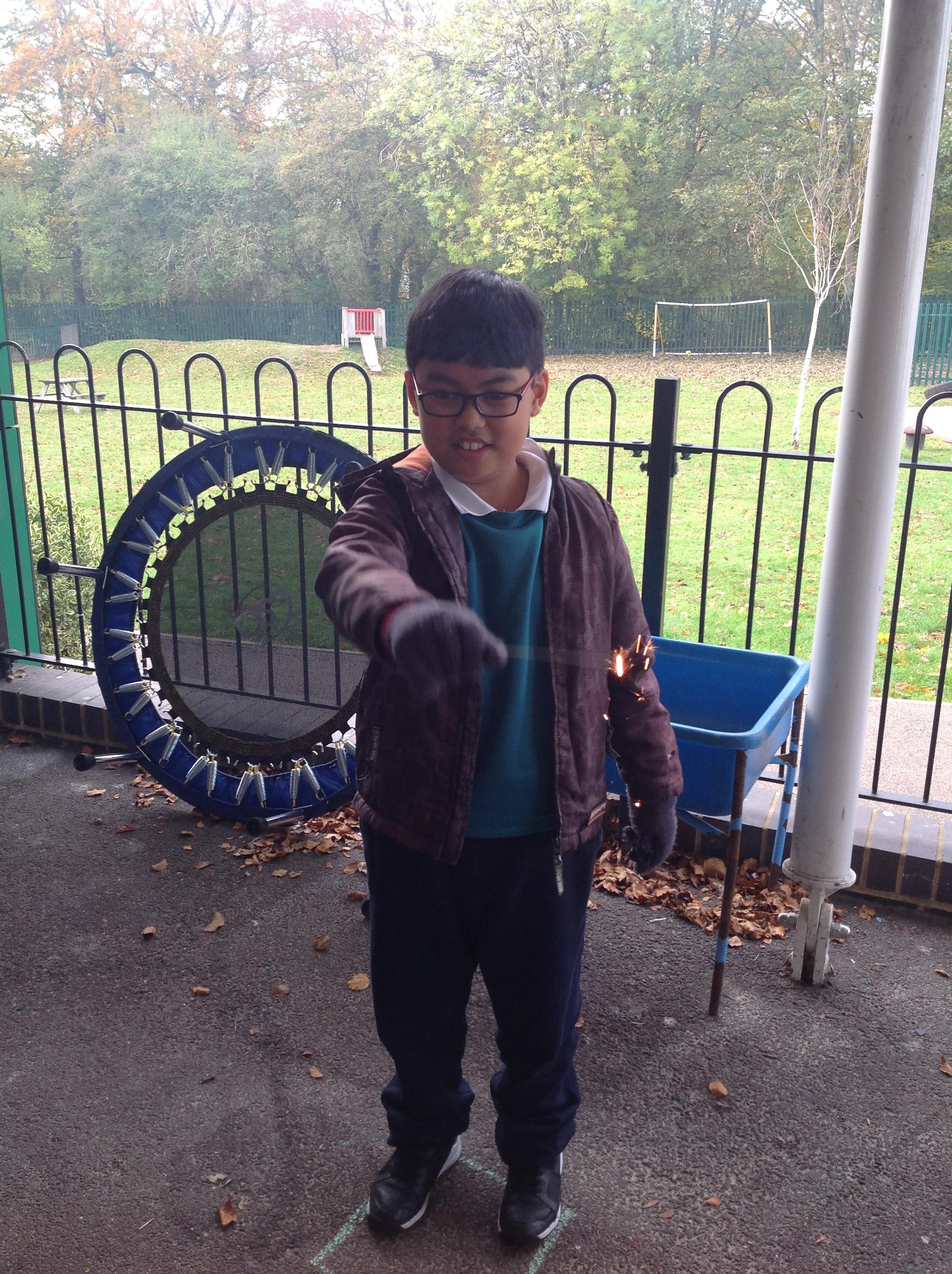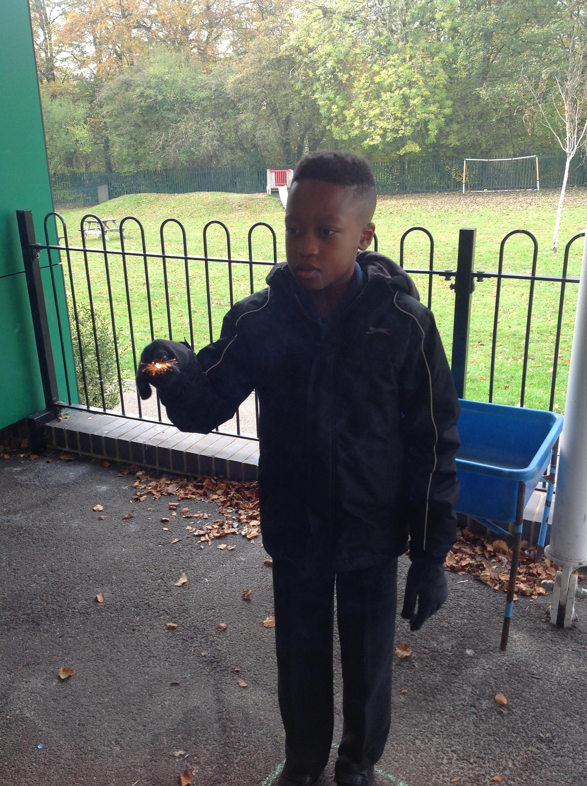 As part of the 5th November celebrations and when learning about light sources...Pearl class had a SPECTACULAR time using sparklers. We also carved a pumpkin (we each took turns) and used a candle to 'light it up'.