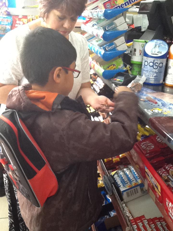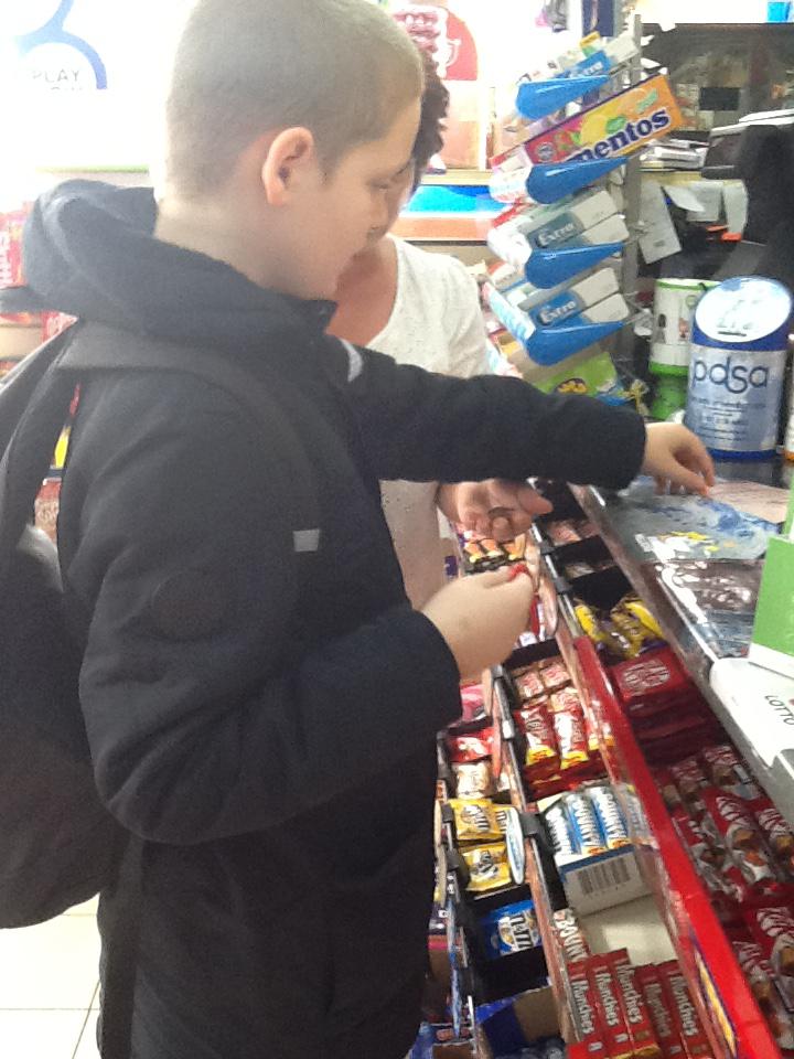 Sometimes we will practice counting out our 1p, 2p, 5p and 10p coins to buy ourself a small weet treat.