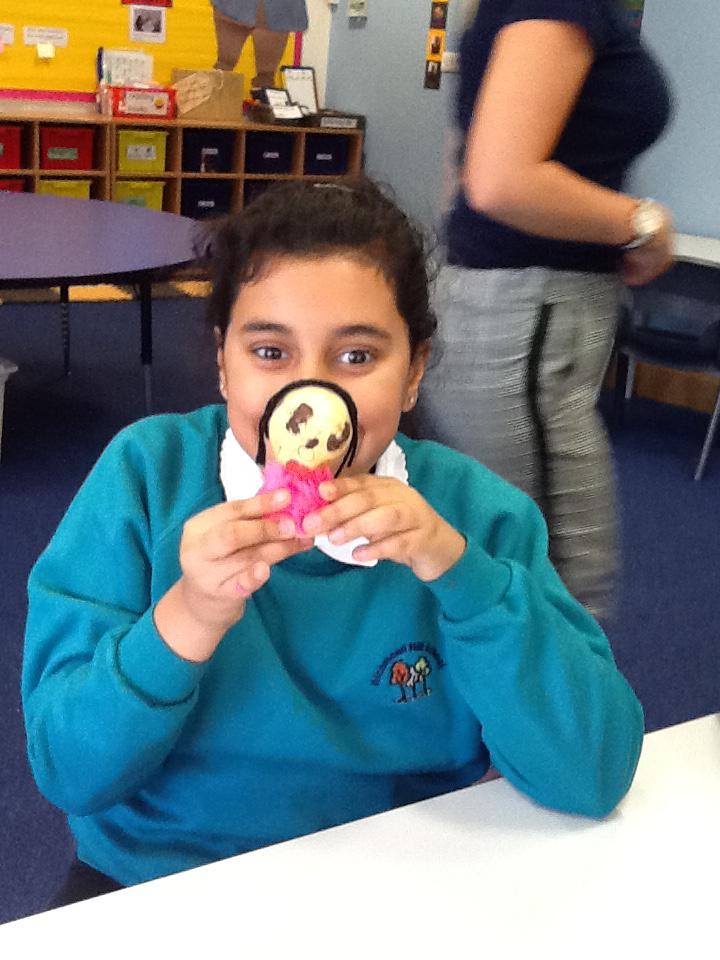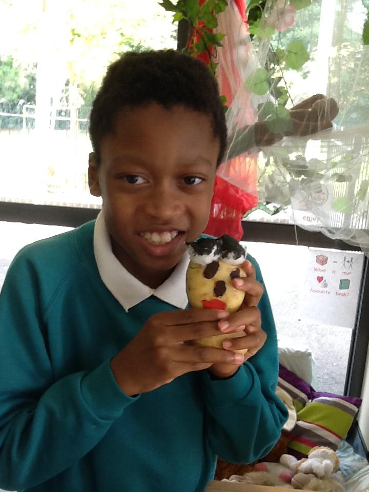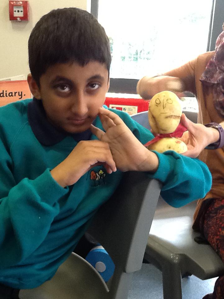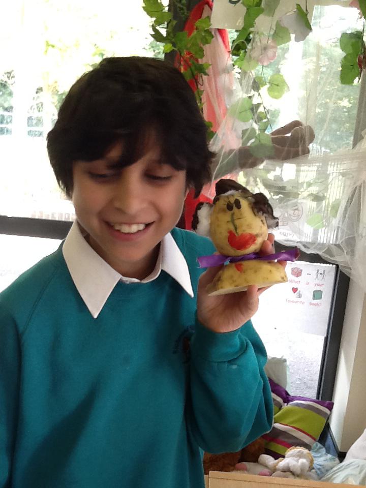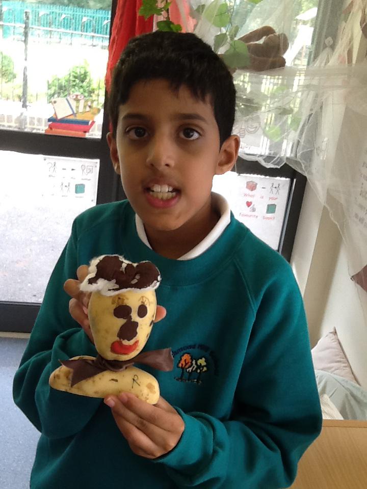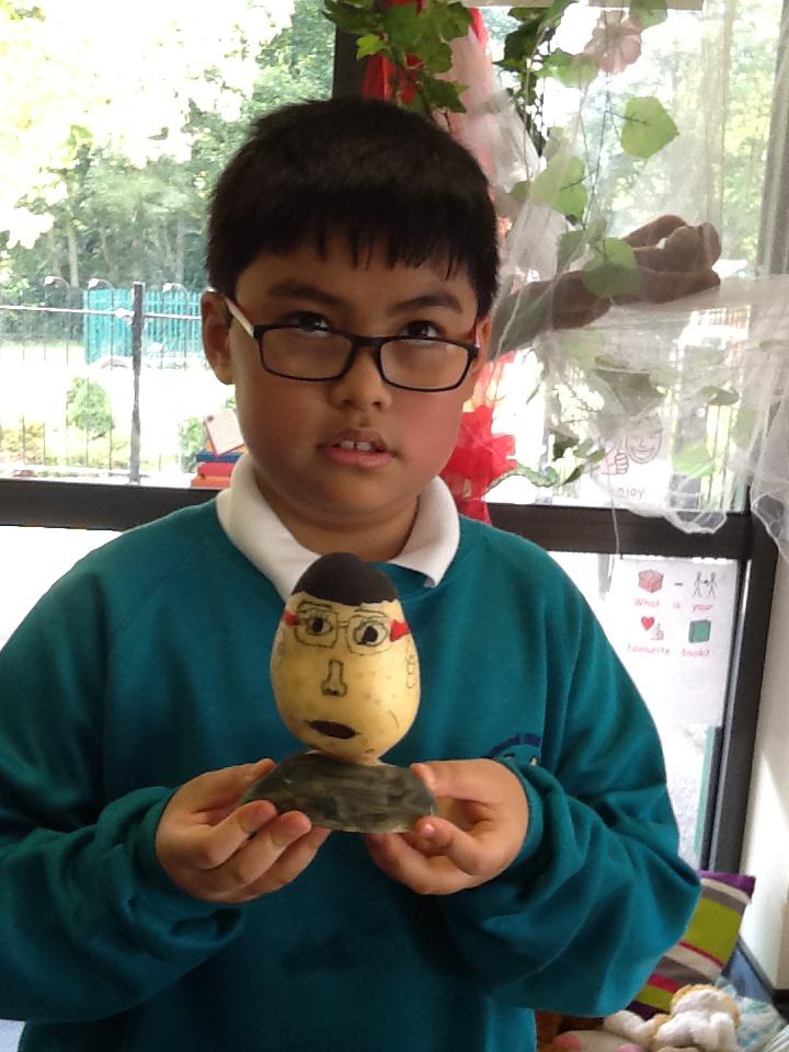 We made ourselves into potato heads! We were discussing the similarities and differences of our faces, like our eye colour, hair colour and skin colour. We then painted potatoes, added hair and also some shoulders to make 'mini models' of ourselves. It was great!