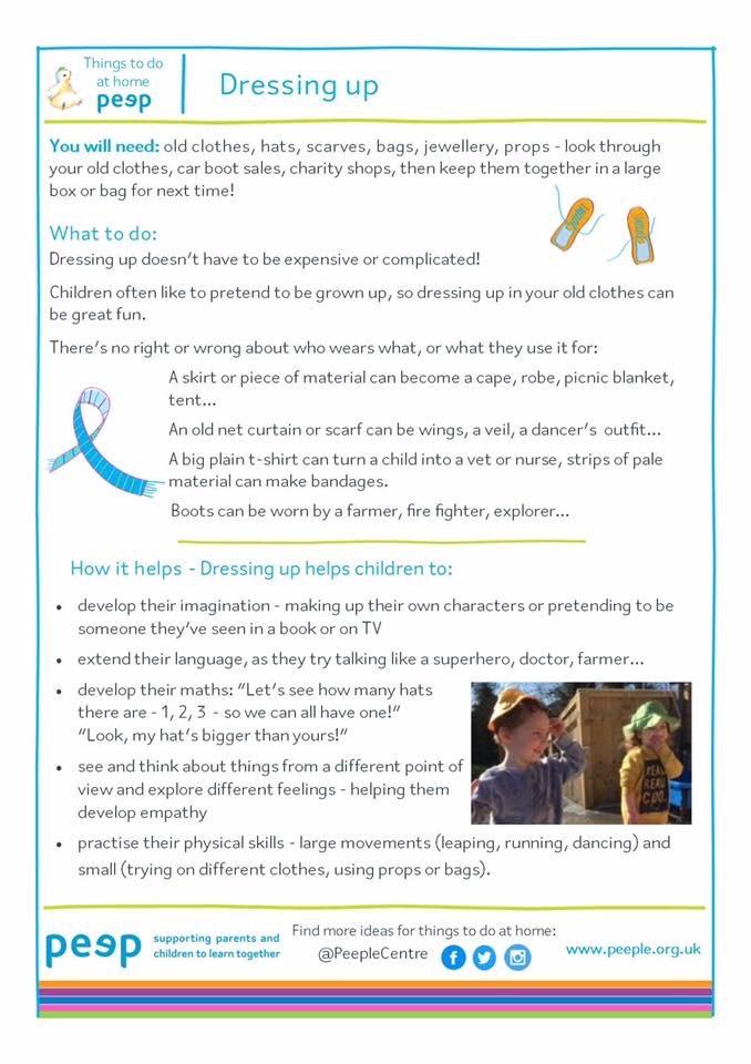 Below are some fantastic learning ideas you can do at home. They cover a range of learning goals from role play to communication and use everyday things from your home.