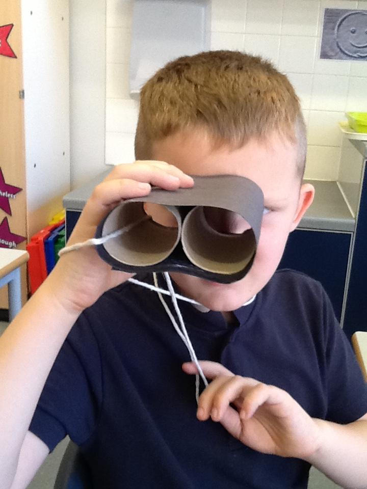 Purple class is made up of 8 boys and 1 girl . Sarah is the teacher, Shirley the TA4 and Josh, Dawn and Liz support in the class. We look forward to sharing with you photos and information about the exciting things we have been doing in our class. This week we introduced our topic for the half term. It is called What a Load of Junk and we made some binoculars and went around the school grounds looking for rubbish to put in the bin.