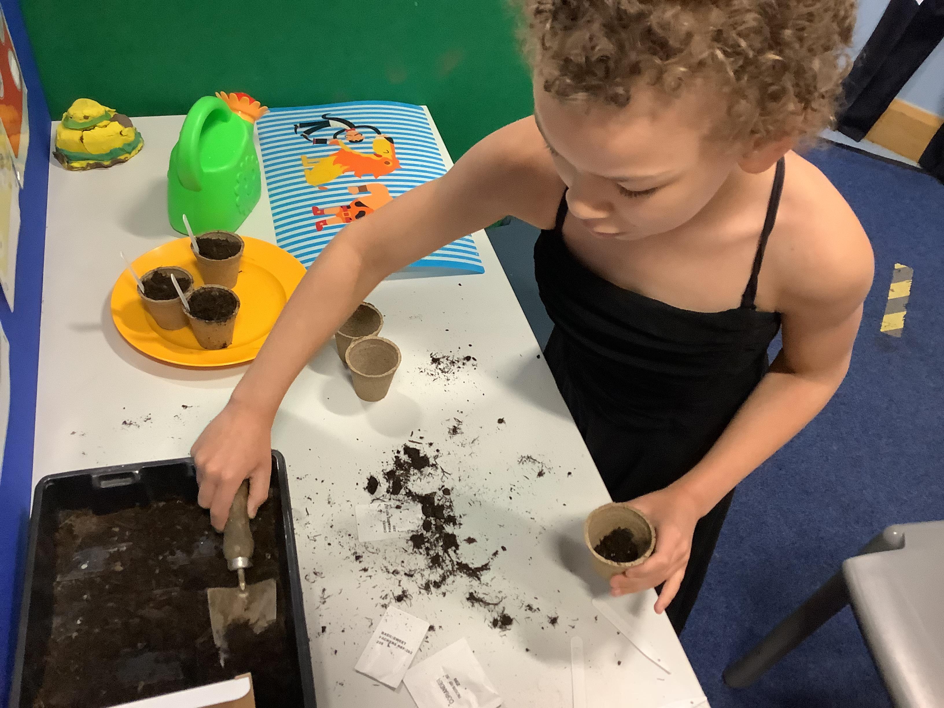 These past couple of weeks we have been doing lots of planting as part of our topic work. The children have planted some flowers in the planters by the office and family room. They have planted some seeds that will hopefully grow into herbs and broad beans! They had great fun making grass heads too! We must remember to water them all!