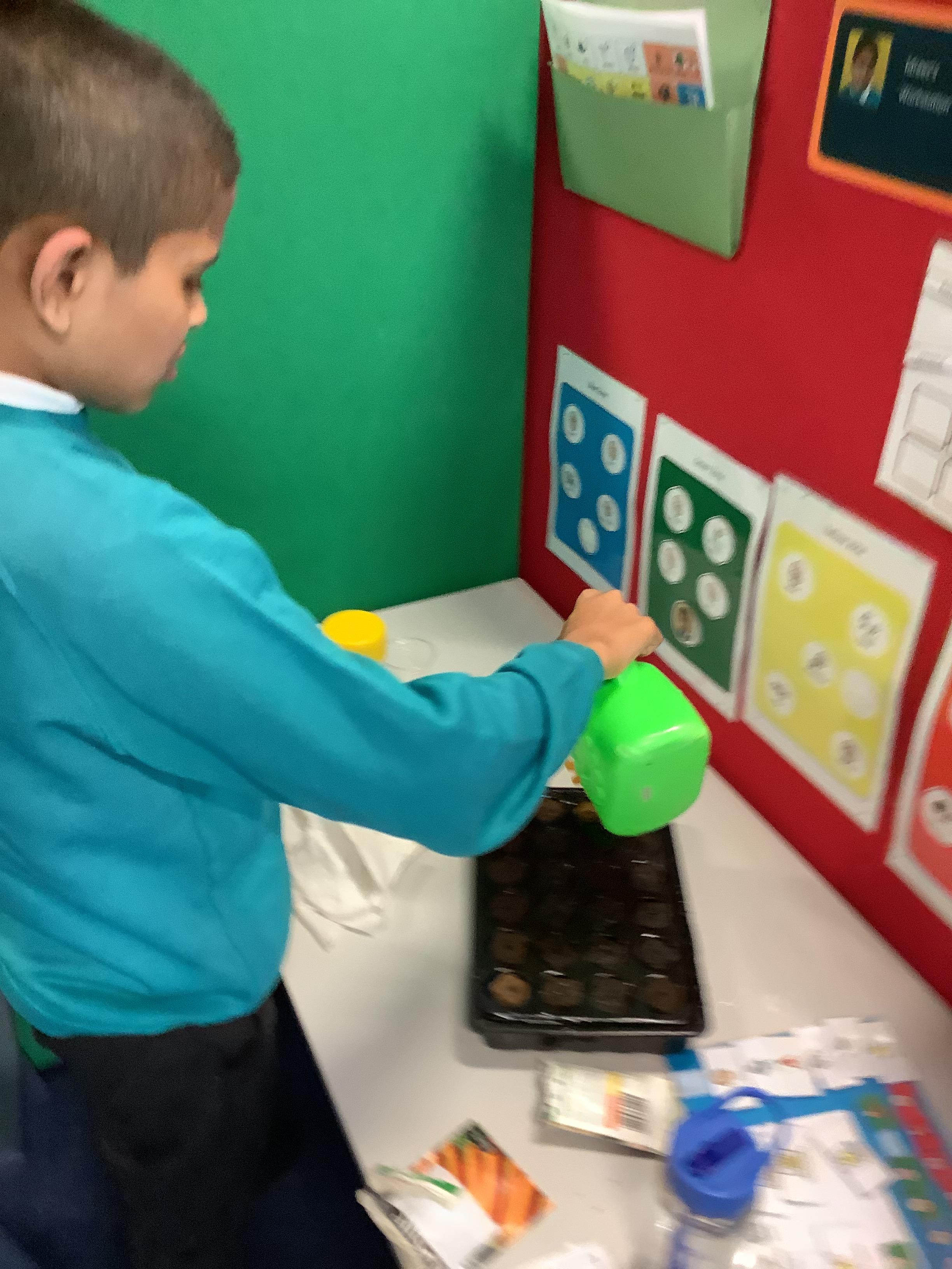 We had a good first week back, the children have had to adjust to sharing the adults attention again and sharing the classroom with one another. The learning was very much focussed on phonics, reading and their IEPs. The children also got out in the garden to start sewing some seeds for our vegetable patch!