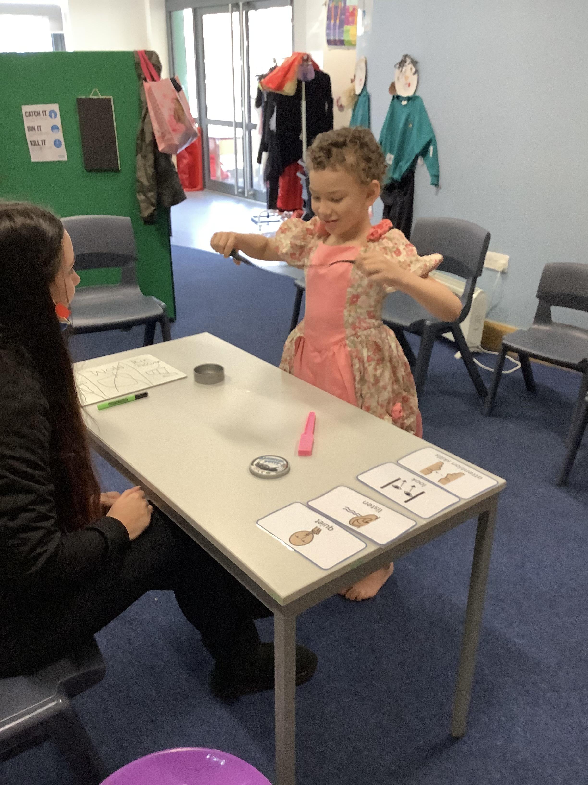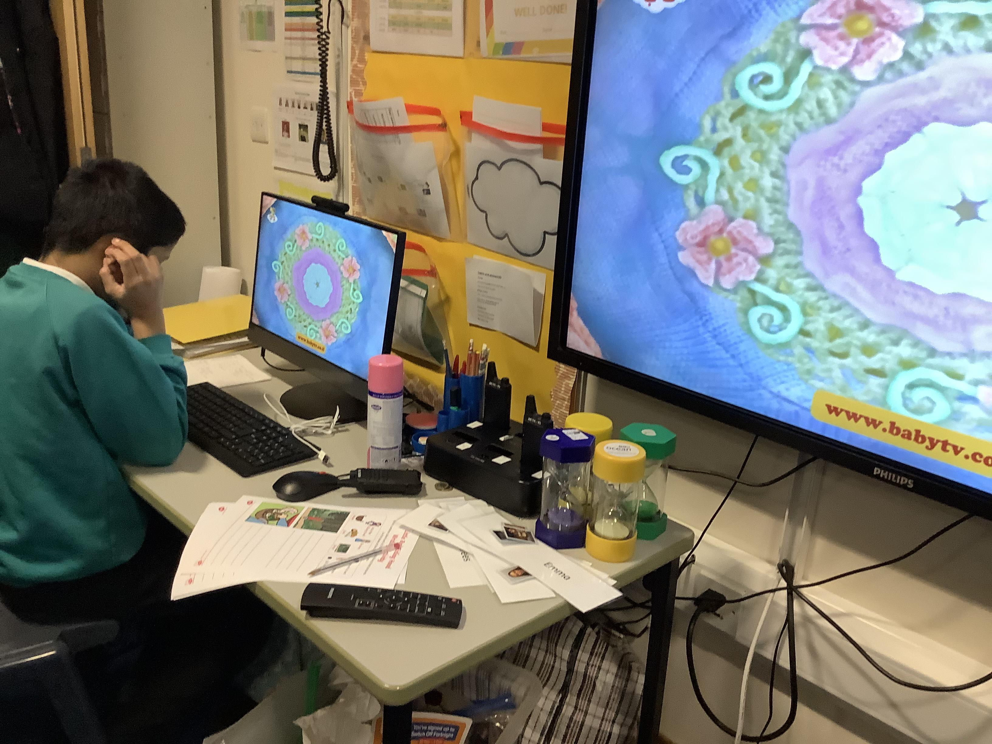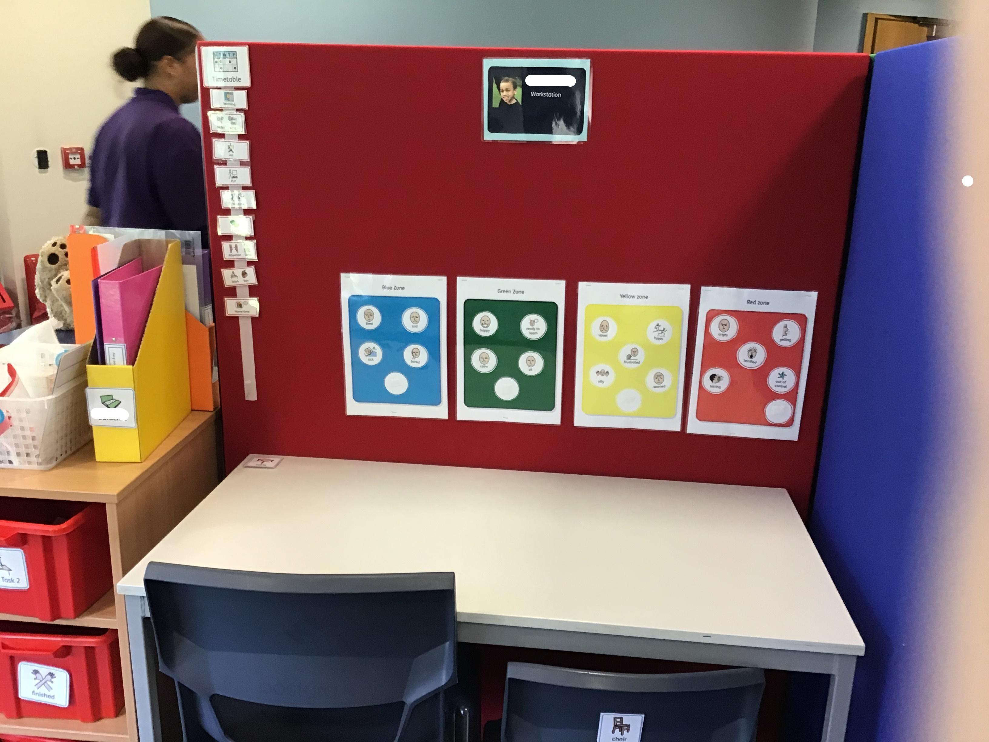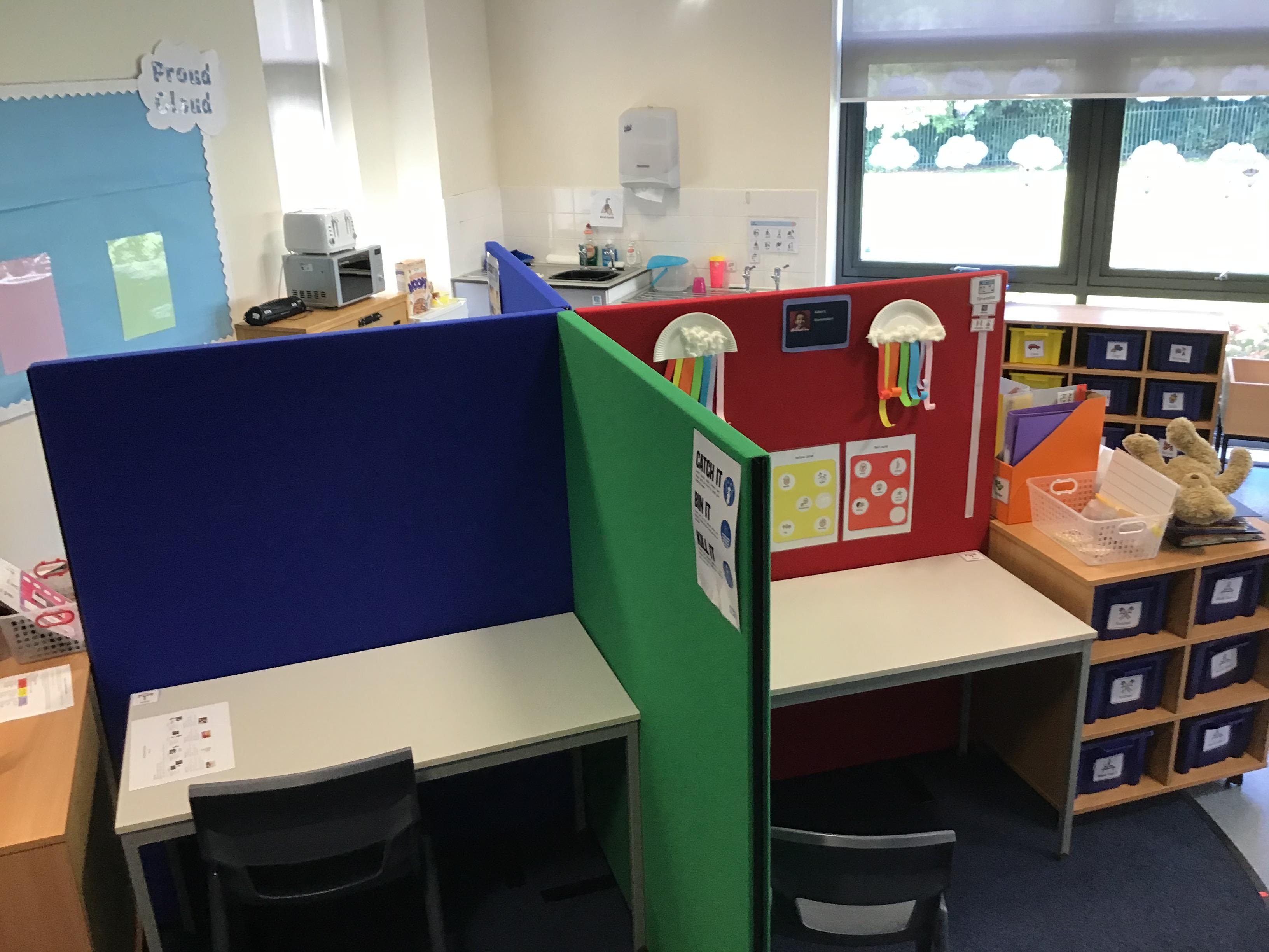 Below are some photos of our classroom. The children have their own work area and follow individual timetables. We have PE on a Monday and Expressive Arts on a Friday which the children have really enjoyed since coming back to school.