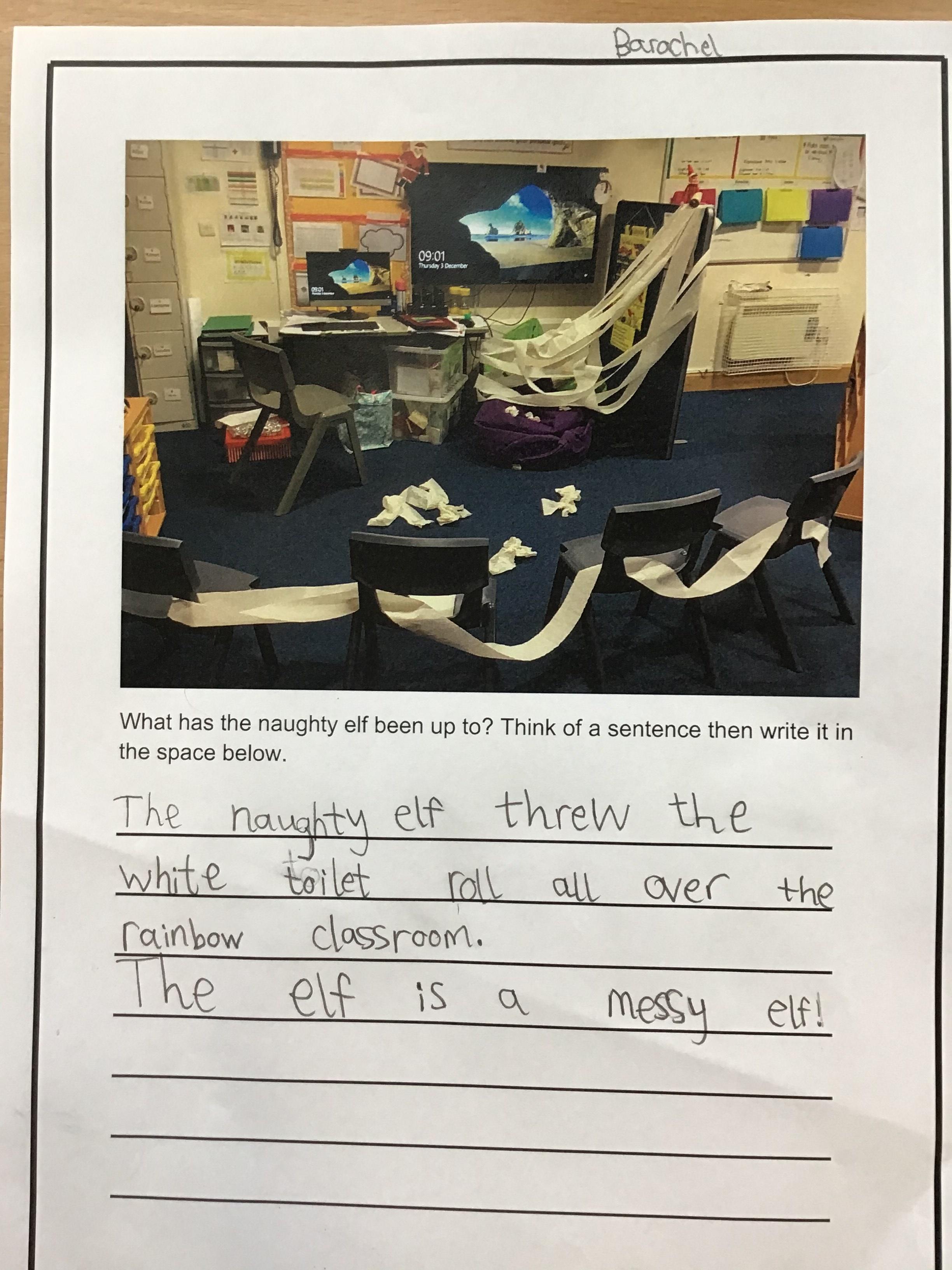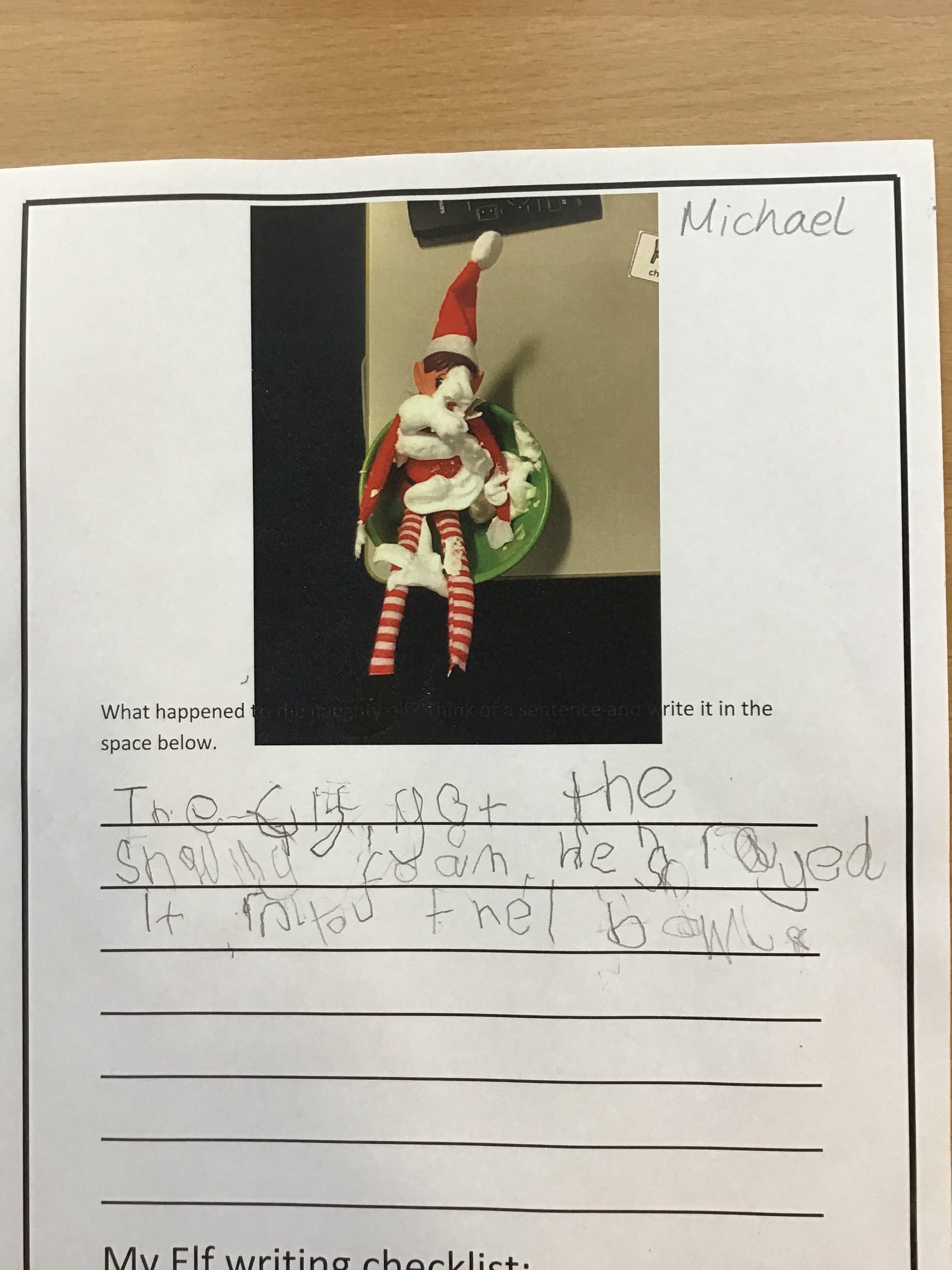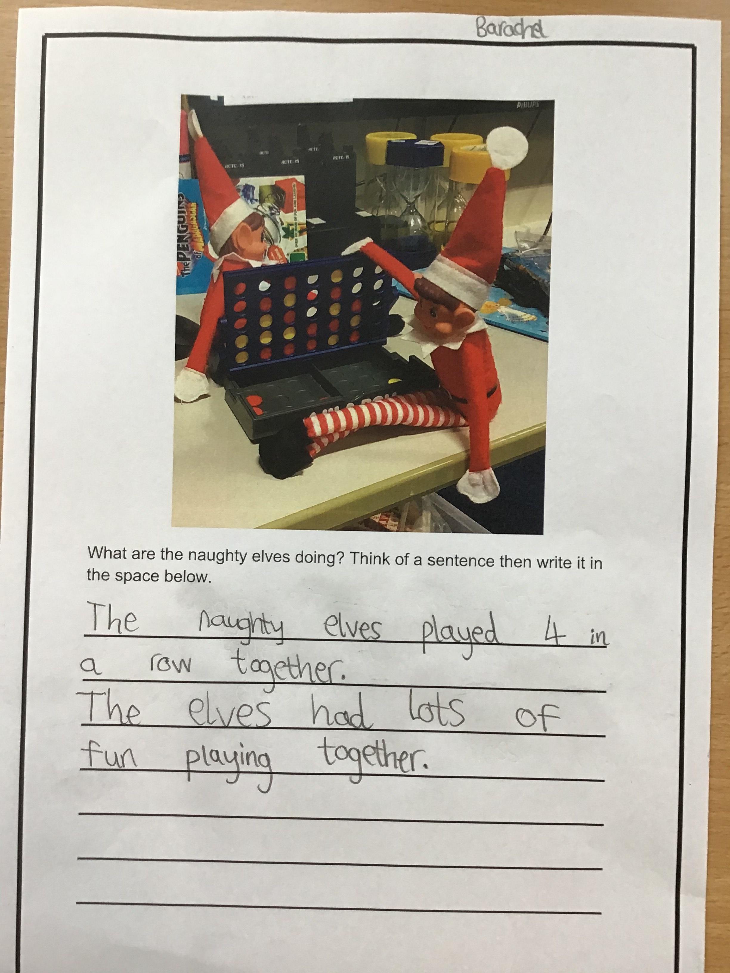 The children have been writing about what the naughty Elves have been up to. The Elves wrote them a writing checklist to help.