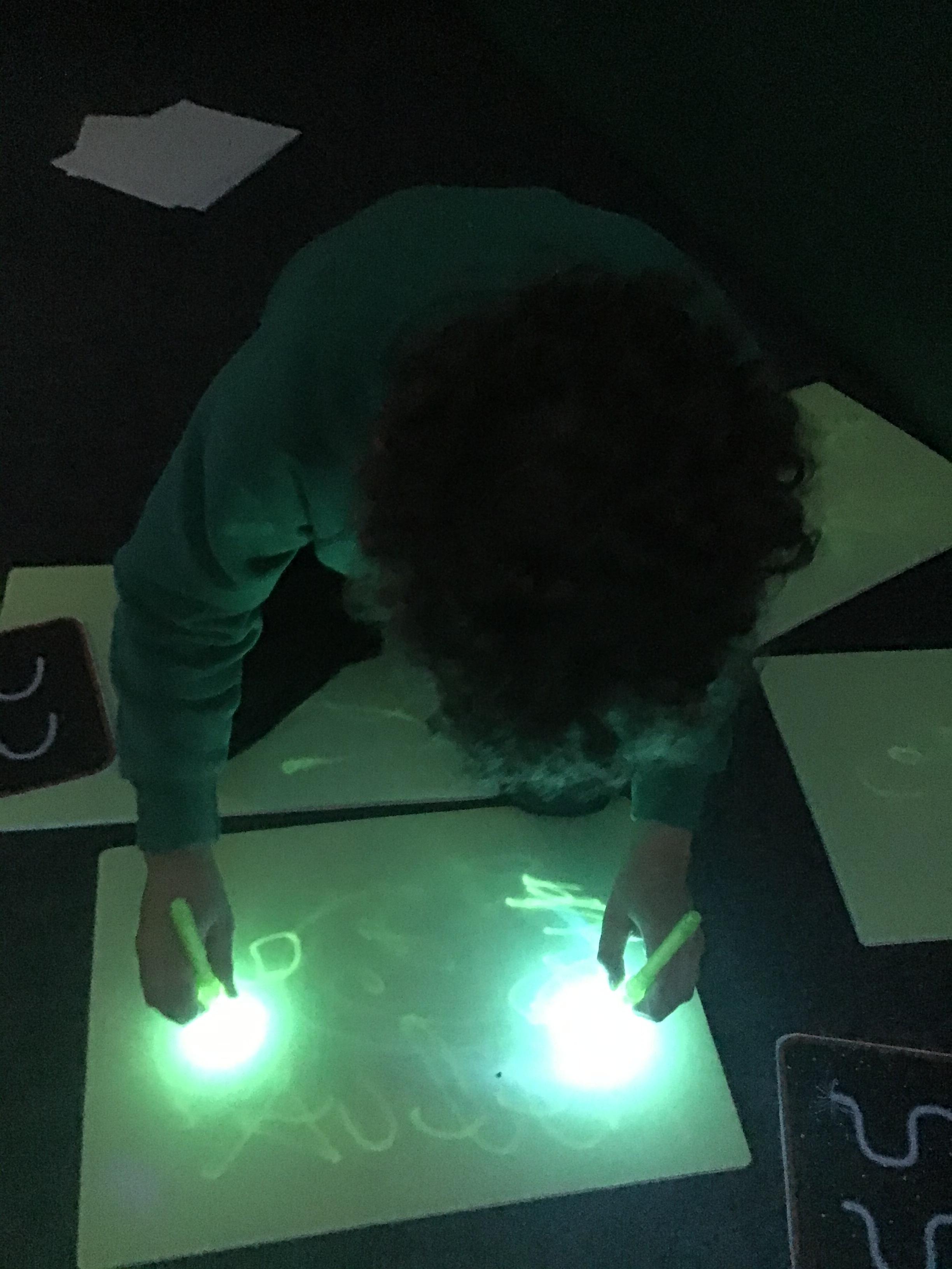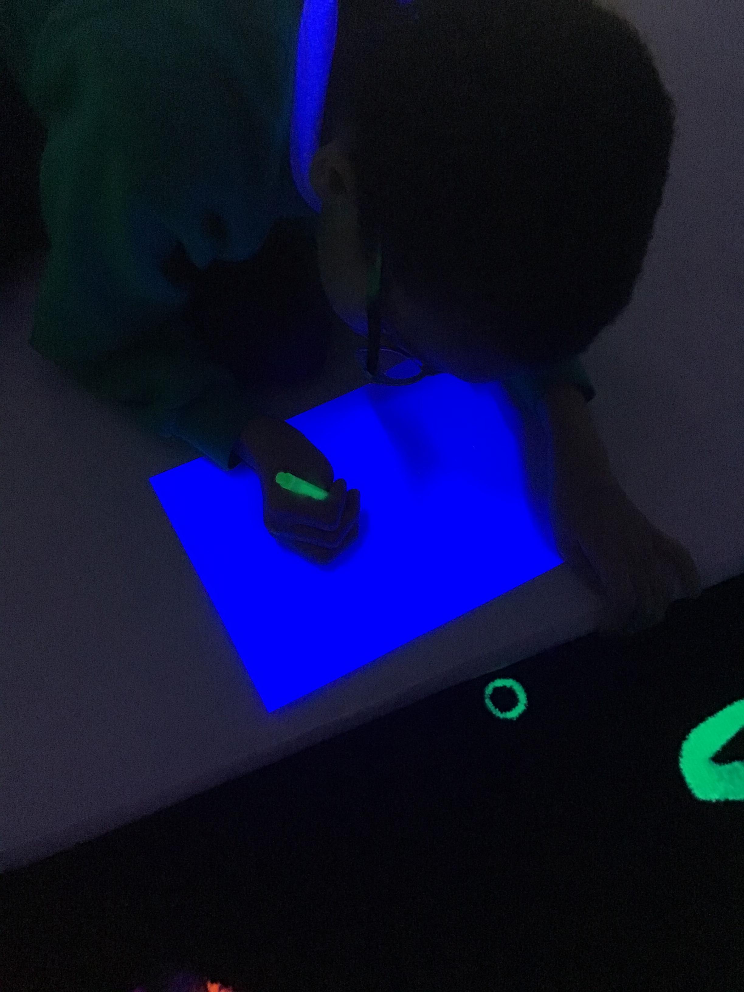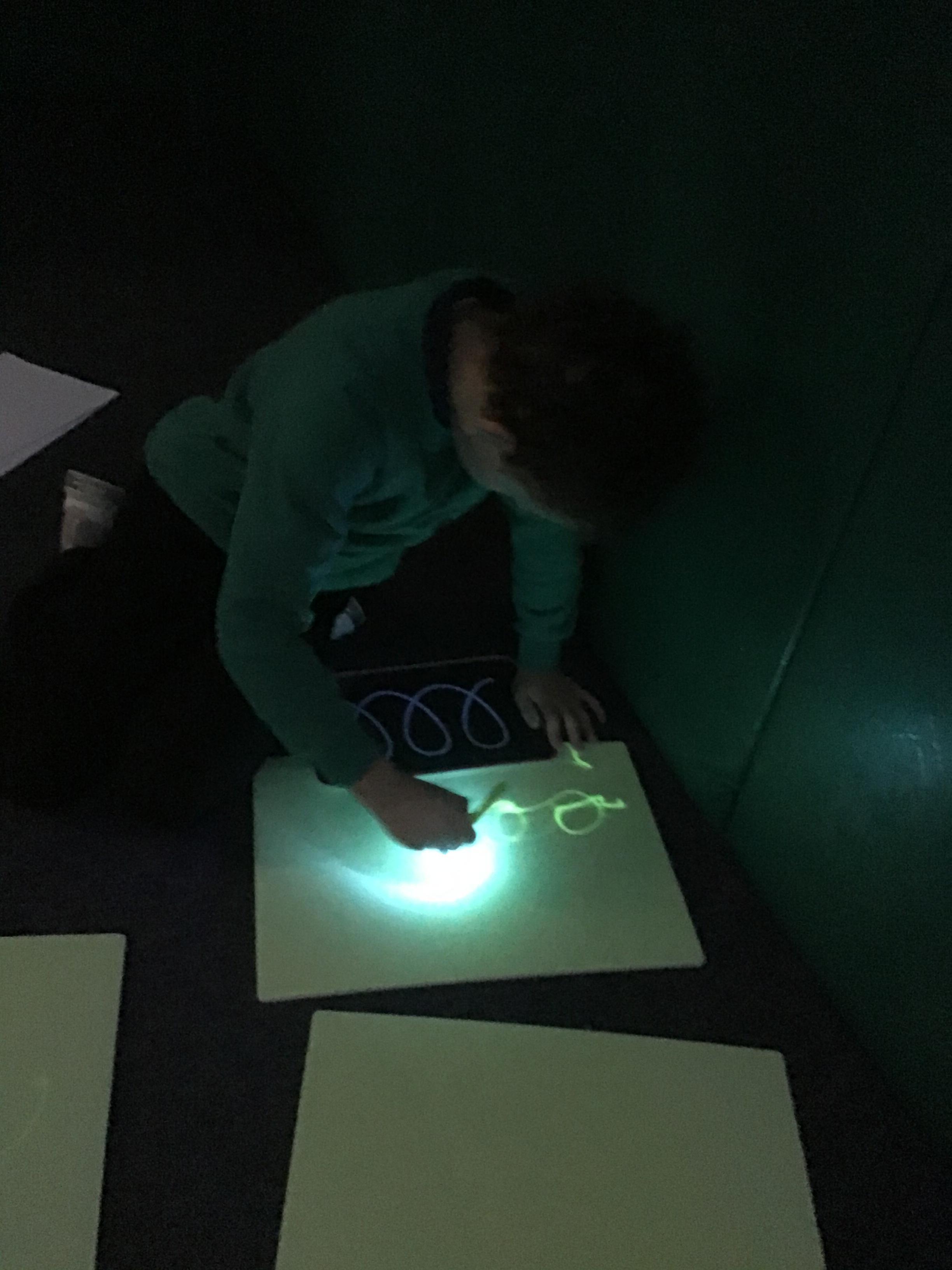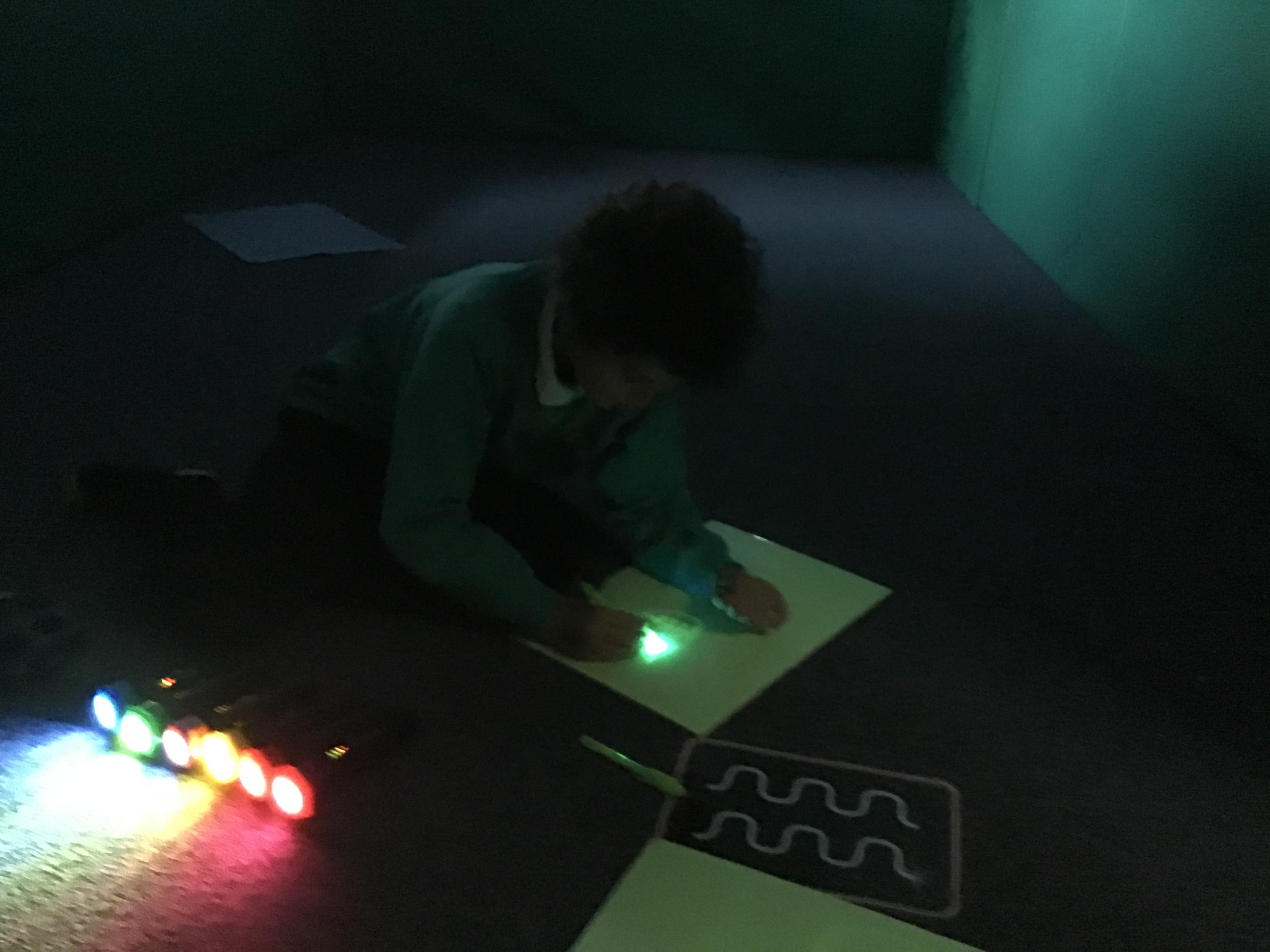 This week the class explored their sense of sound and made some noisy rain shakers! They also enjoyed using the new sound equipment in our brand new light room.