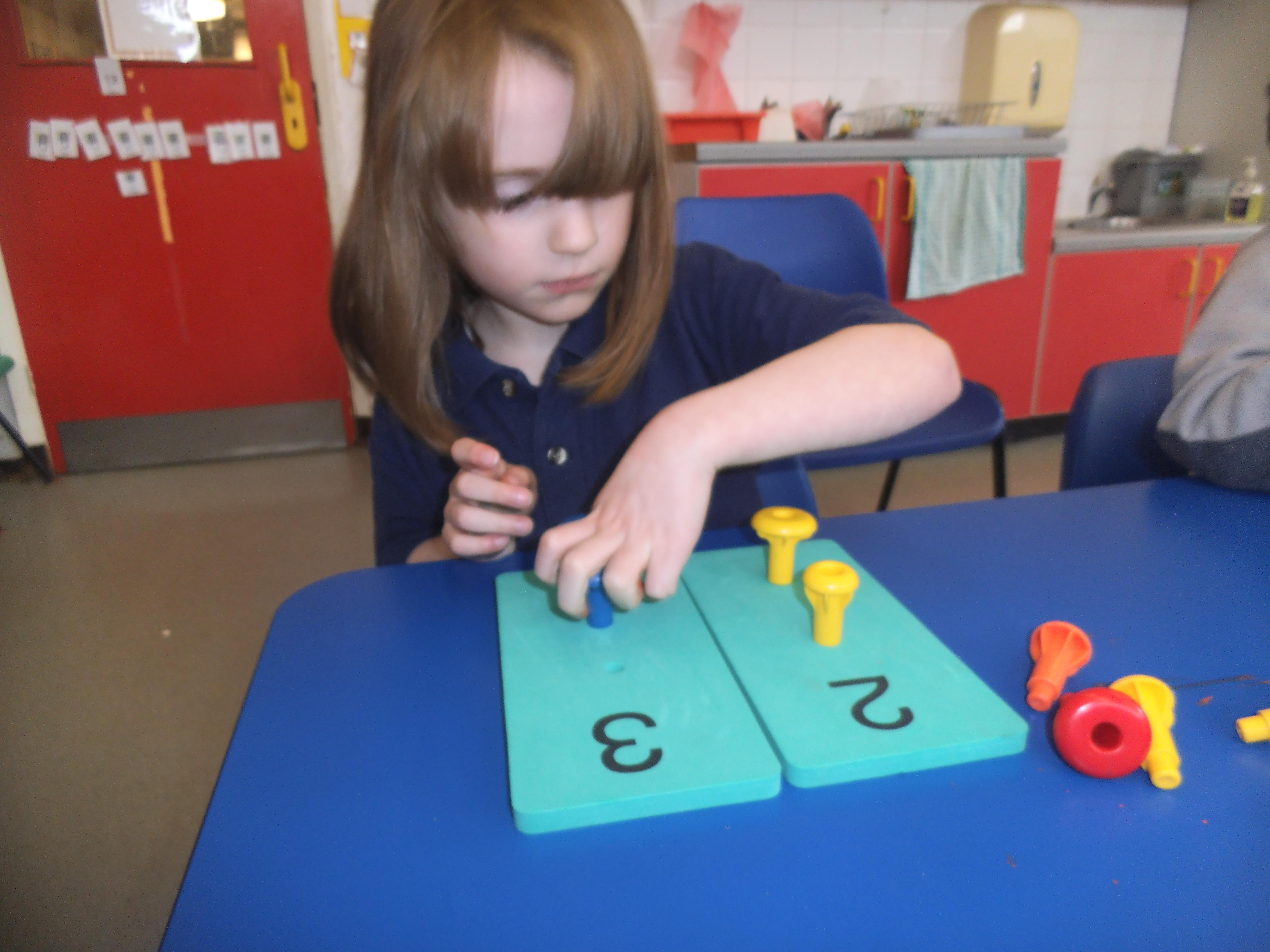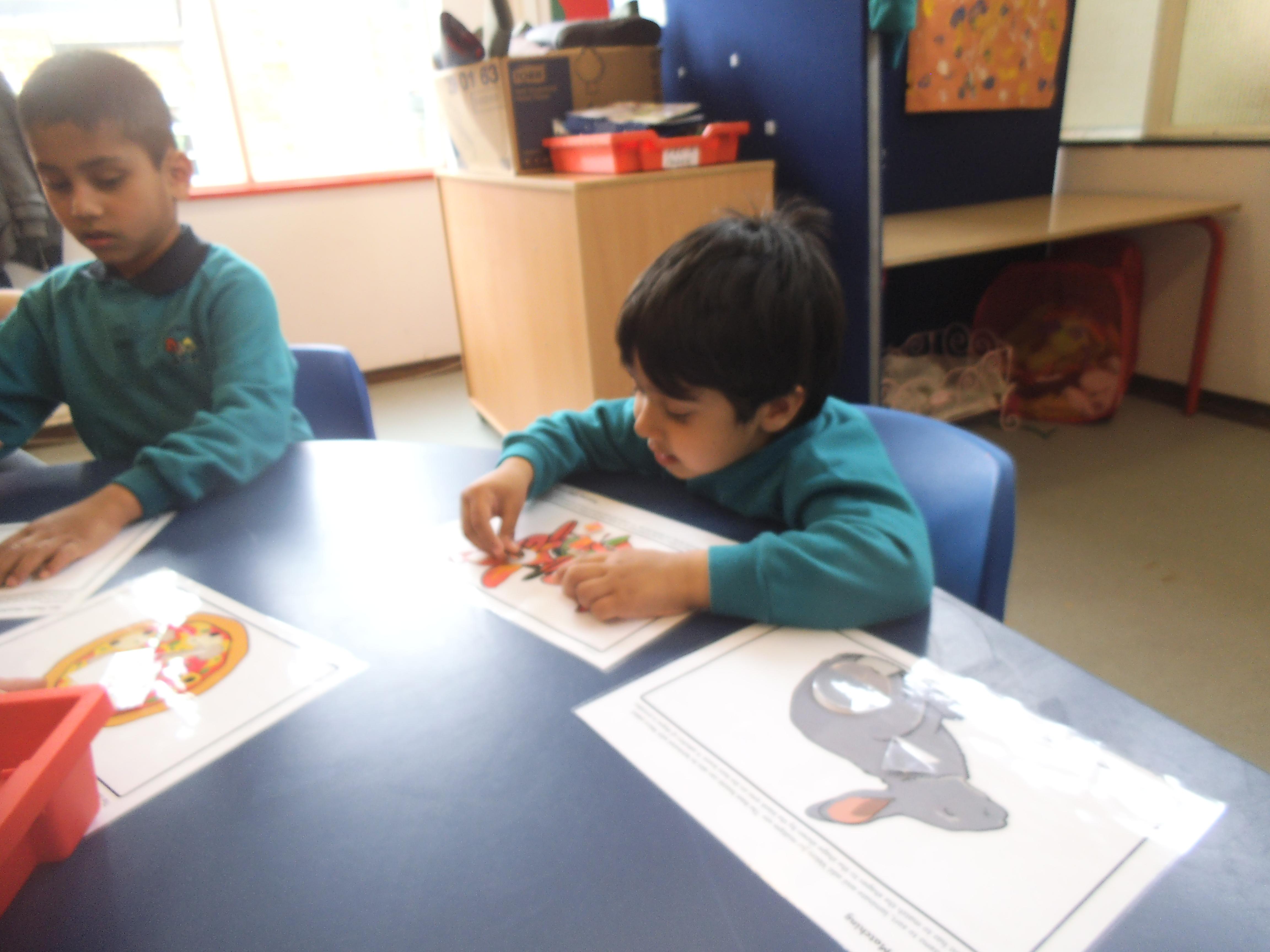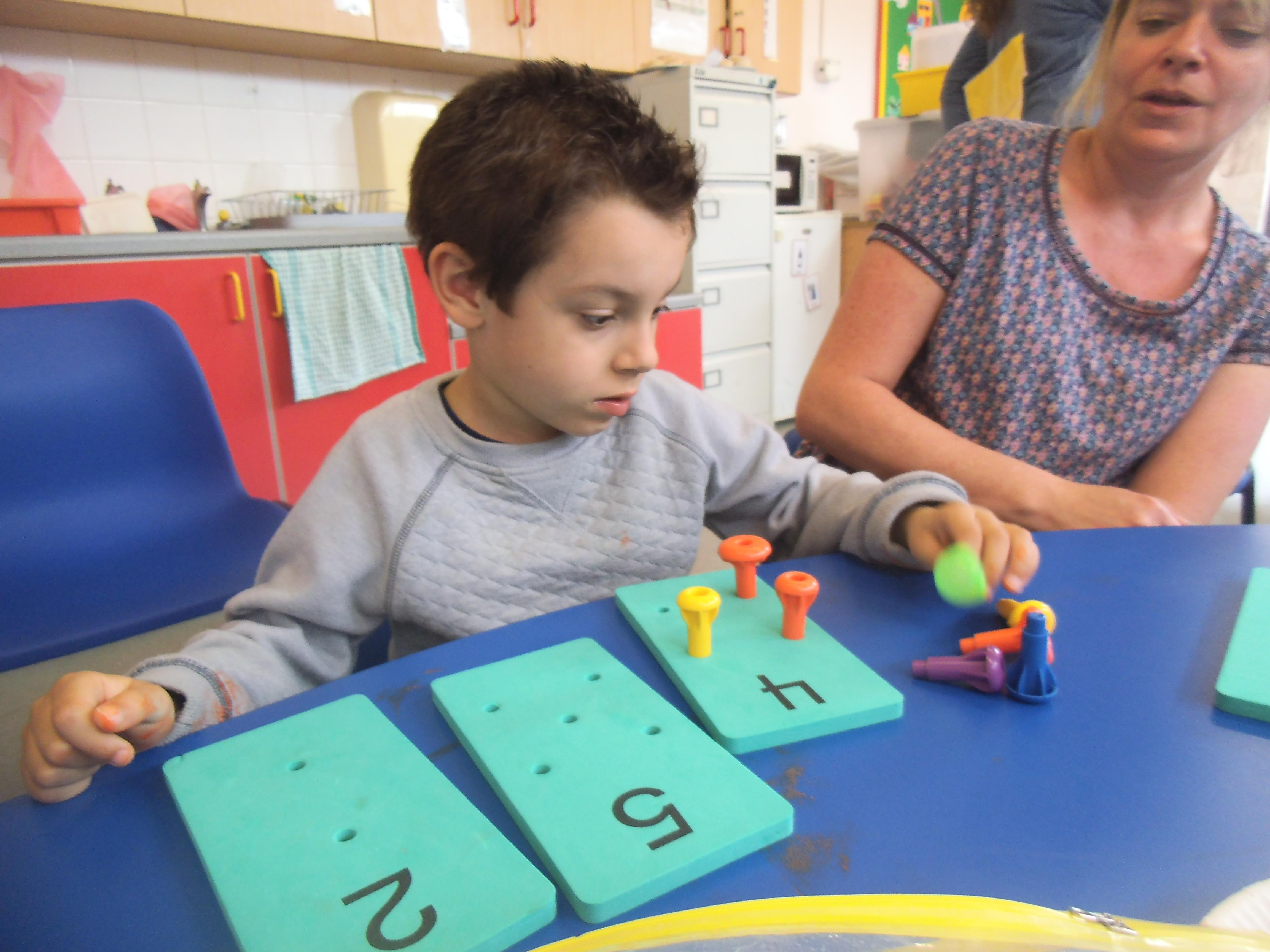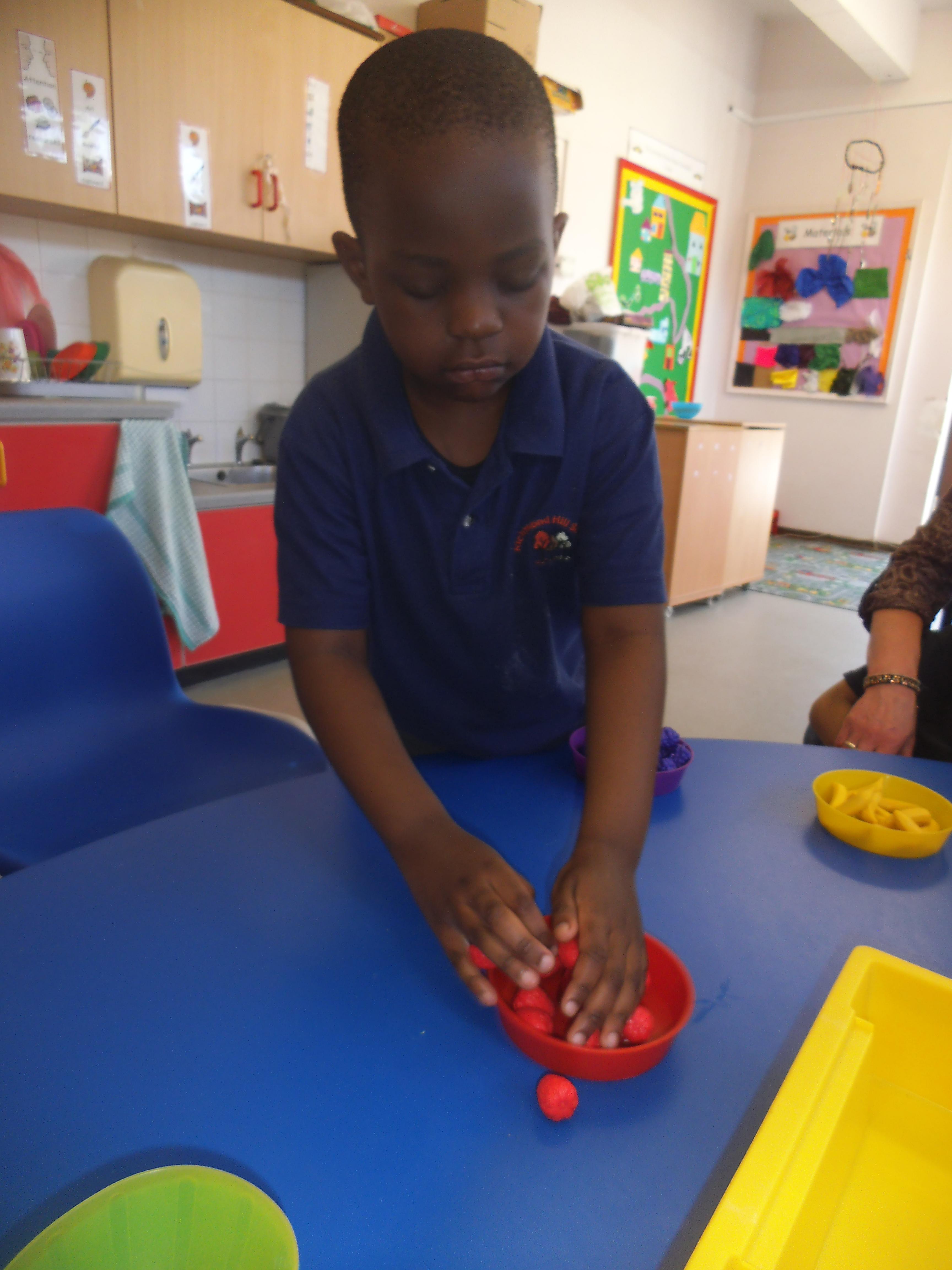In Maths we are focusing mainly on number and being able to make groups of different sizes. Some of the children can count objects and some are able to recognise numbers, but the skill of stopping at a given number is quite tricky and the children need a little help to recognise when they have reached the correct amount. All the children have an understanding of one, so now we are looking to make groups of two and three. We shall also be learning about money and shall use pennies to buy some fruit and vegetables in our role play shop.