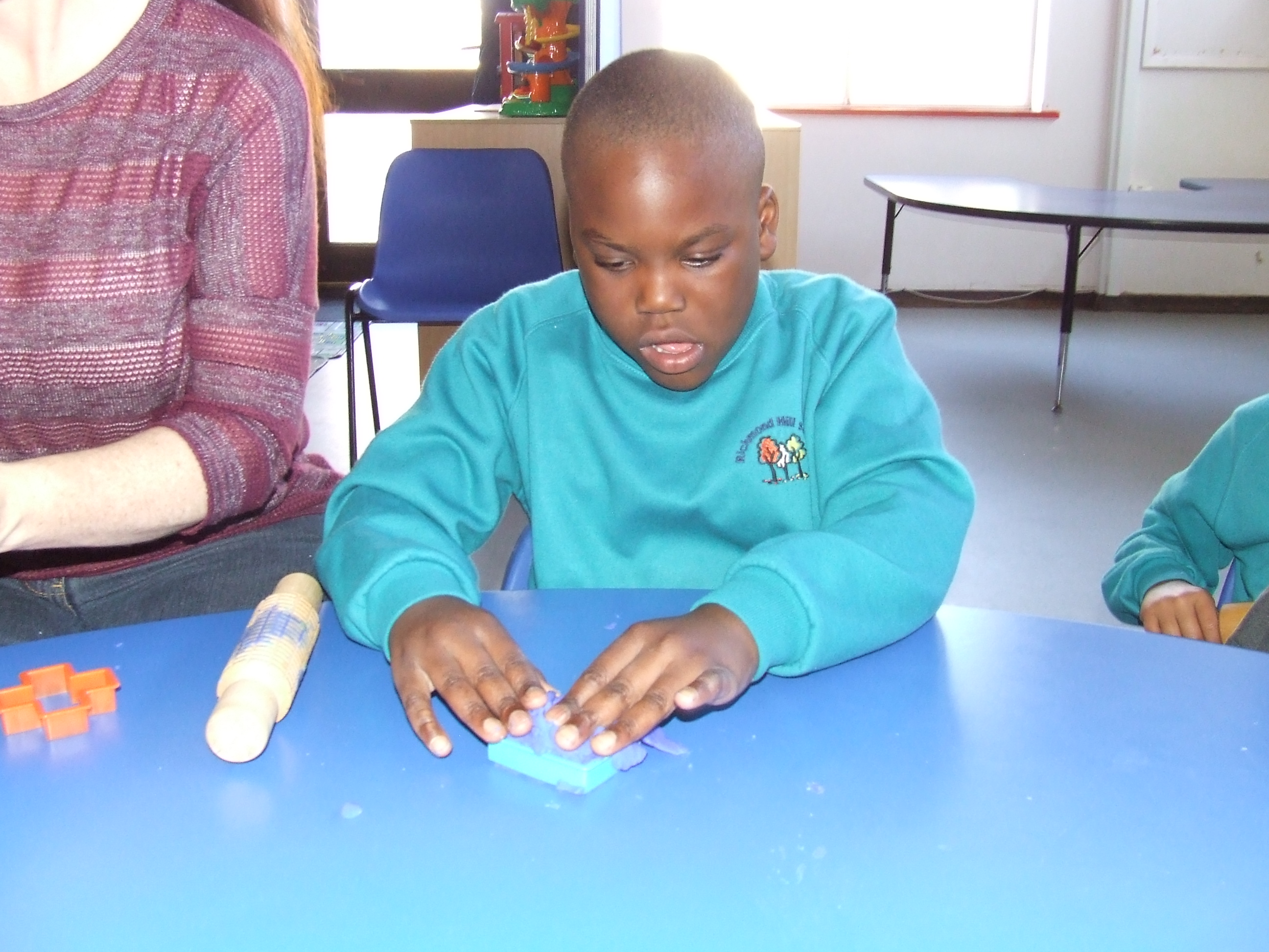 making marks in play dough, matching pairs of shoes and trying on lots of