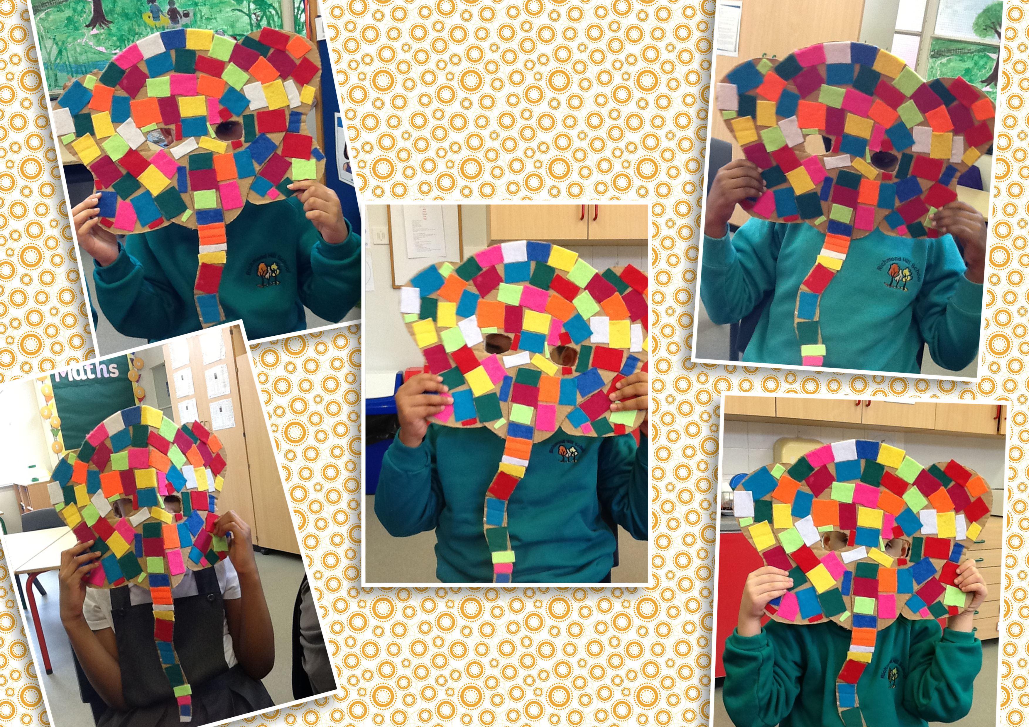 We have started to explore props related to our first story “Elmer” and took part in a collaborative work in order to decorate Elmer for our display board.