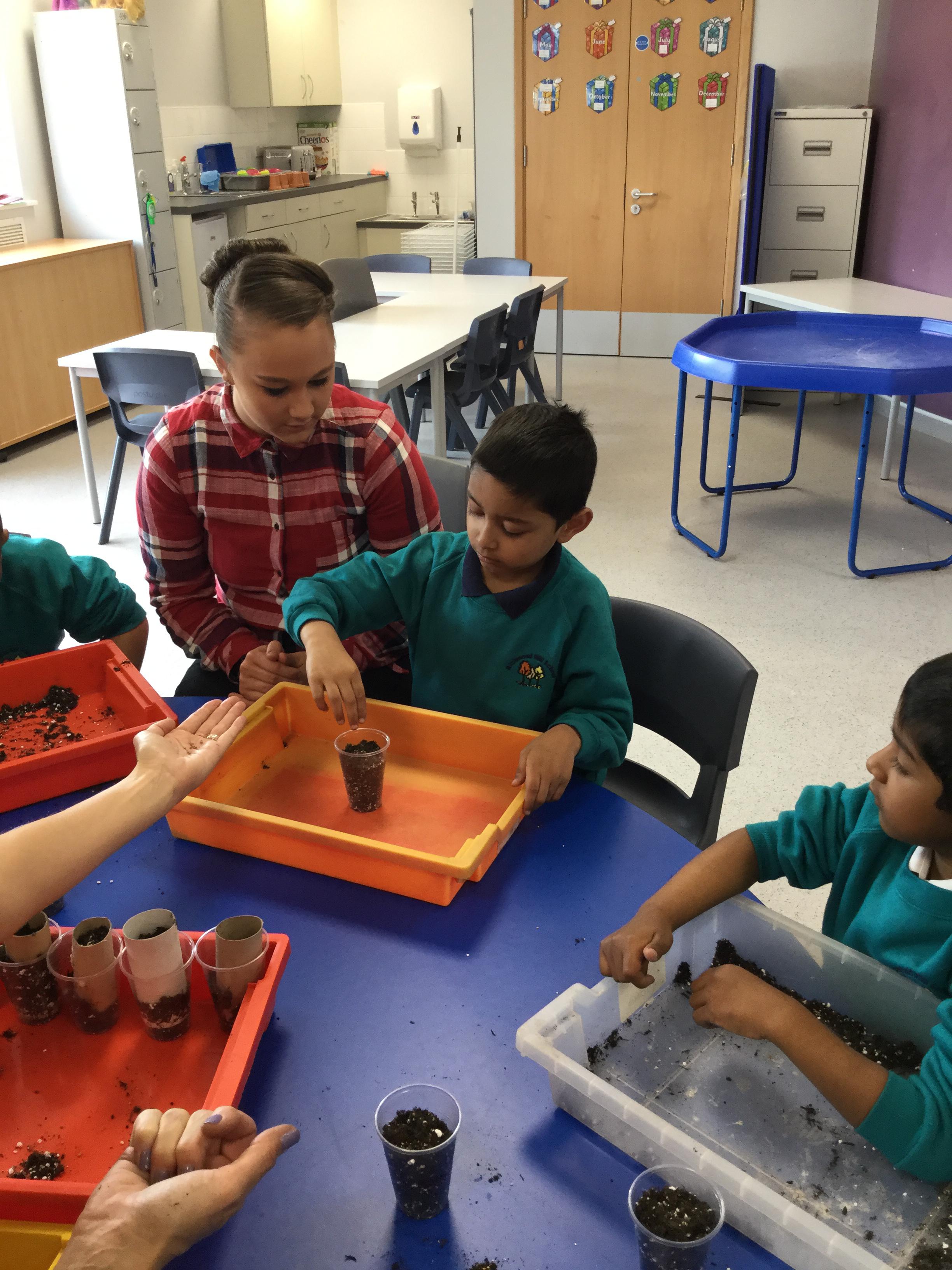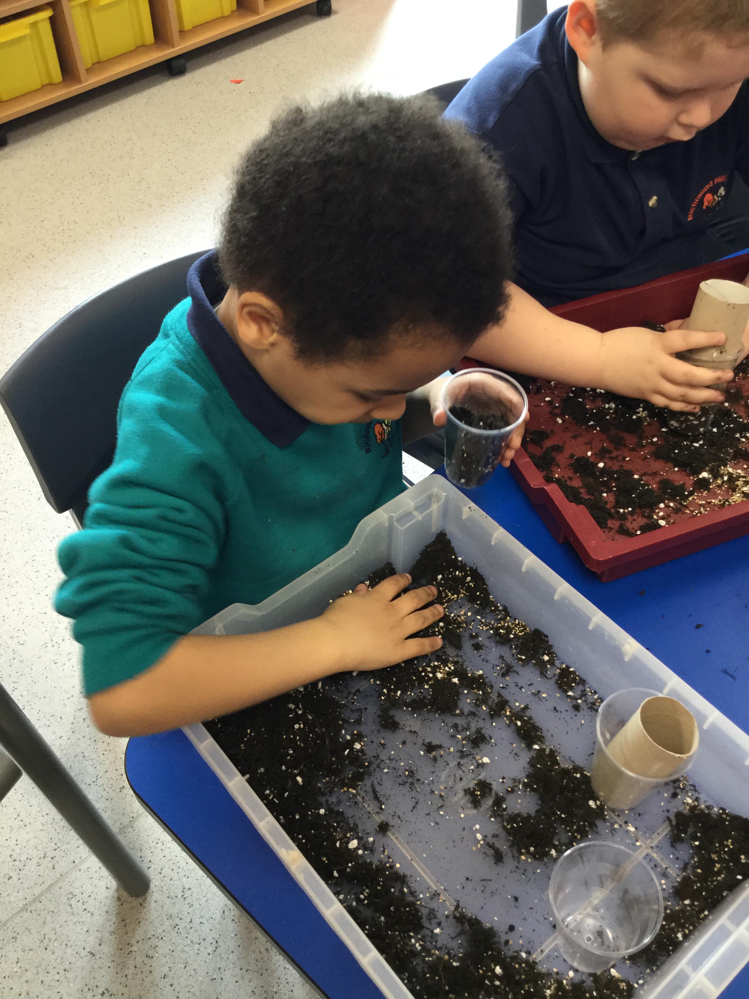 Robin Class enjoyed investigating seeds and soil. We have planted peas, radishes and cress and are looking forward to seeing them grow.