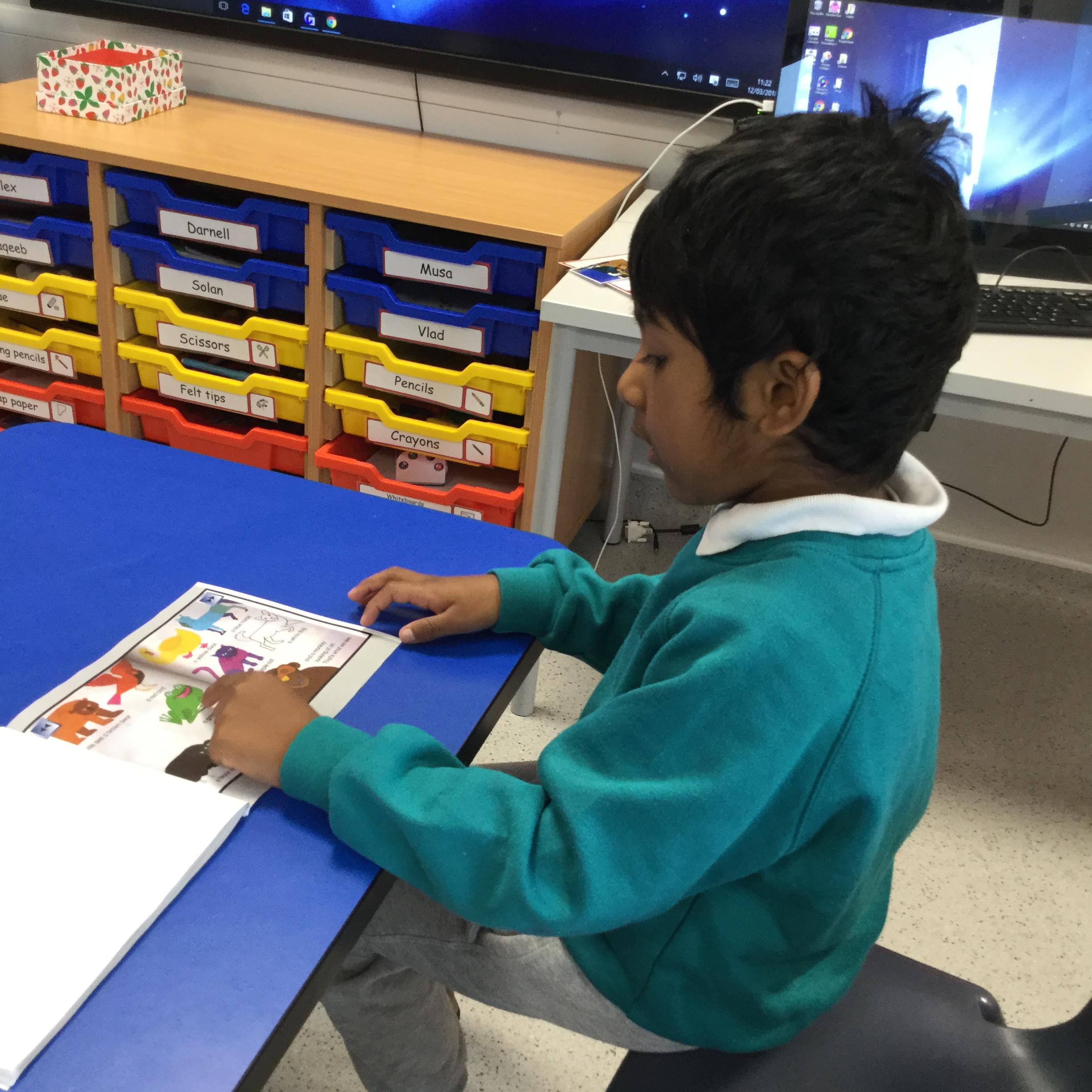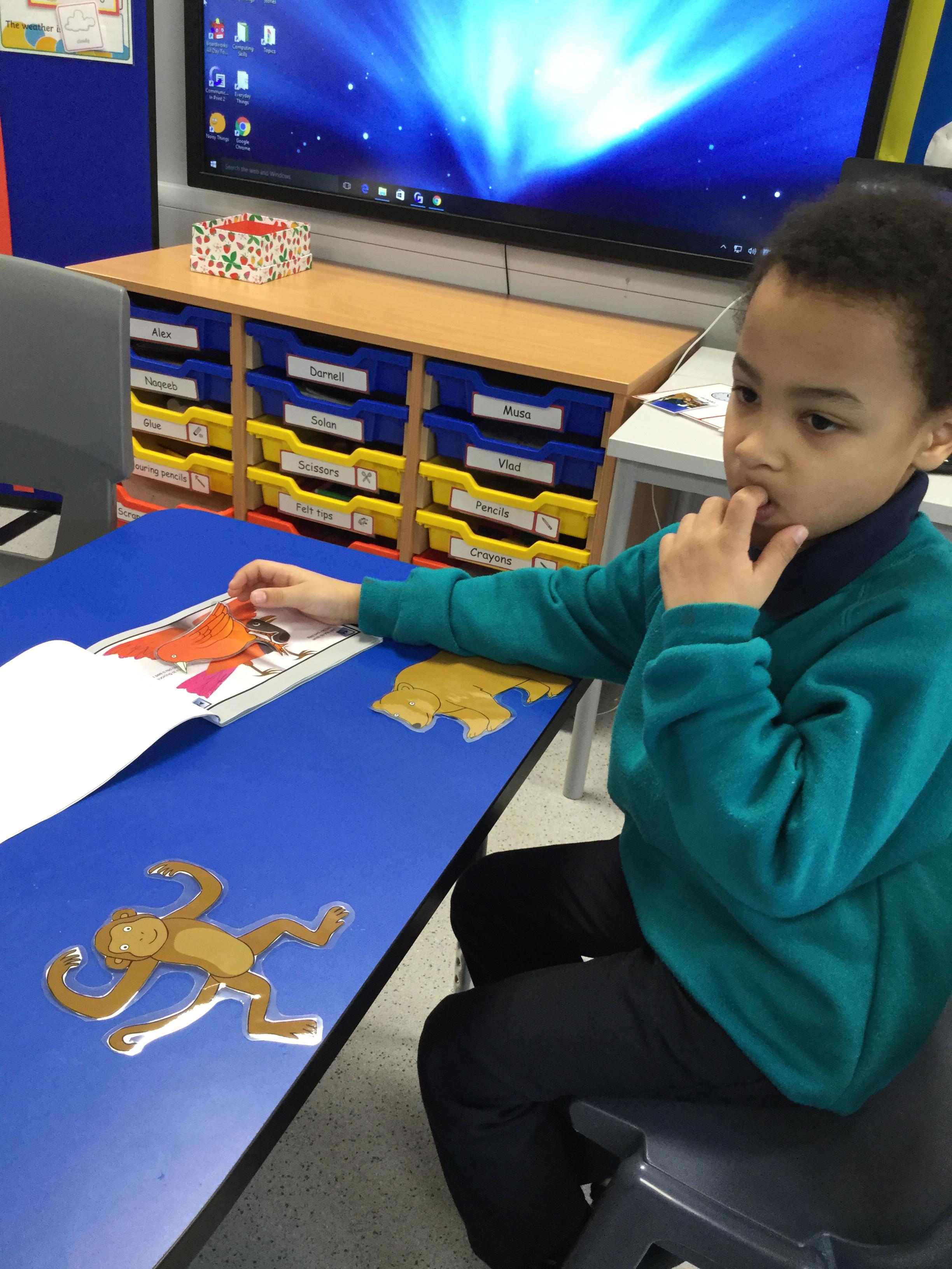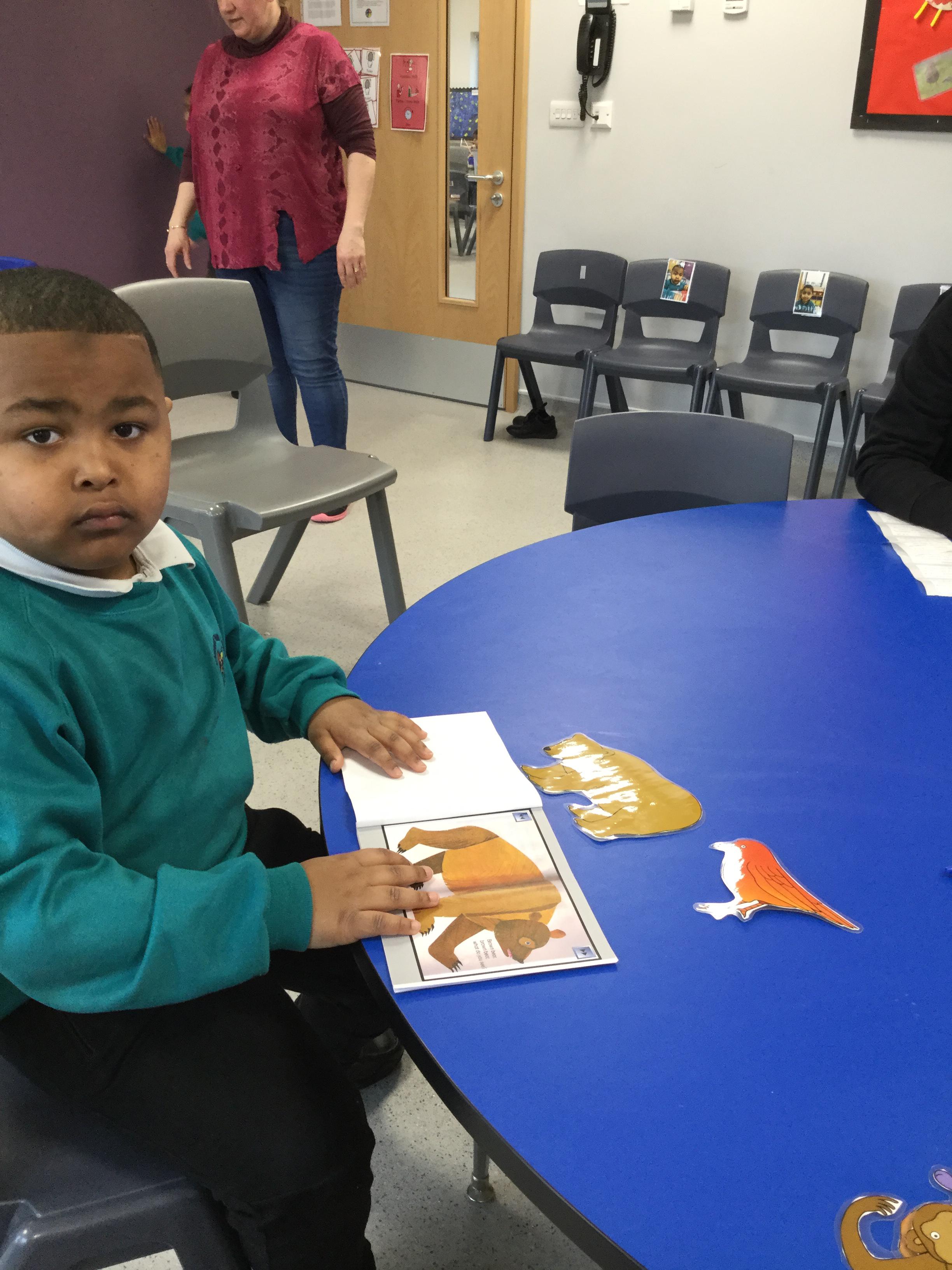 Robin Class have enjoyed retelling the story Brown Bear, Brown Bear by Bill Martin.  We used sound buttons to make animal sounds and had pictures to match.