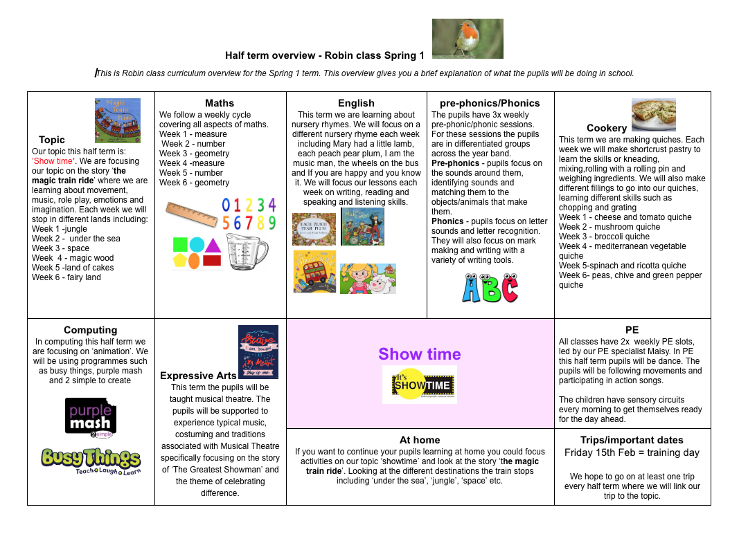 Below is Robin Classes curriculum overview for this half term. You can click on the picture below to view the document.