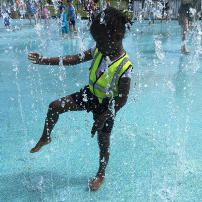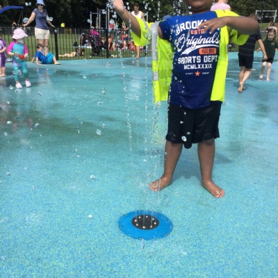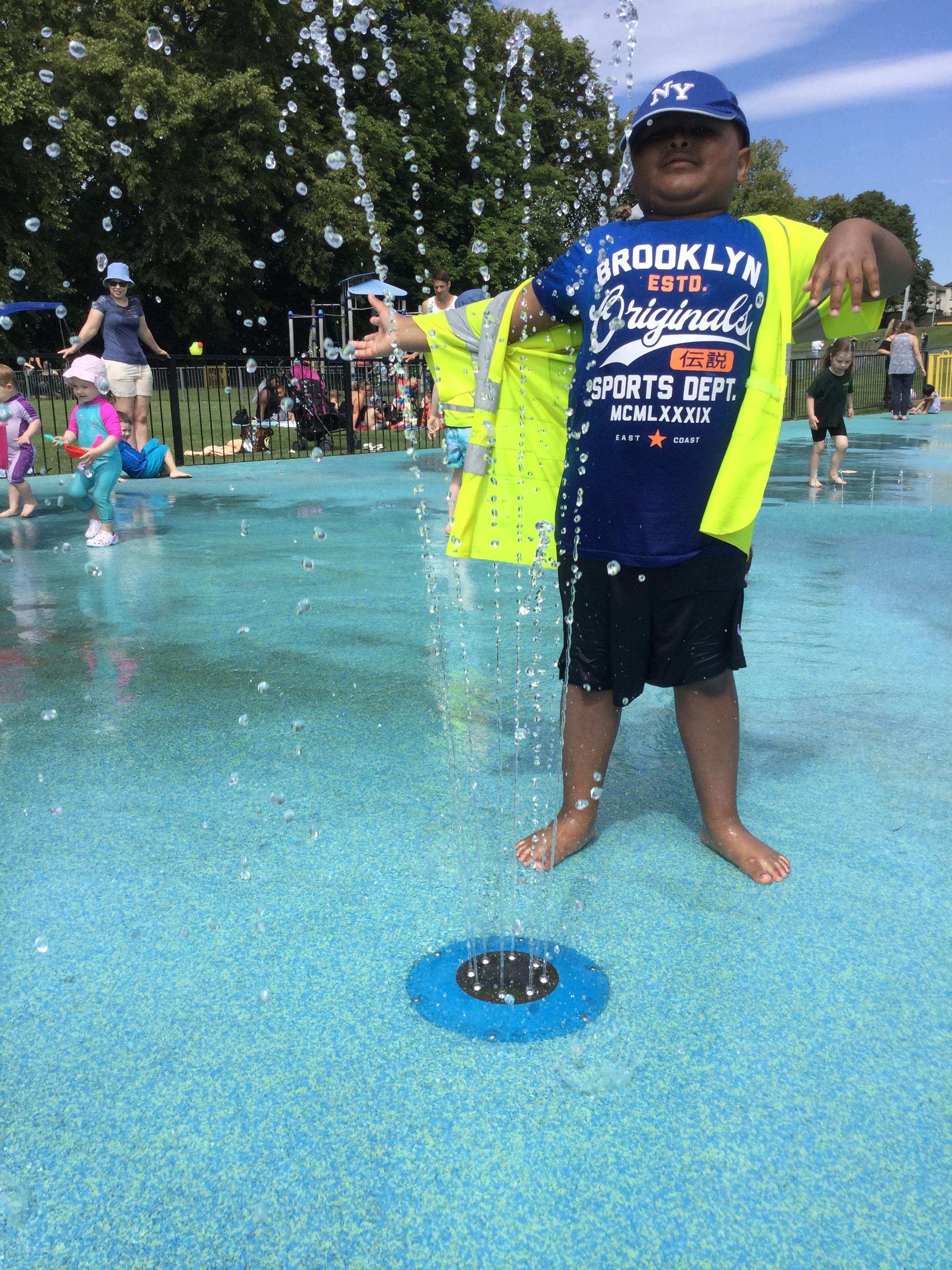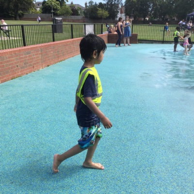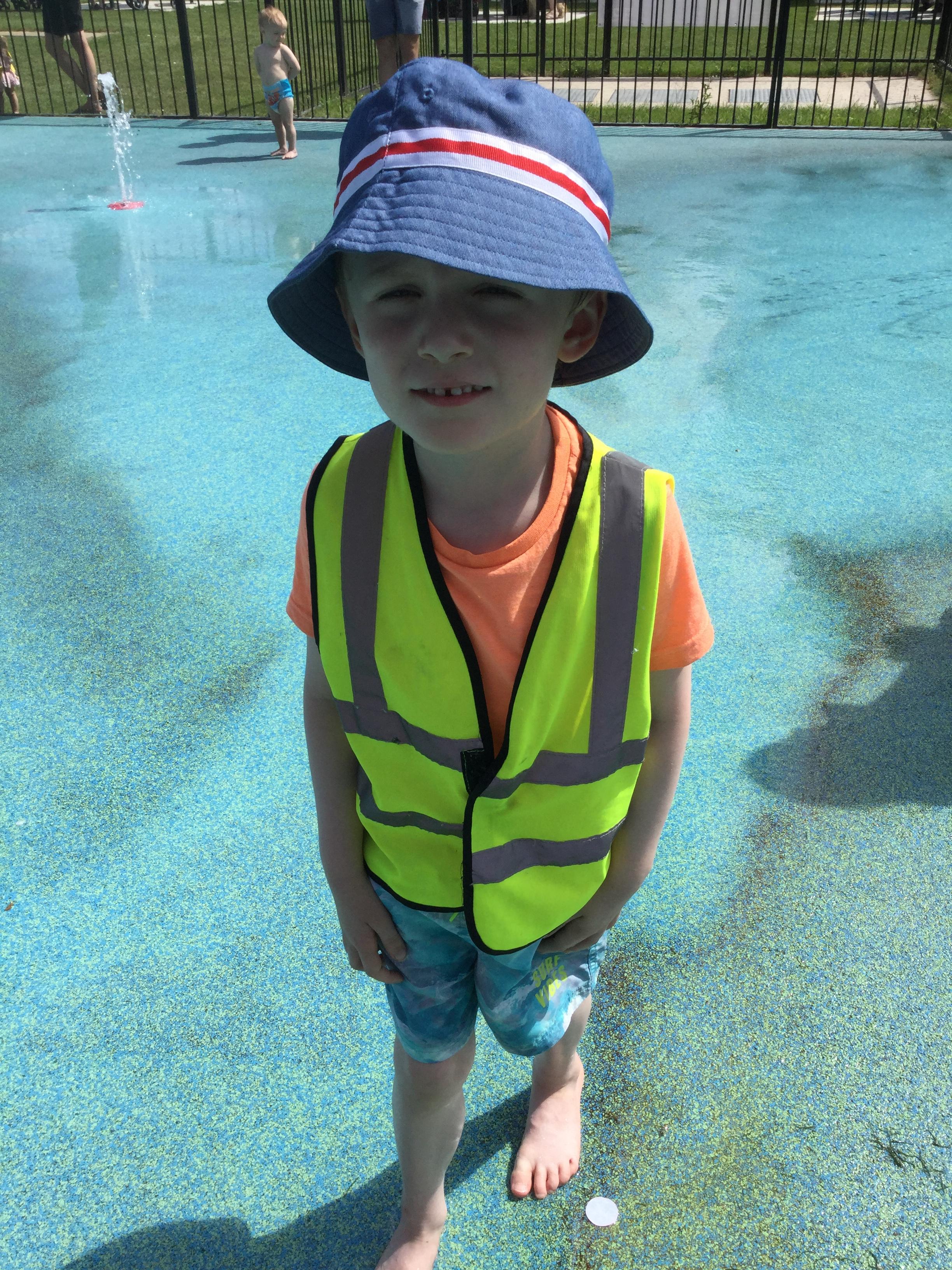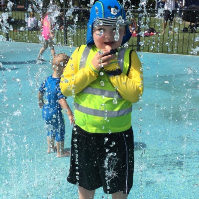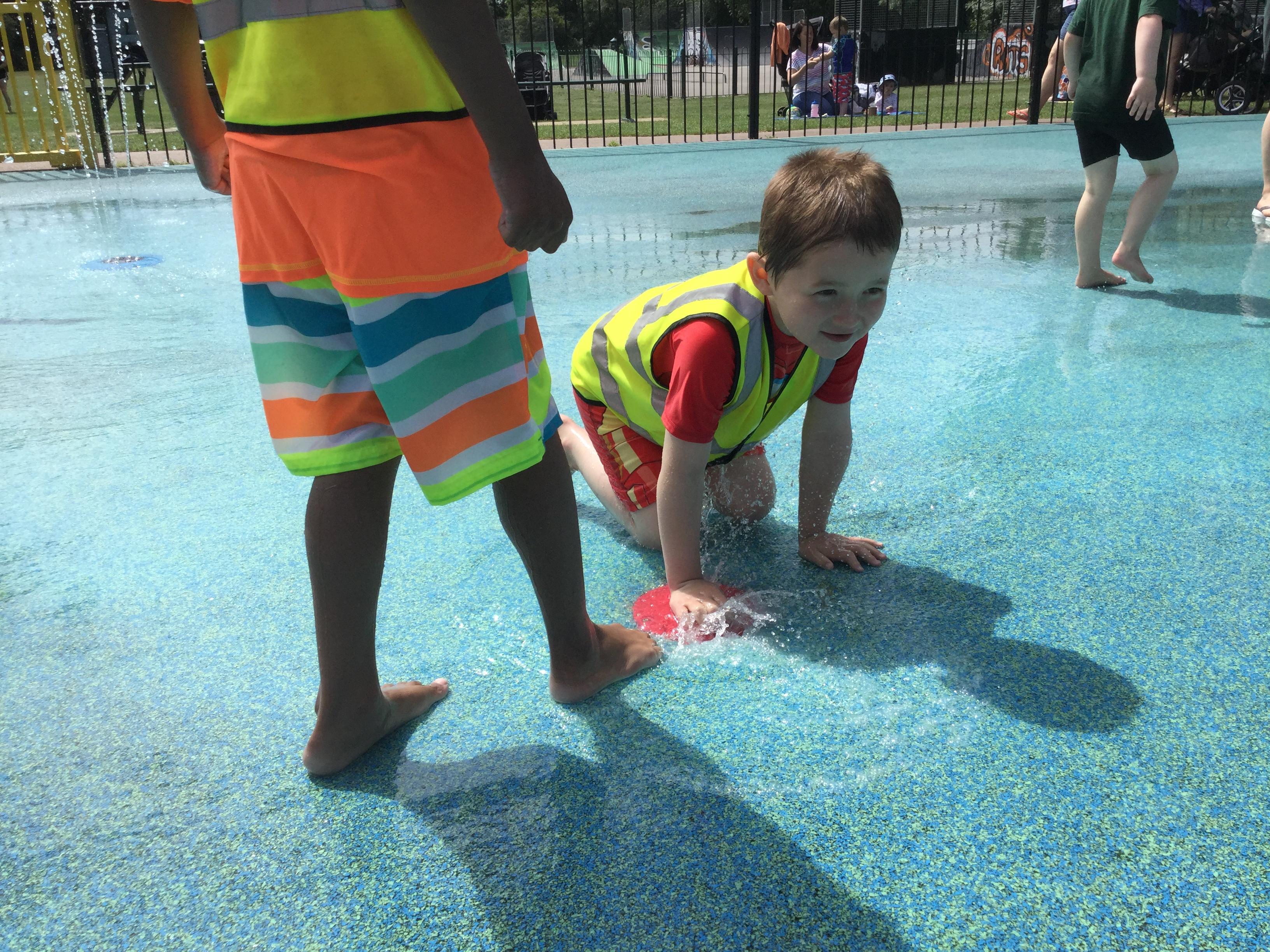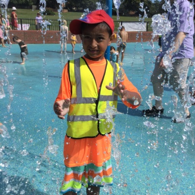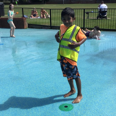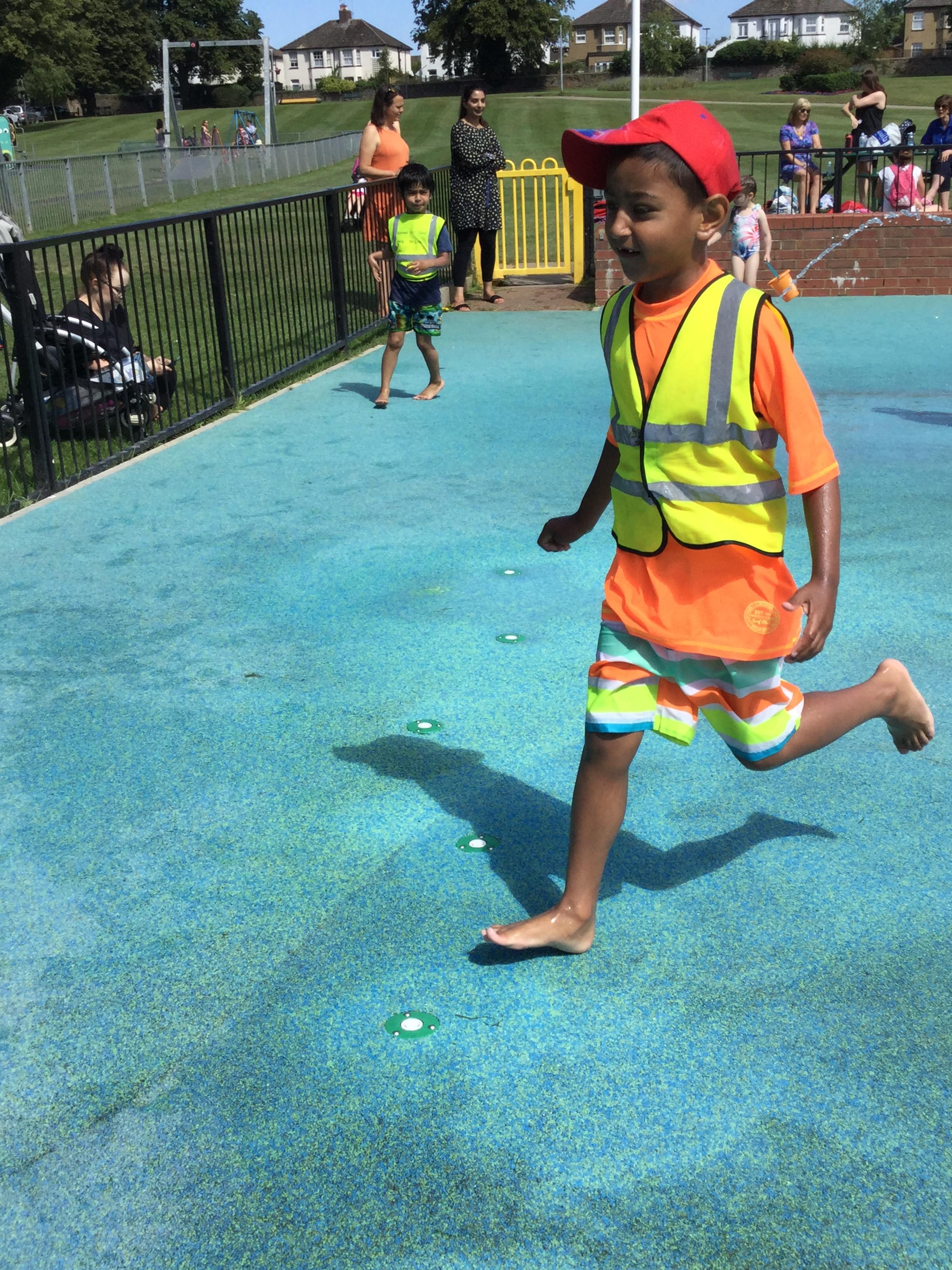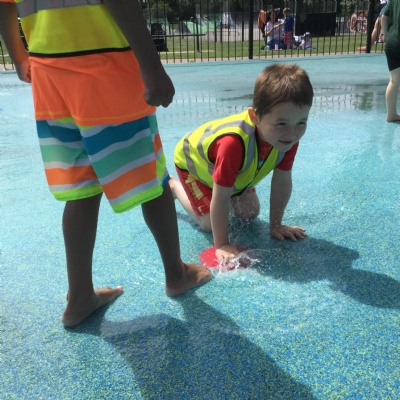 We did splatter painting outside, flicking different coloured paint at the large piece of paper.