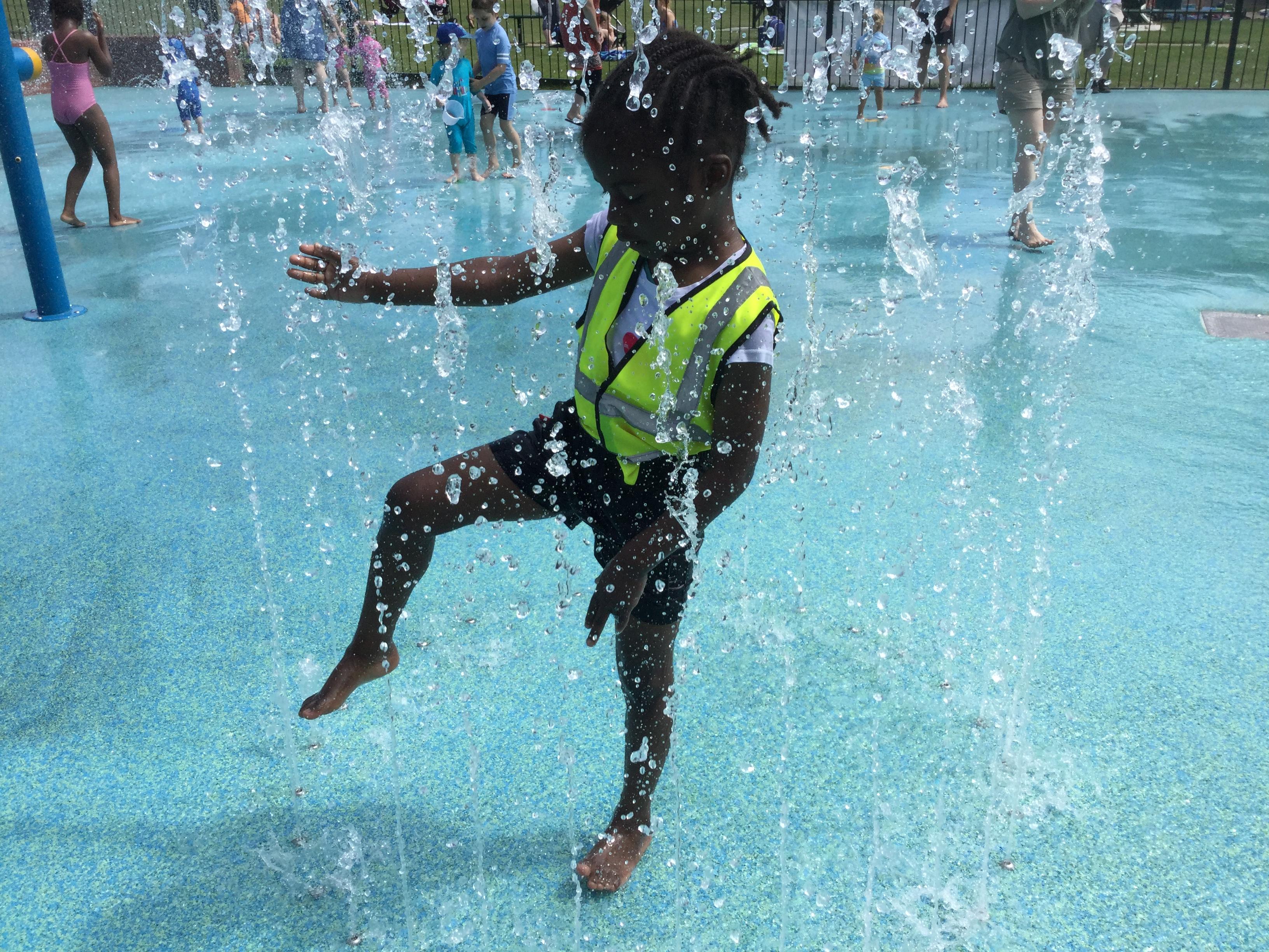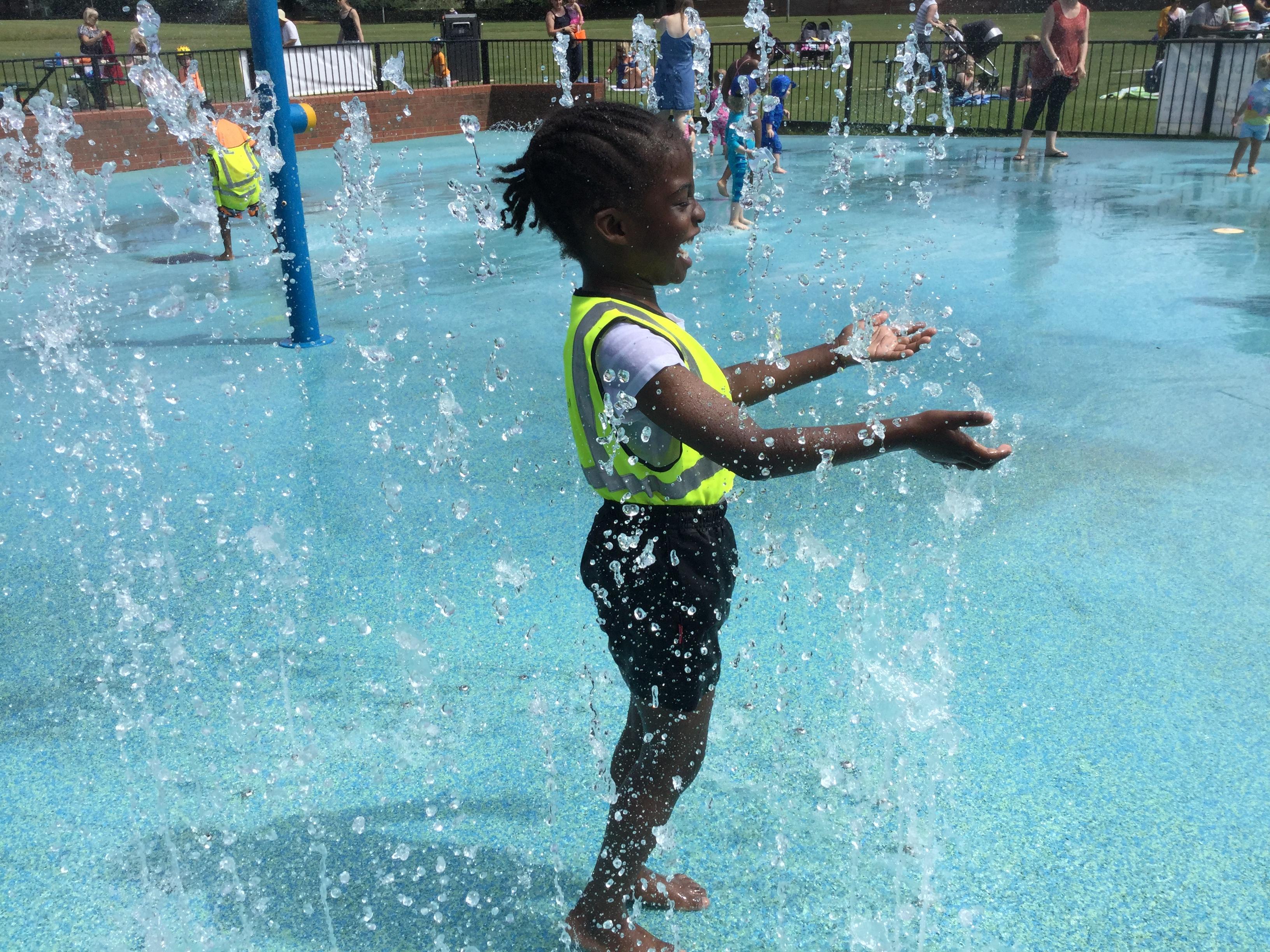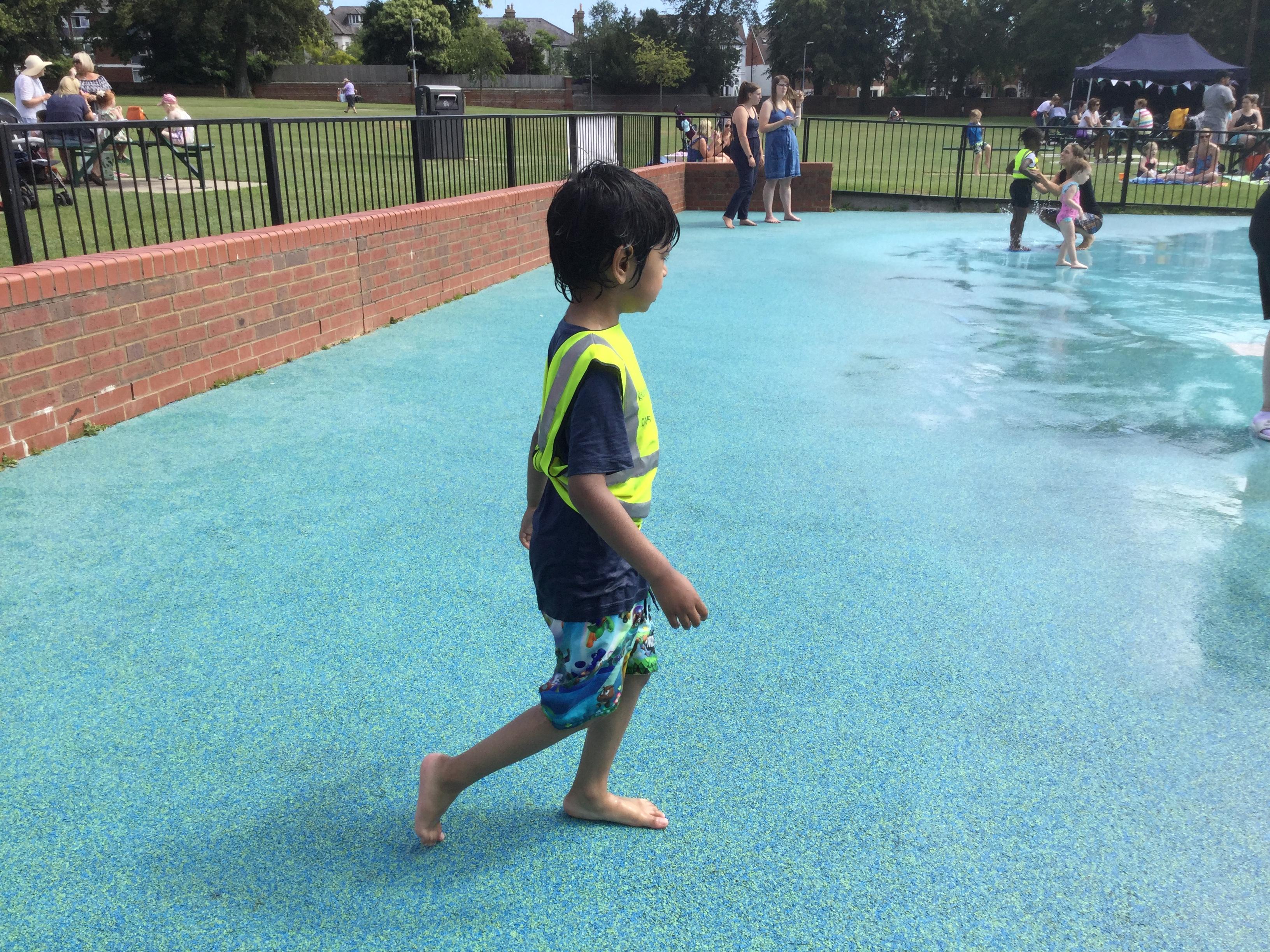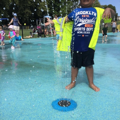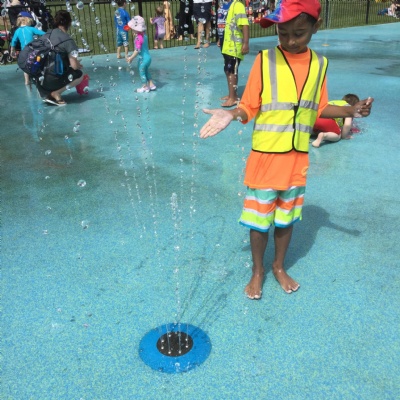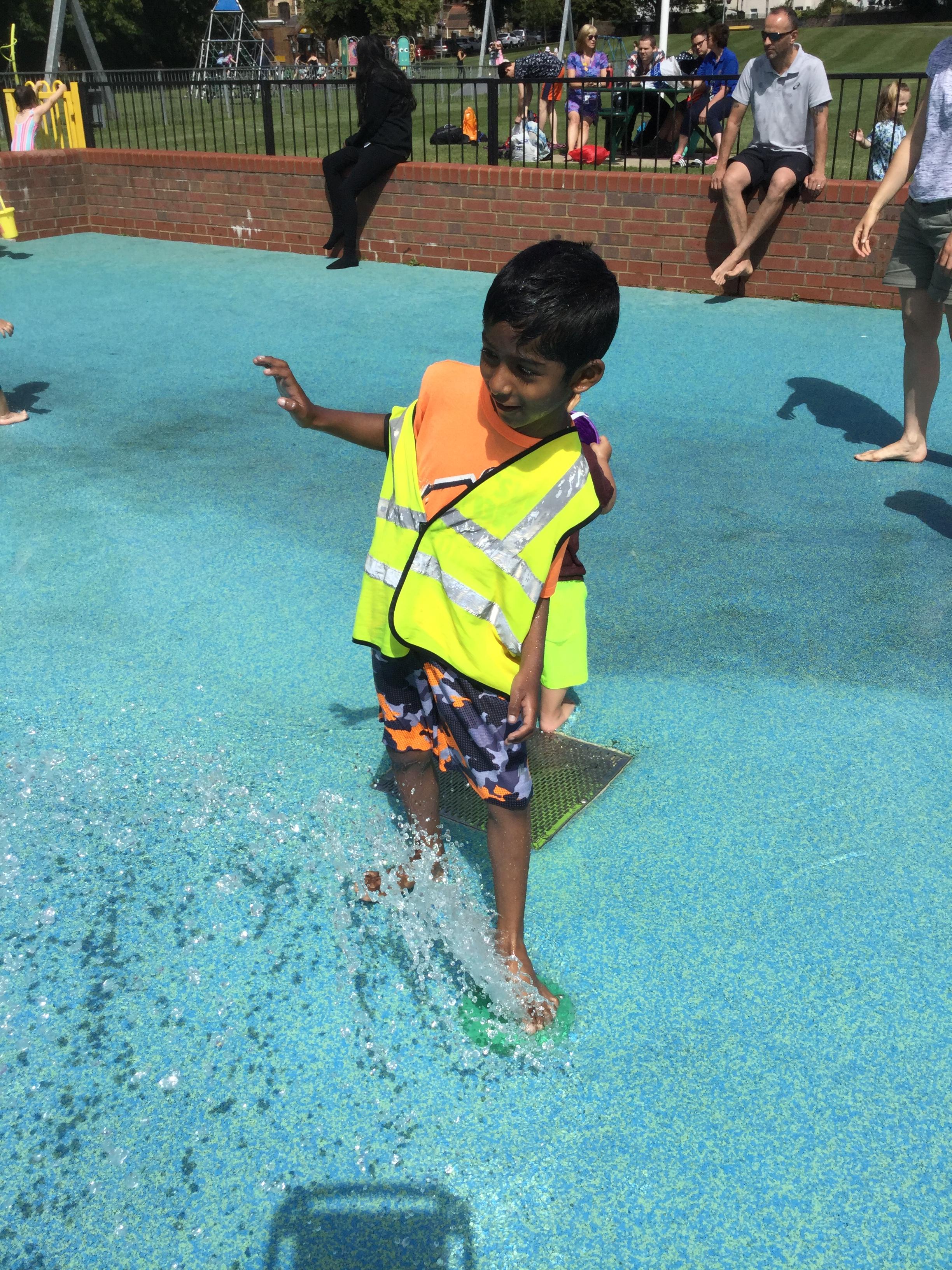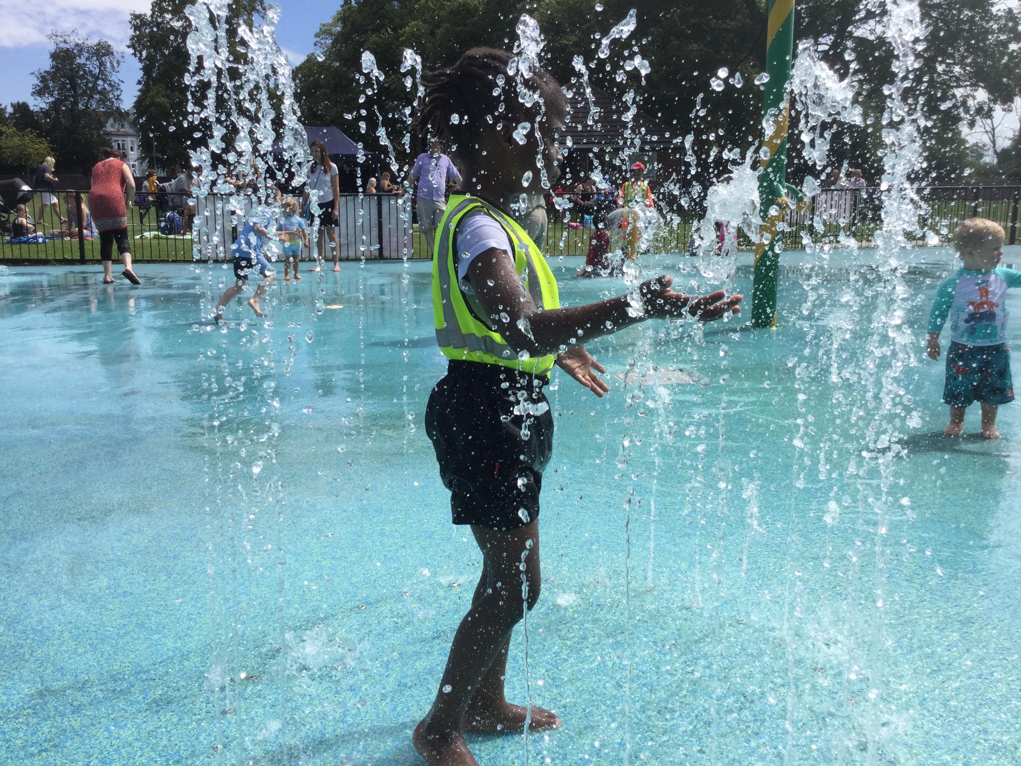 We did splatter painting outside, flicking different coloured paint at the large piece of paper.