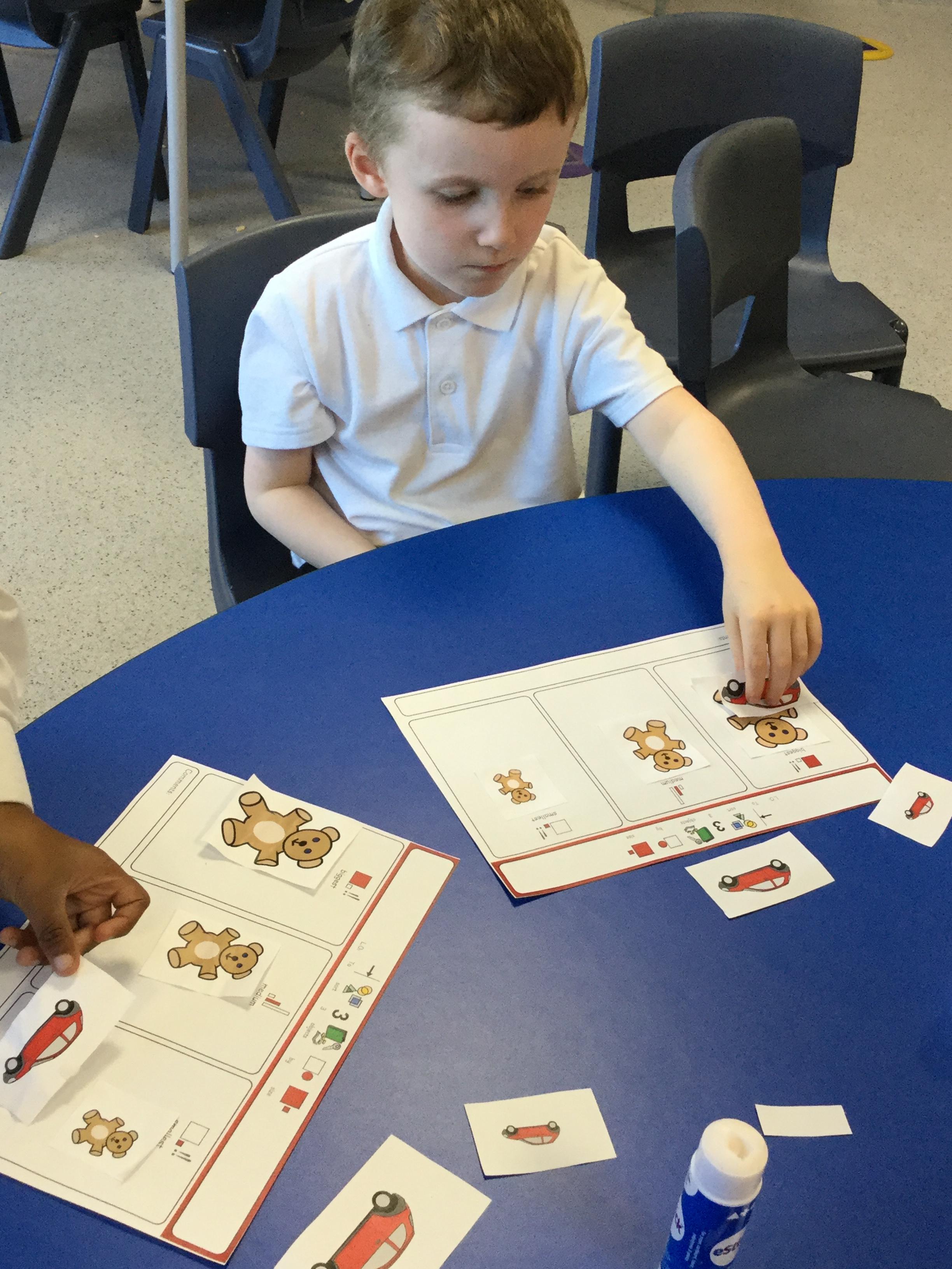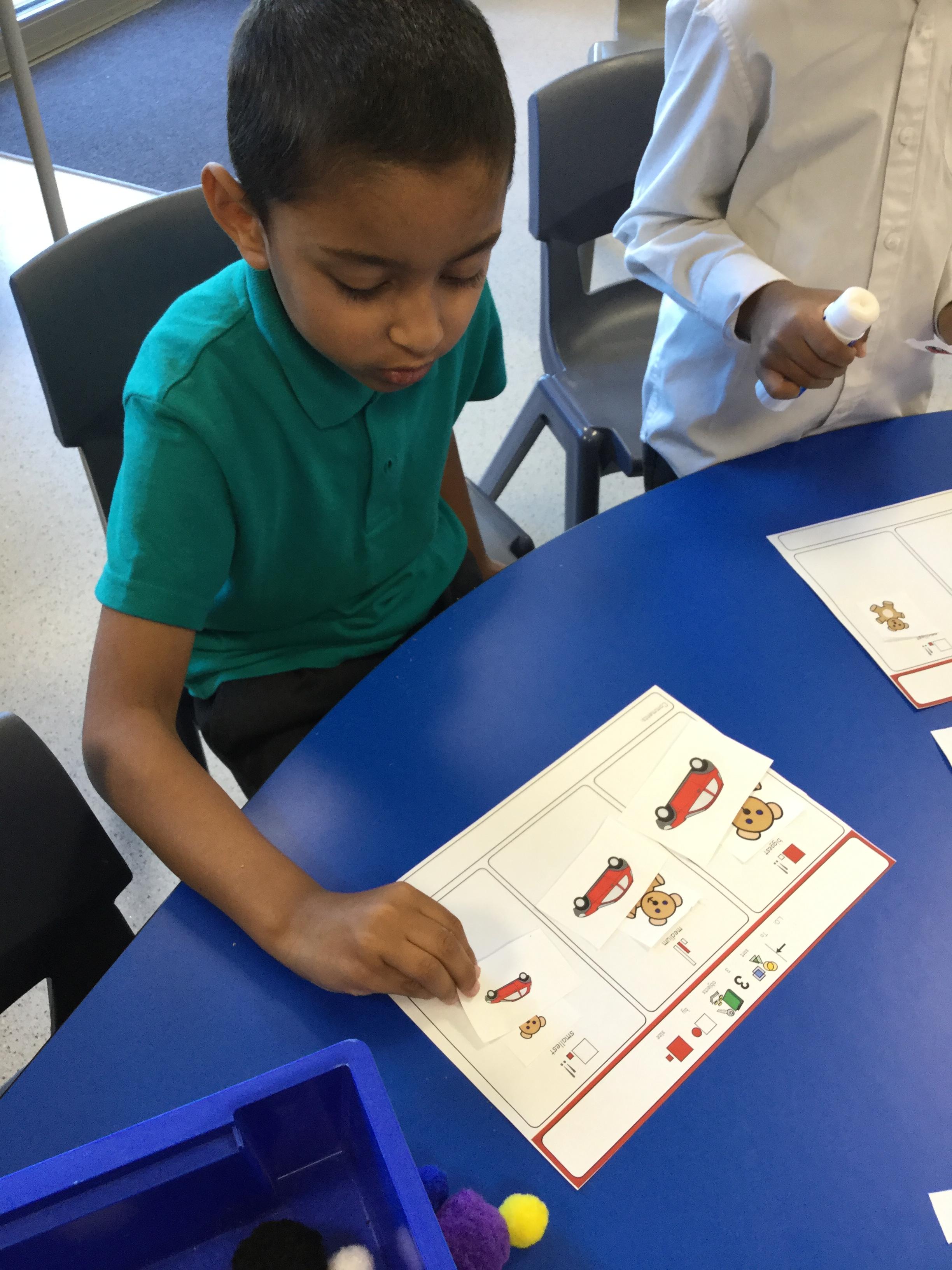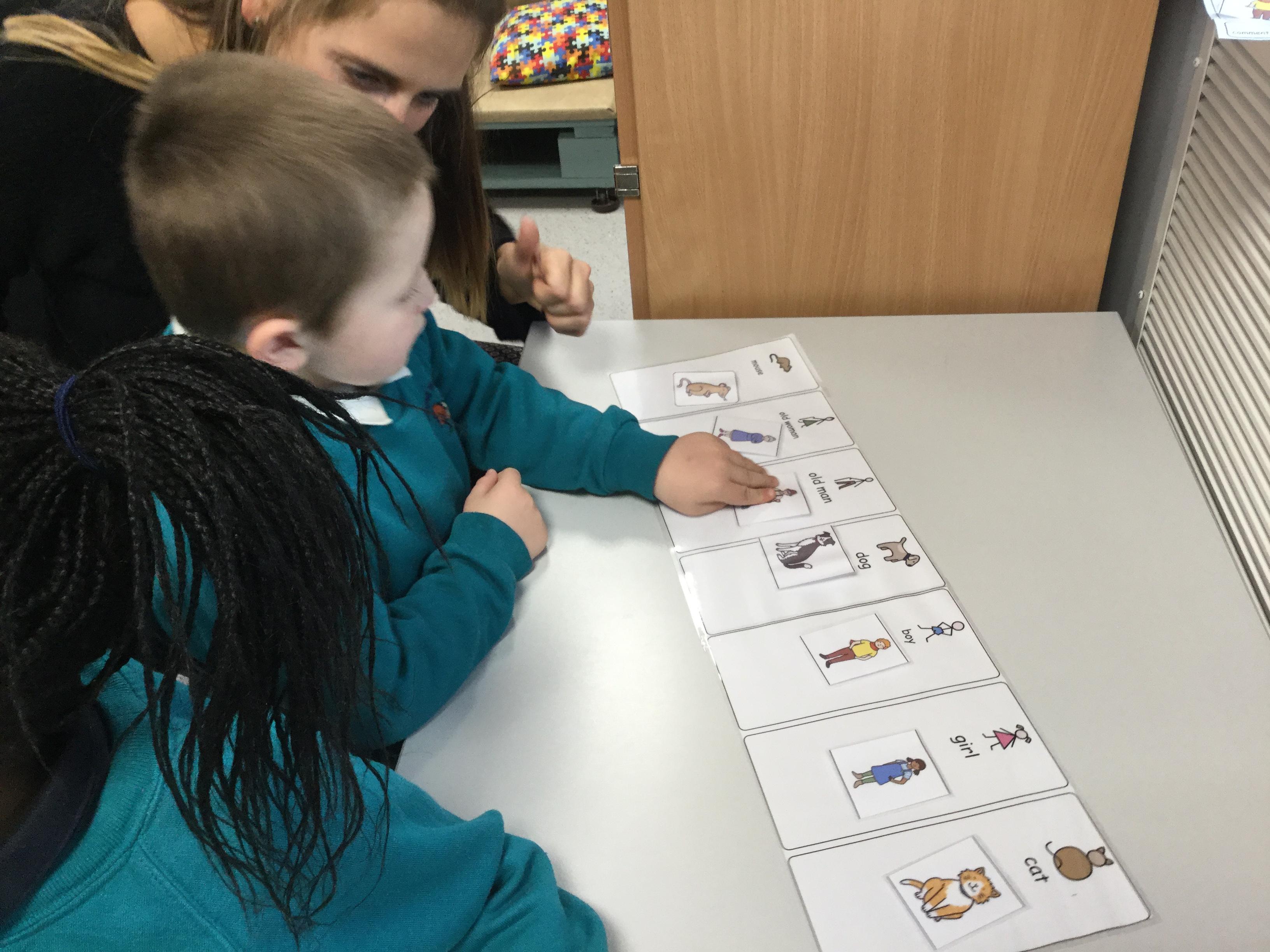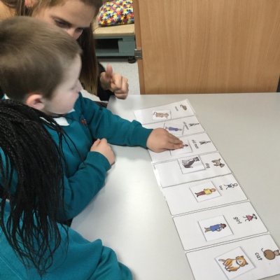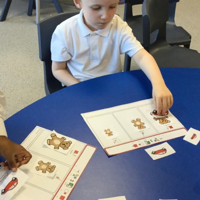 In English, some pupils were matching animal pictures with animal symbols, whilst others were finding animal soft toys to match with symbols.