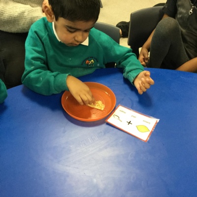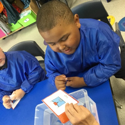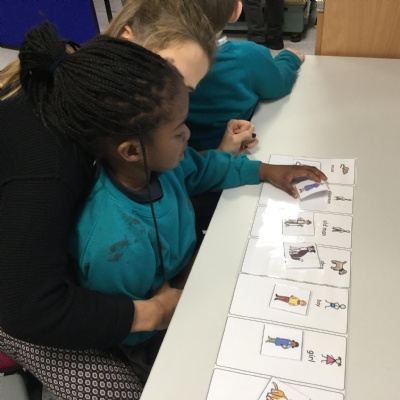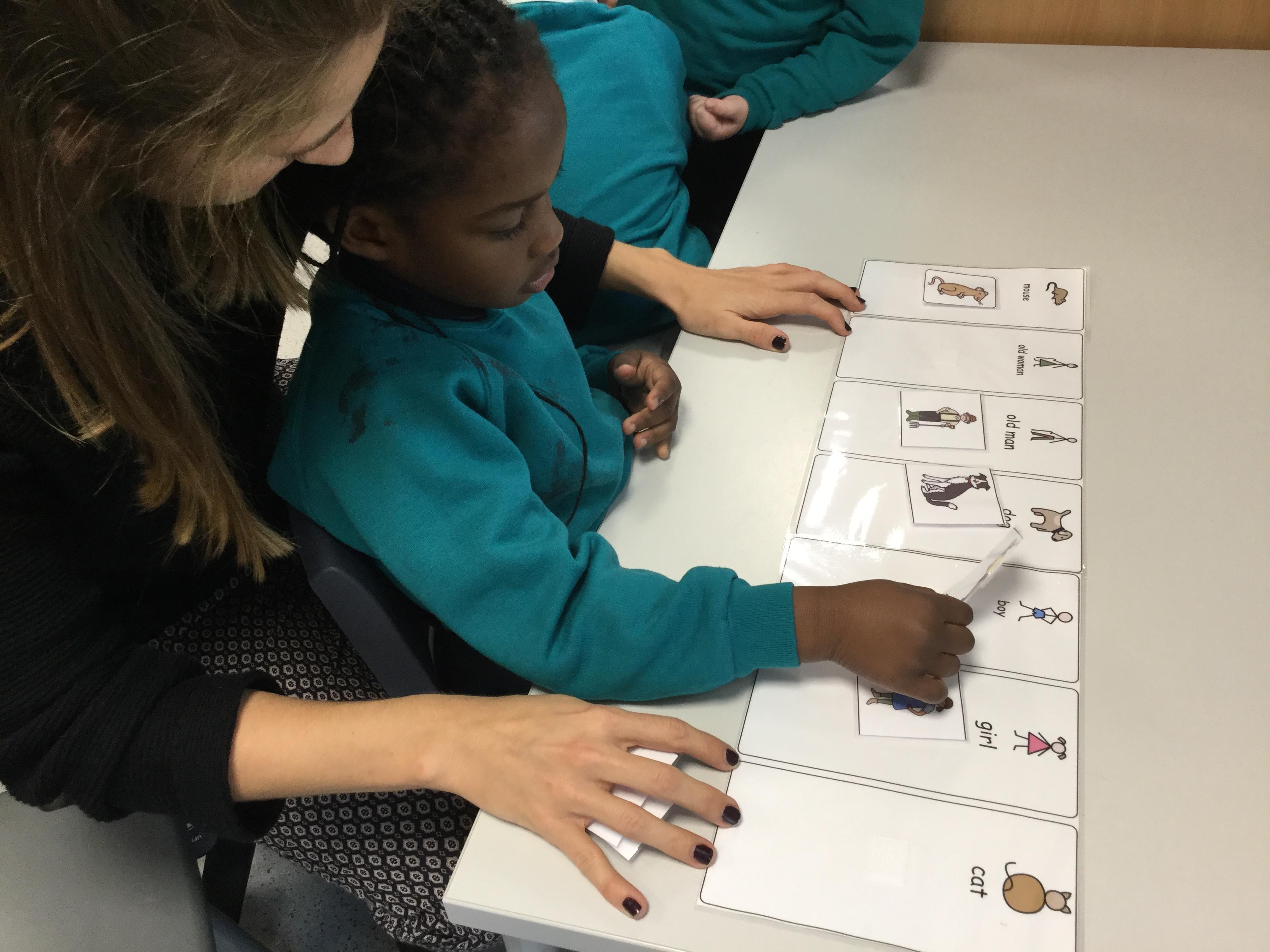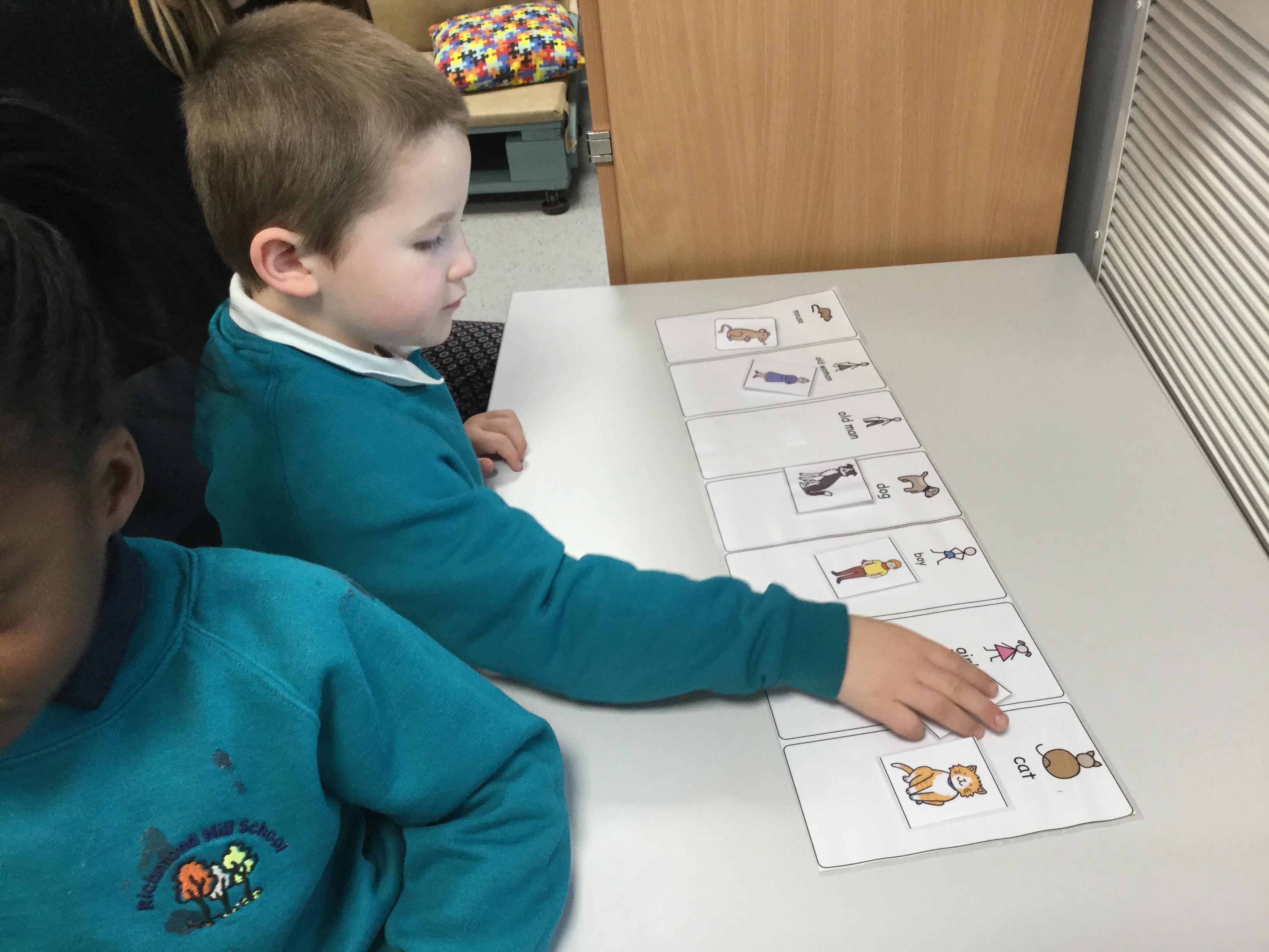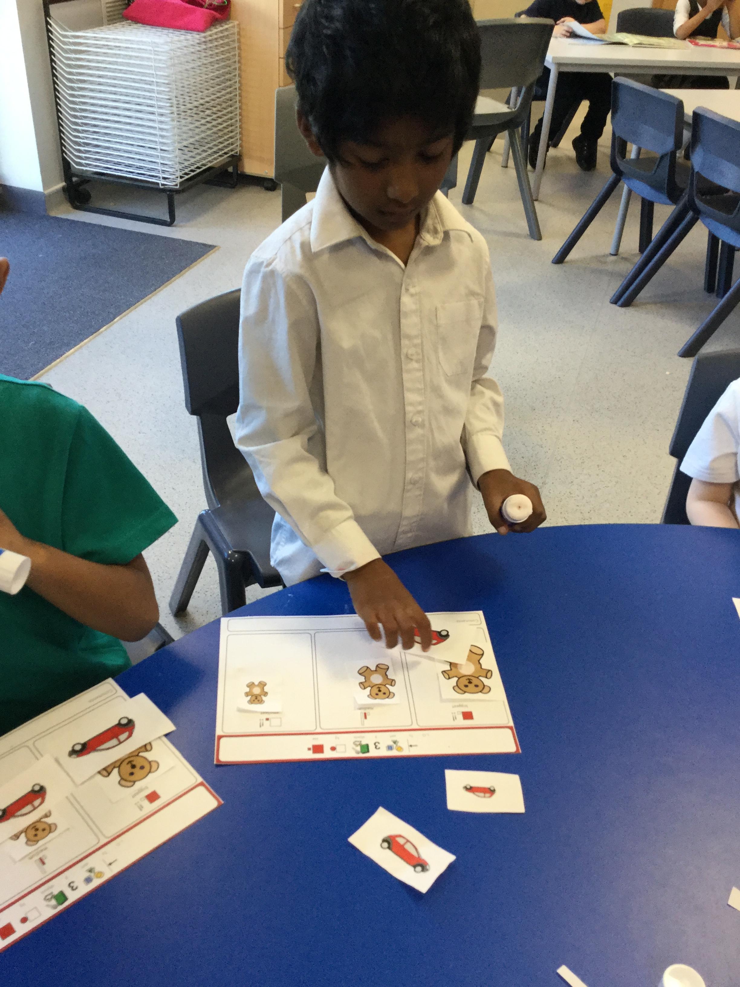 In English, some pupils were matching animal pictures with animal symbols, whilst others were finding animal soft toys to match with symbols.